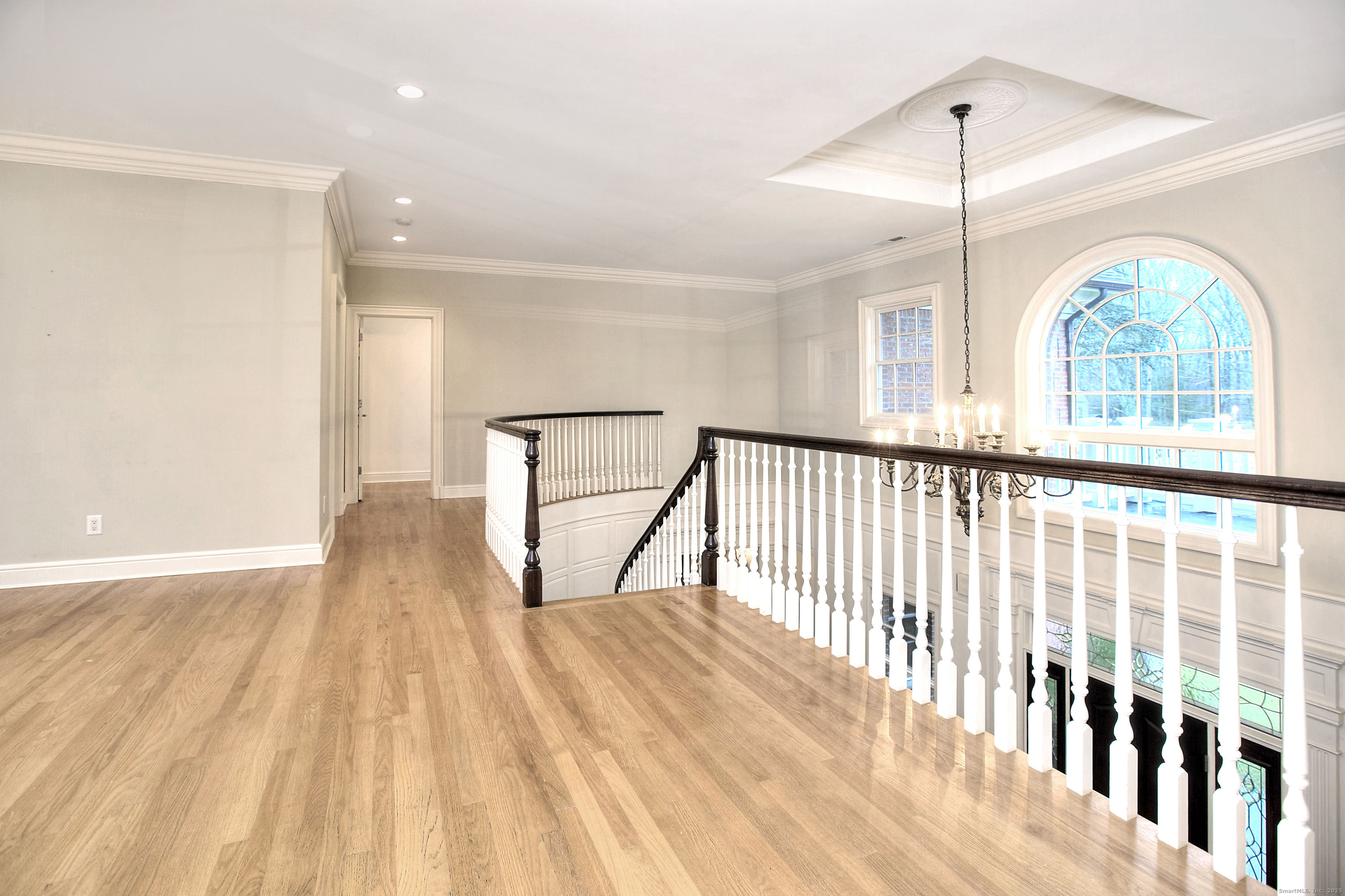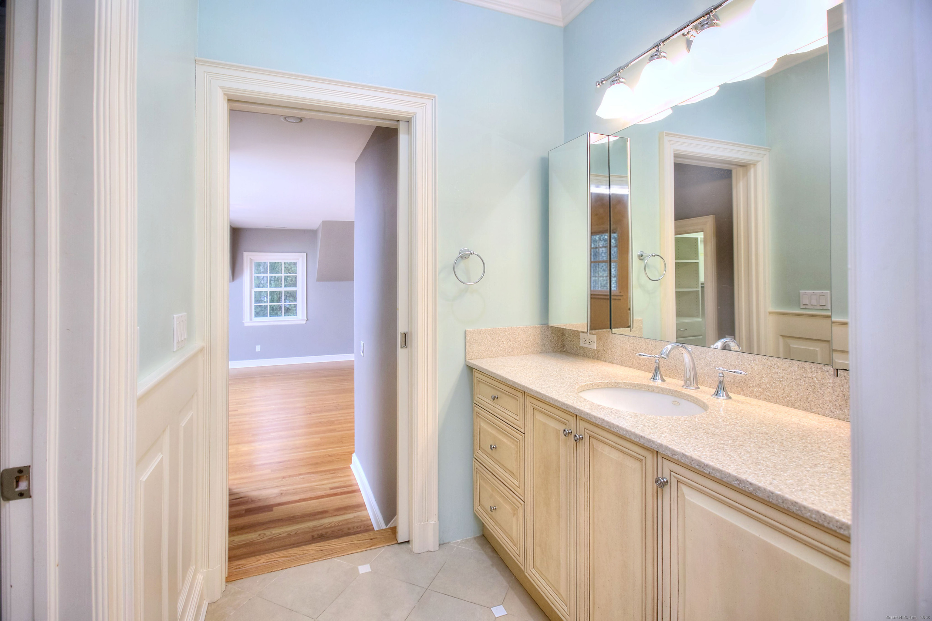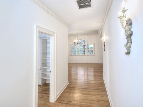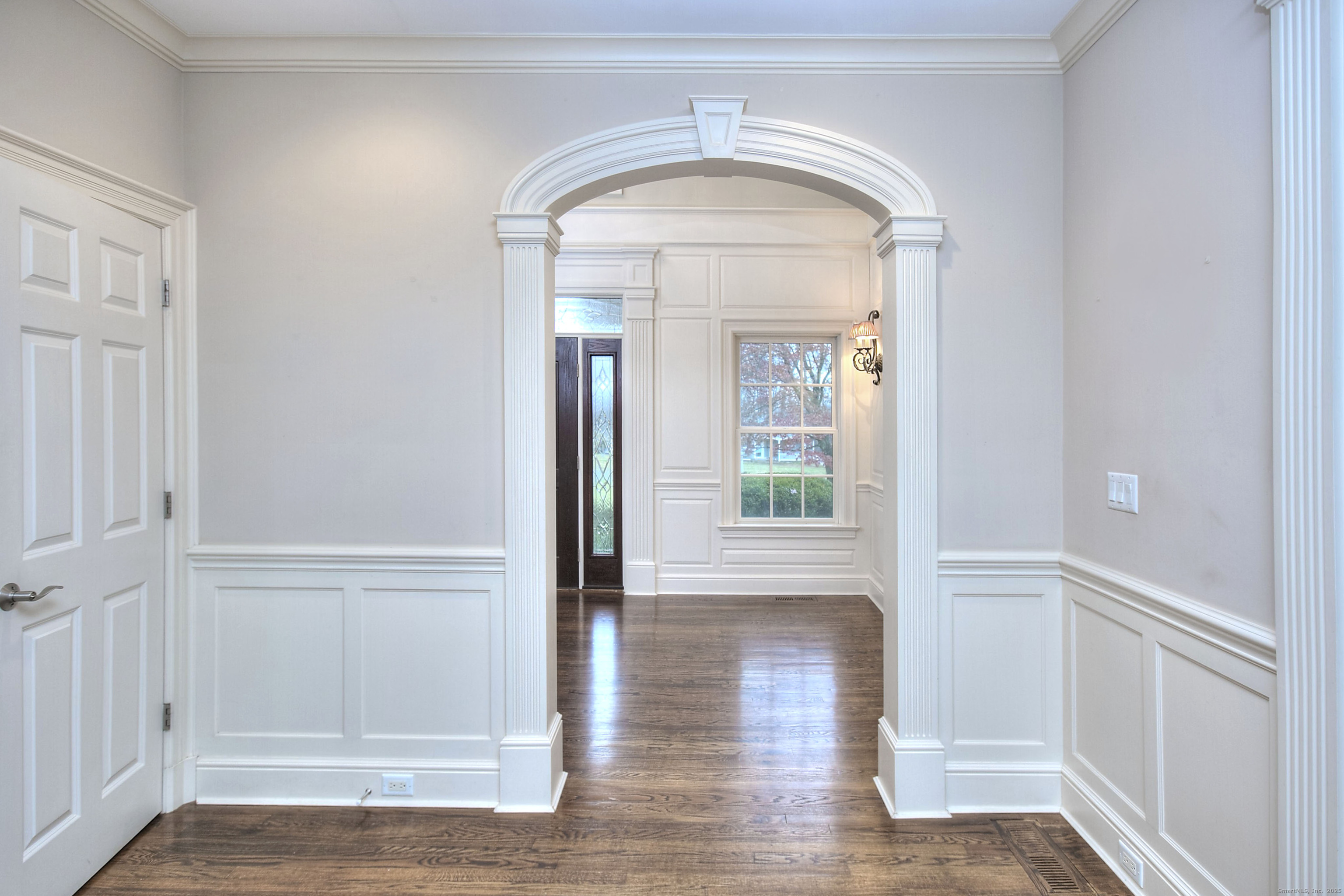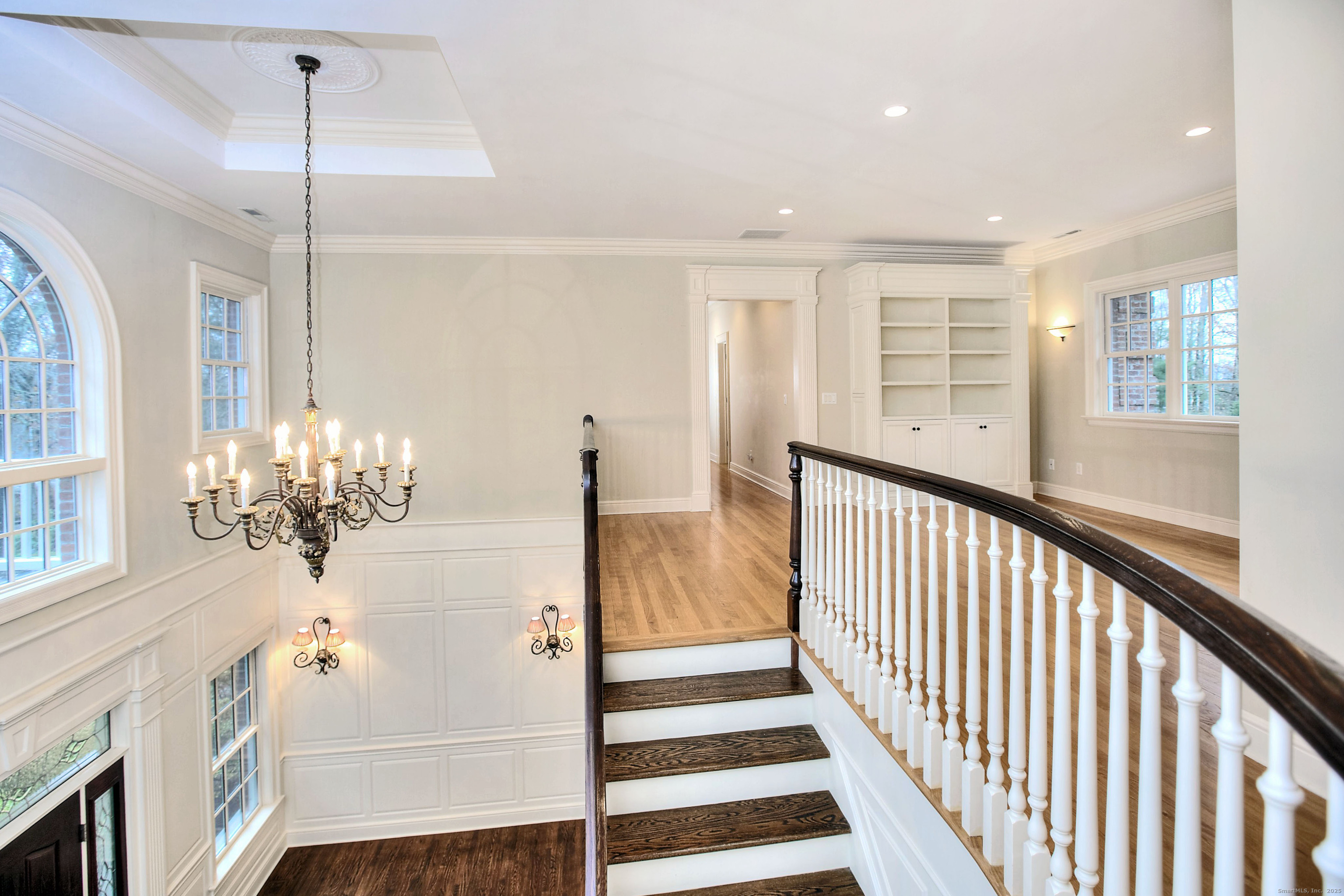 Timeless Georgian architecture meets exceptional craftsmanship in this gracious brick residence, beautifully positioned on a quiet and convenient cul-de-sac. Comprehensively reimagined in 2006, the home showcases enduring materials and classic architectural detailing, including brick quoins, stone window sills, soldier-course brick with keystones, and dentil molding. Rare, flat, park-like acreage with mature landscaping and broad frontage enhance the home's impressive approach. A dramatic two-story foyer with a sweeping staircase and intricate millwork introduces the home's refined interior architecture. Formal and everyday rooms flow effortlessly, enhanced by high ceilings, custom paneling, and a refined overall scale that reinforces the home's sophistication. A private main-level office with a marble fireplace offers an ideal workspace. The chef's kitchen features Sub-Zero and Viking appliances, granite countertops, an expansive center island, and a generous eat-in area that opens into the home's main living spaces. French doors and sliders extend the interior to the terrace and broad, level backyard, creating seamless indoor/outdoor living. The upper level offers excellent scale, beginning with a bright landing that includes an inviting sitting area. The gracious primary suite features a fireplace, walk-in closet, and a generously sized bath with excellent proportions.