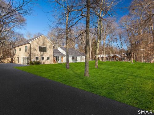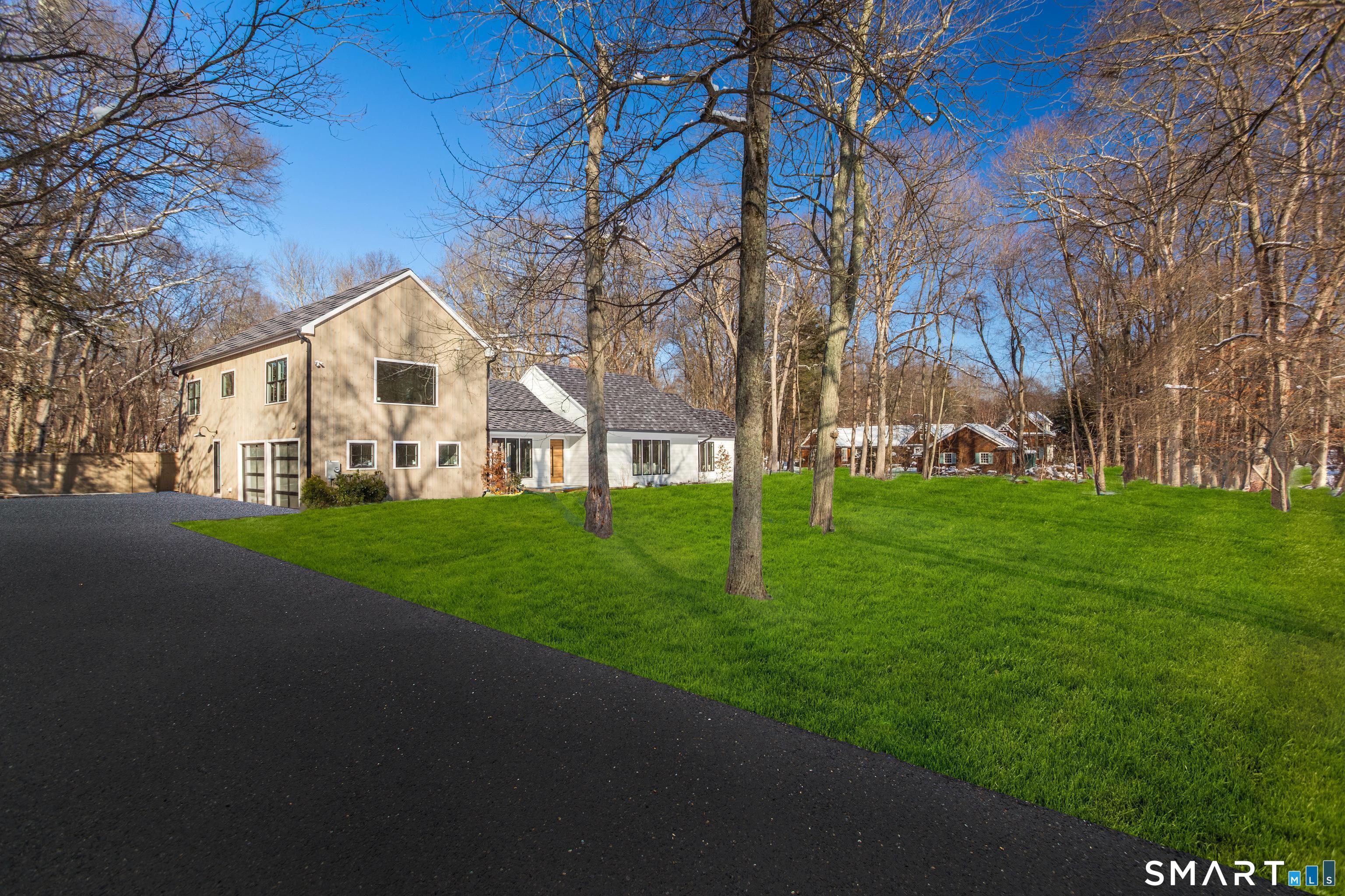 Fully renovated and expanded, this stunning 5-bedroom, 4.1-bath residence offers approx. 4,000 SF of light-filled living on a private 1-acre setting along a quiet road near the golf course. The open floor plan showcases large windows, abundant natural light, and effortless flow throughout. A luxurious kitchen with high-end appliances opens directly to an expansive stone patio, ideal for seamless indoor-outdoor entertaining. The main level features a primary bedroom plus three additional bedrooms and two baths. Upstairs, a private primary suite retreat offers an office/sitting room, two walk-in closets, and a spa-like bath.