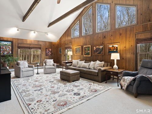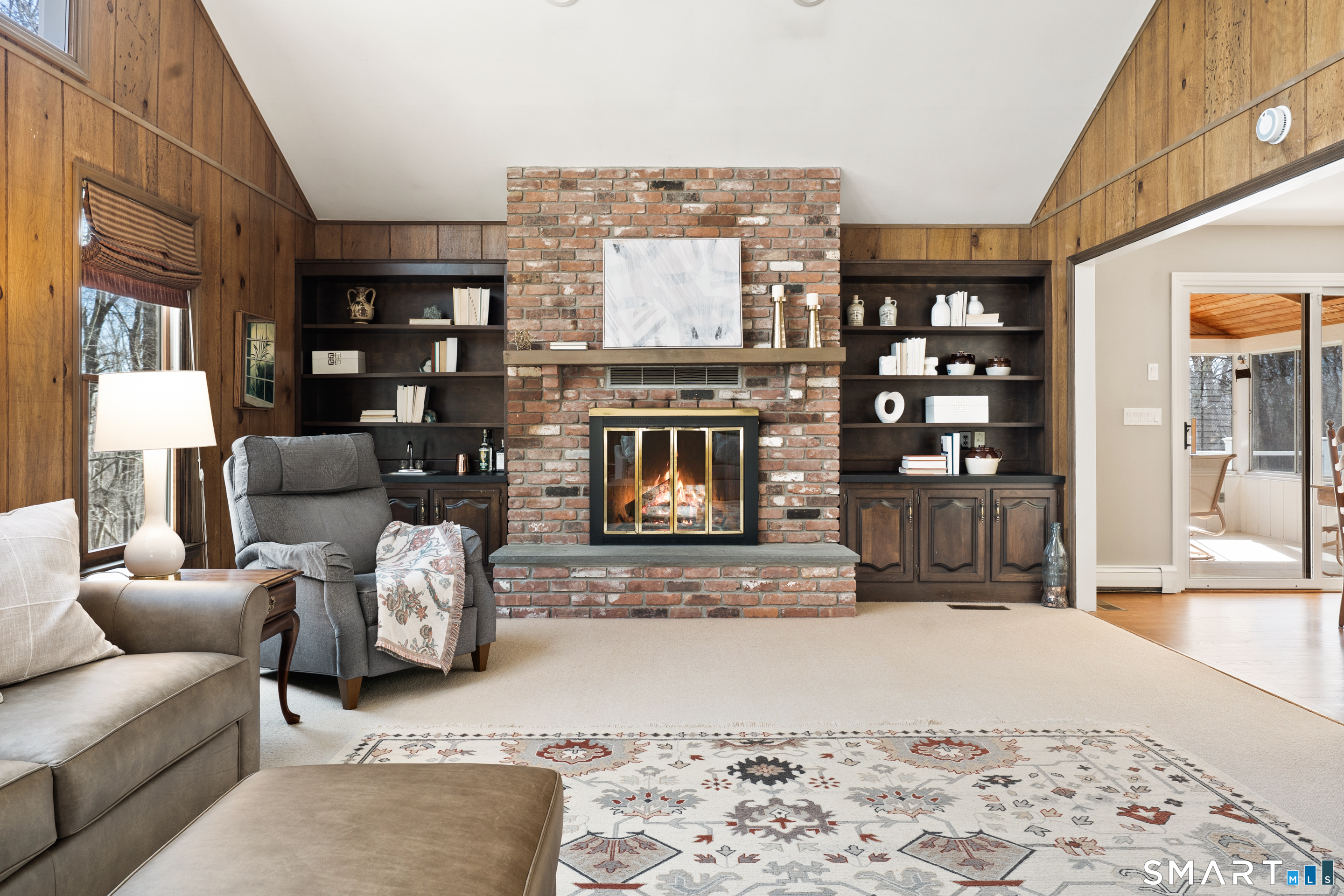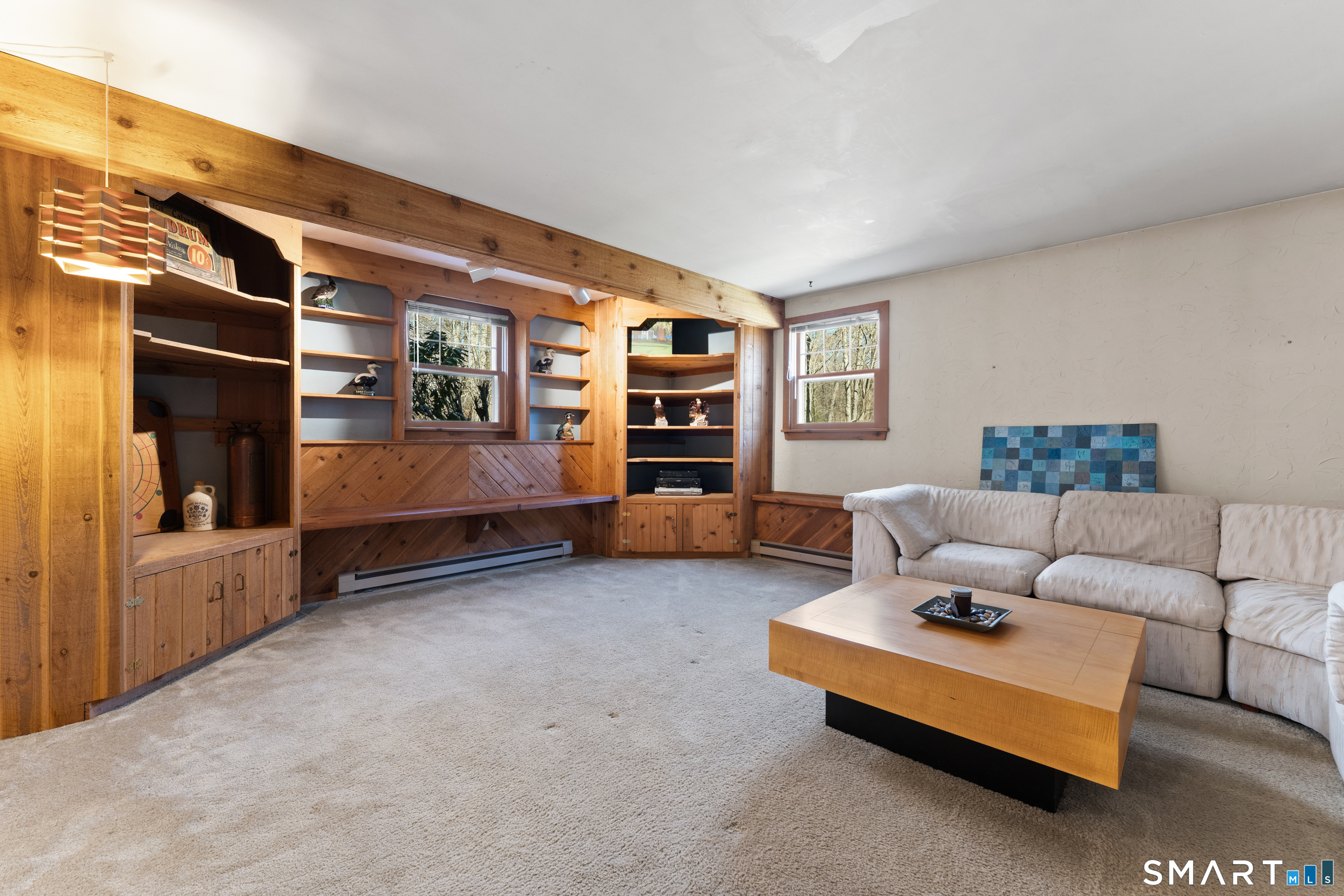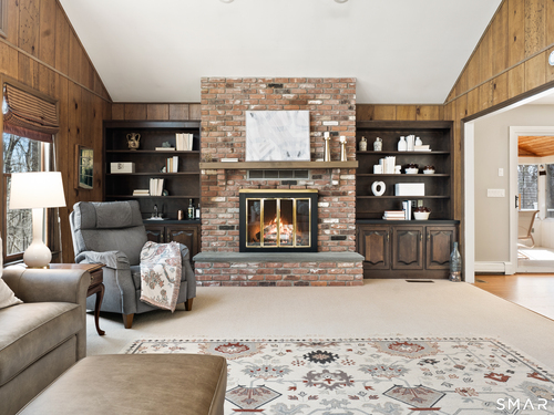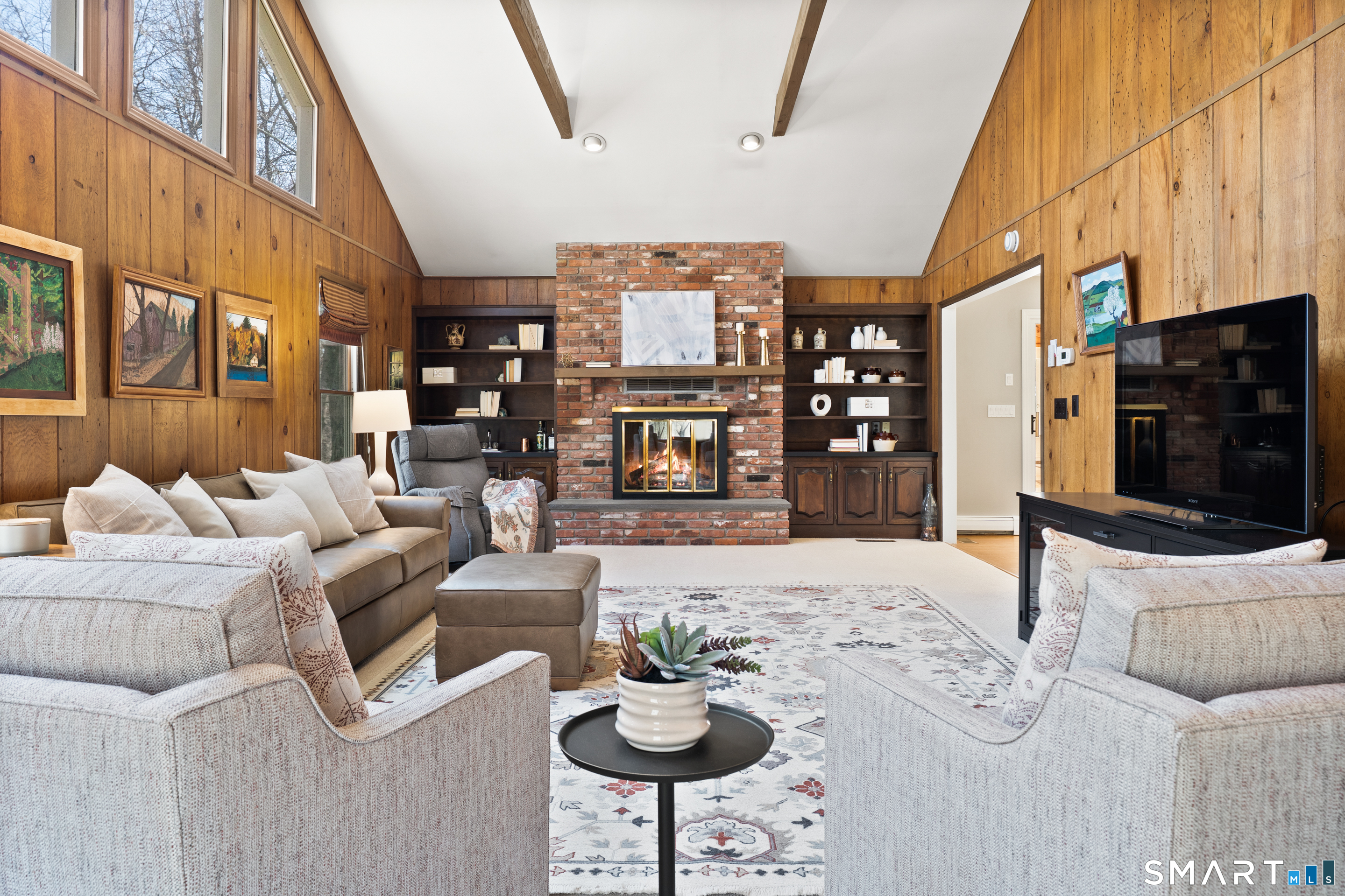 Cathedral Ceiling, Beams, Built-Ins, Fireplace, Wall/Wall Carpet