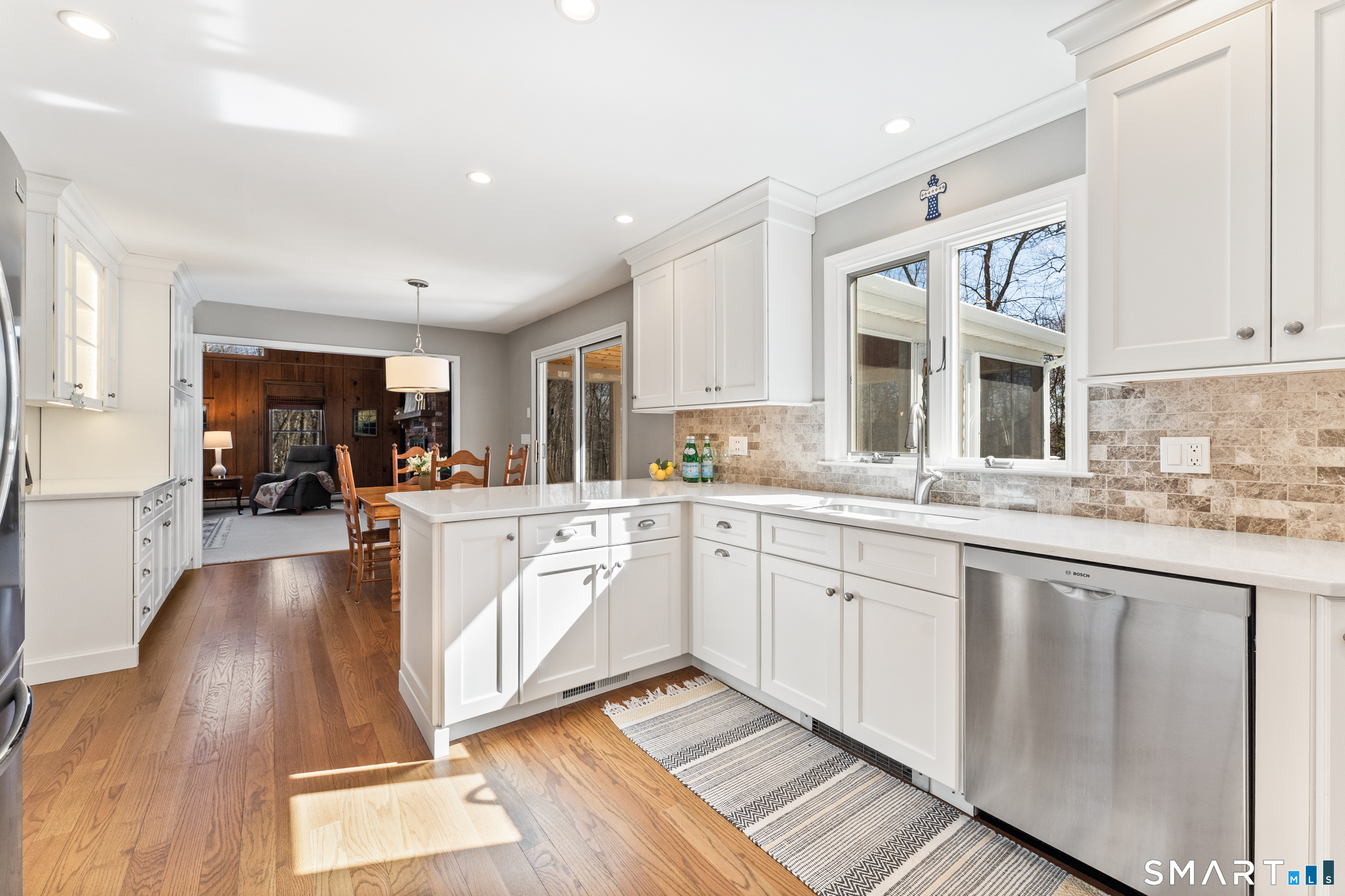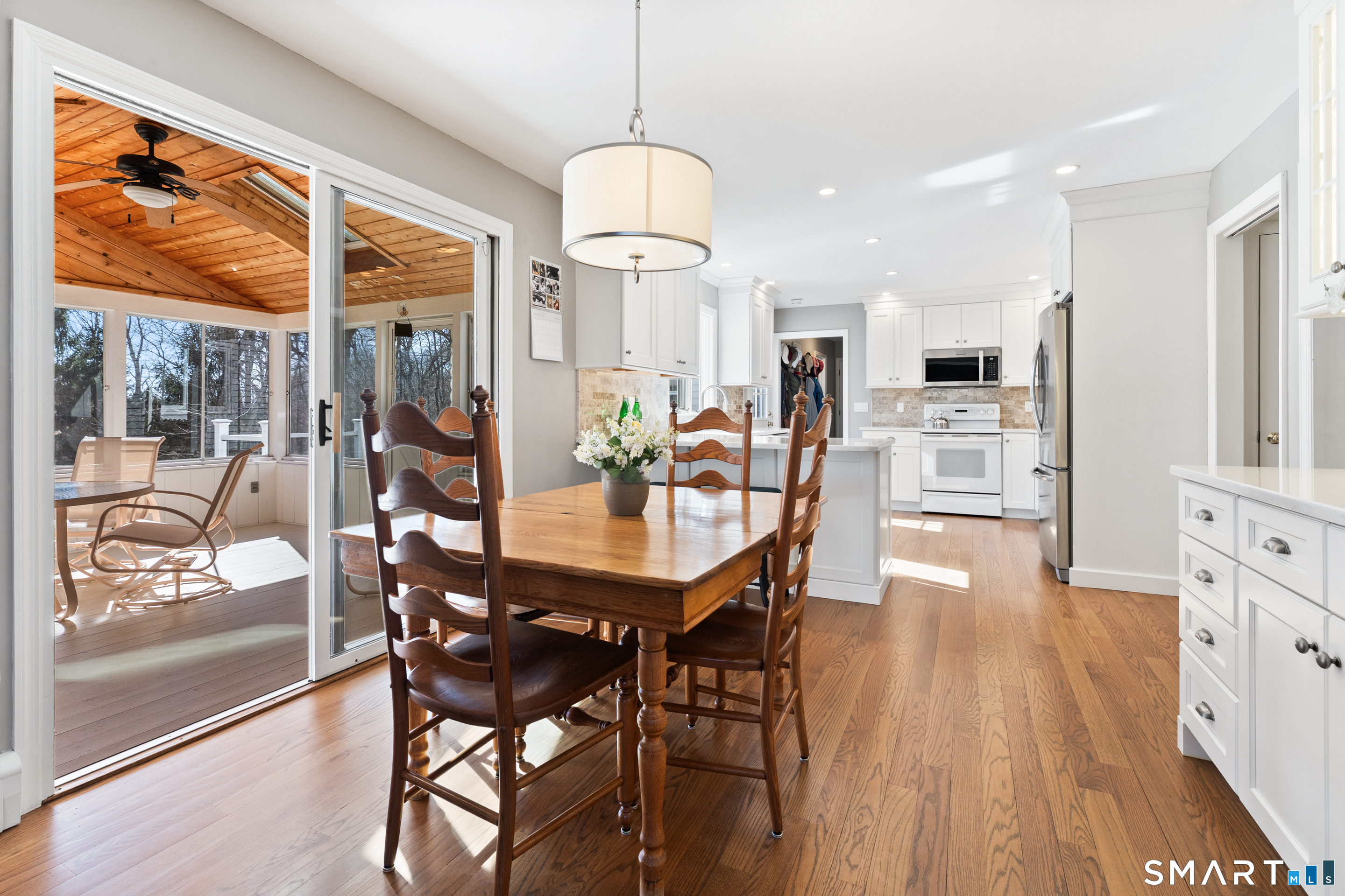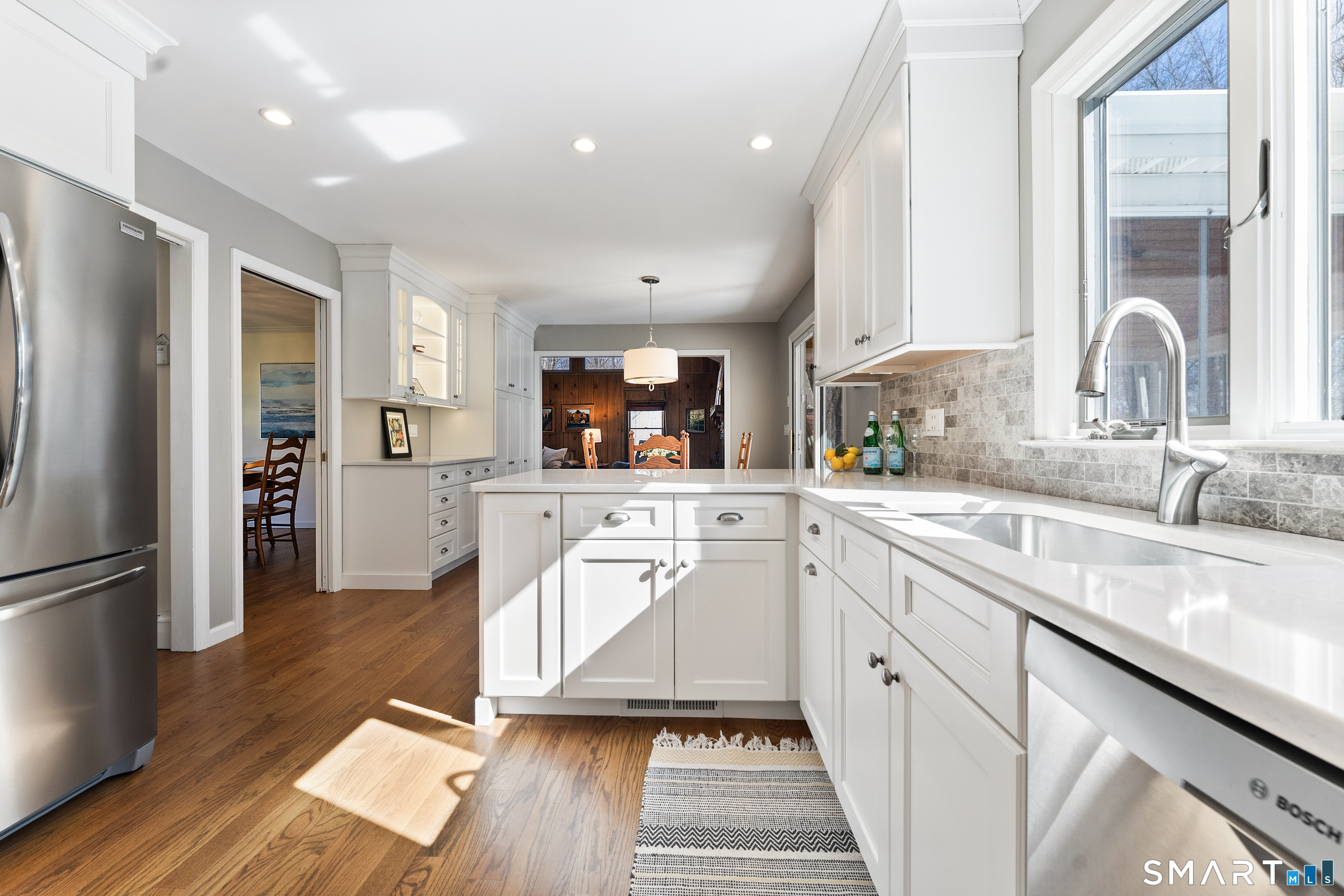 Remodeled, Built-In Hutch, Quartz Counters, Dining Area, Pantry, Hardwood Floor