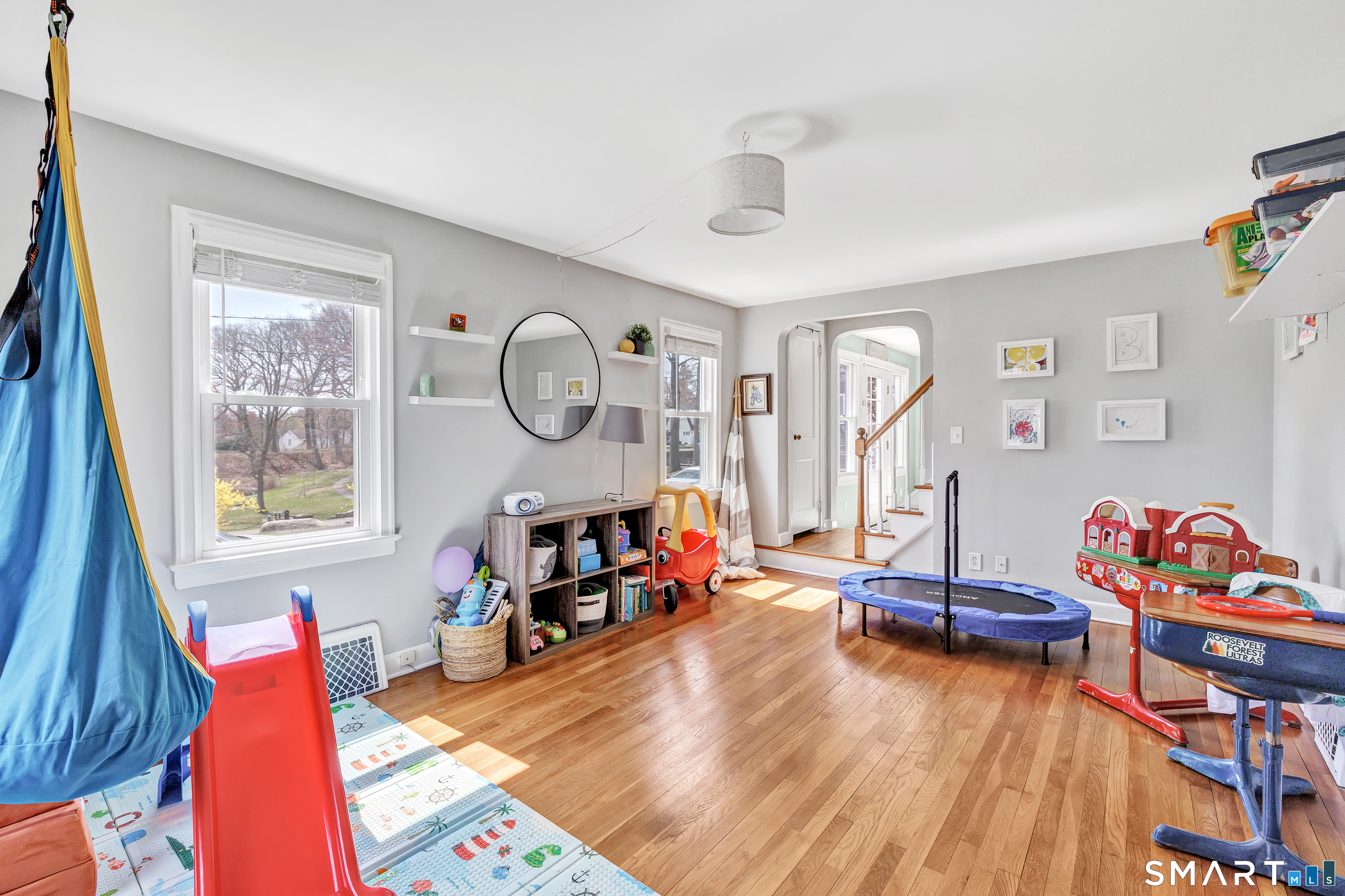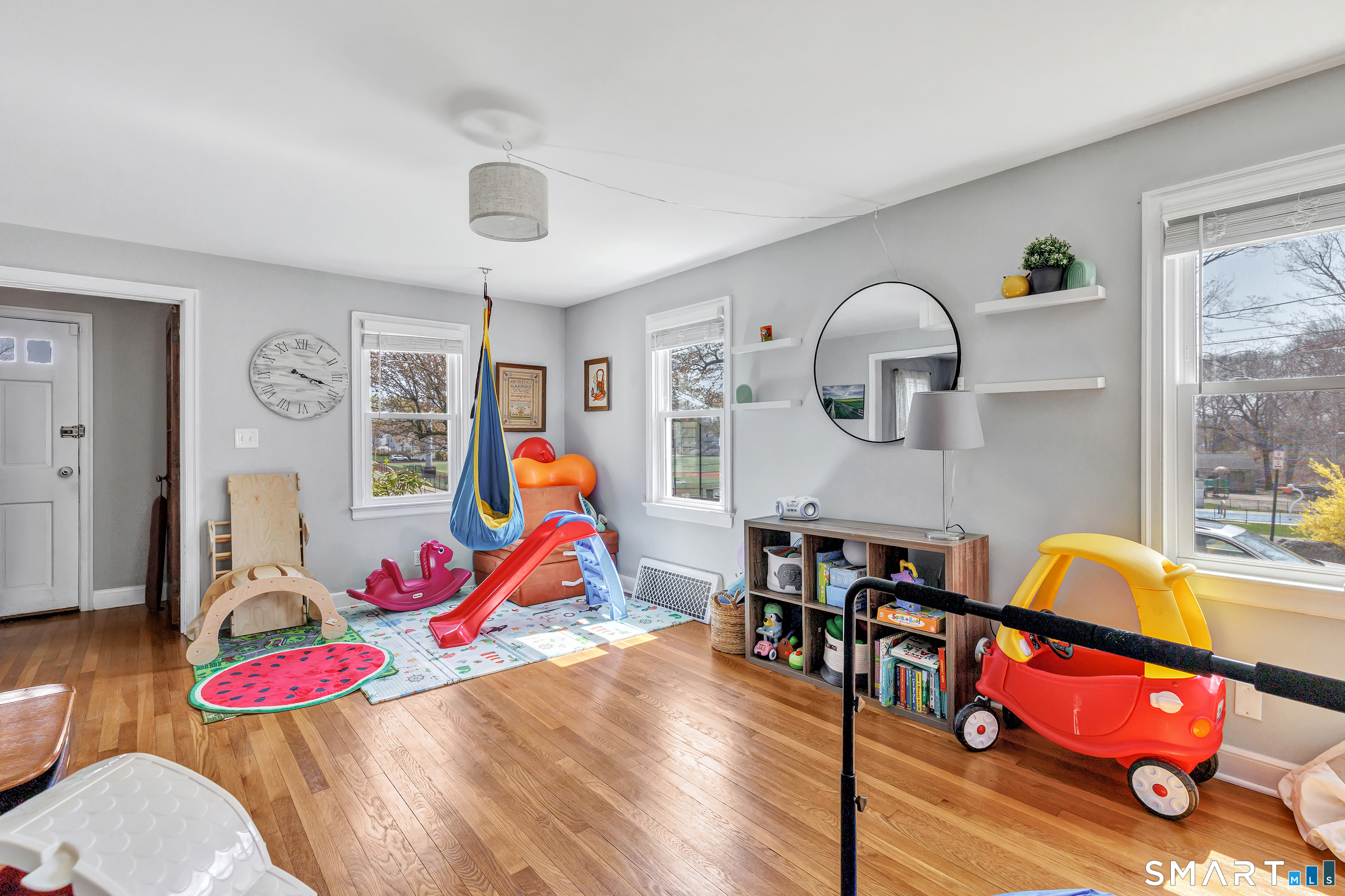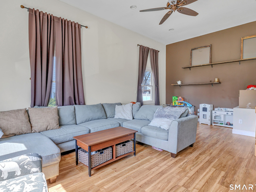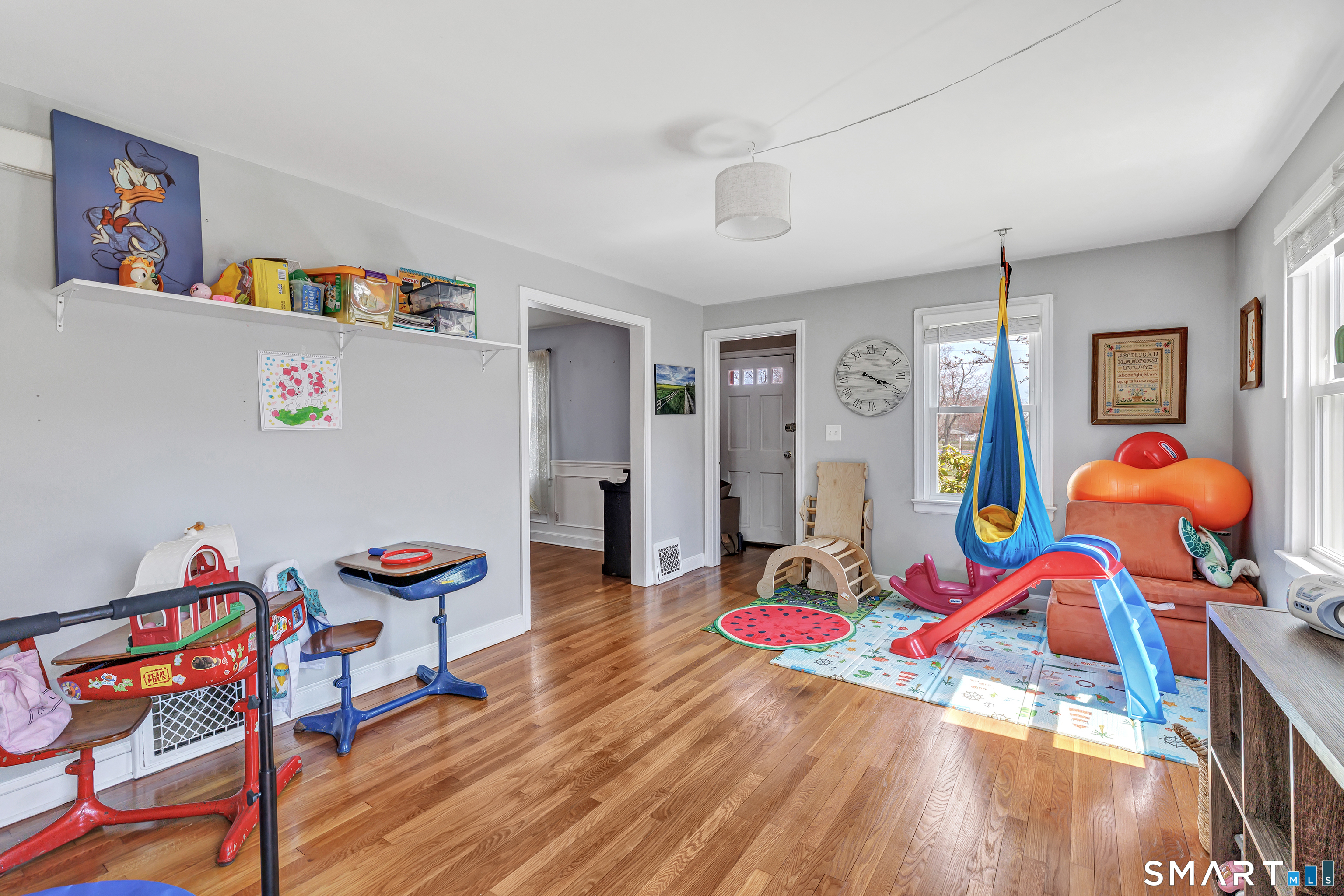 Welcome to this stunning 3-bedroom Colonial in the heart of Paradise Green, perfectly situated across from the park and Pender's Field. This beautifully maintained home blends classic charm with modern updates. The spacious eat-in kitchen serves as the centerpiece of the home, featuring a large island with seating and custom cabinetry- ideal for both everyday living and entertaining. Sunlight fills the bright living room and formal dining room. A standout feature is the expansive family room above the garage, boasting soaring 9+ foot ceilings-perfect for gatherings, a media room, or a play space. A convenient half bath completes the main level. Upstairs, the primary suite offers a peaceful retreat with an updated full bathroom and a walk-in closet. Two additional generously sized bedrooms and a shared full bath provide ample space for family or guests. The finished lower level adds even more versatility, with a den, home office, laundry area, and plenty of storage. Additional highlights include an attached garage, newer furnace (2026), 2 zone central AC and energy-saving solar panels. Enjoy the unbeatable location-just a short stroll to parks, a pond, sports fields, and local dining.