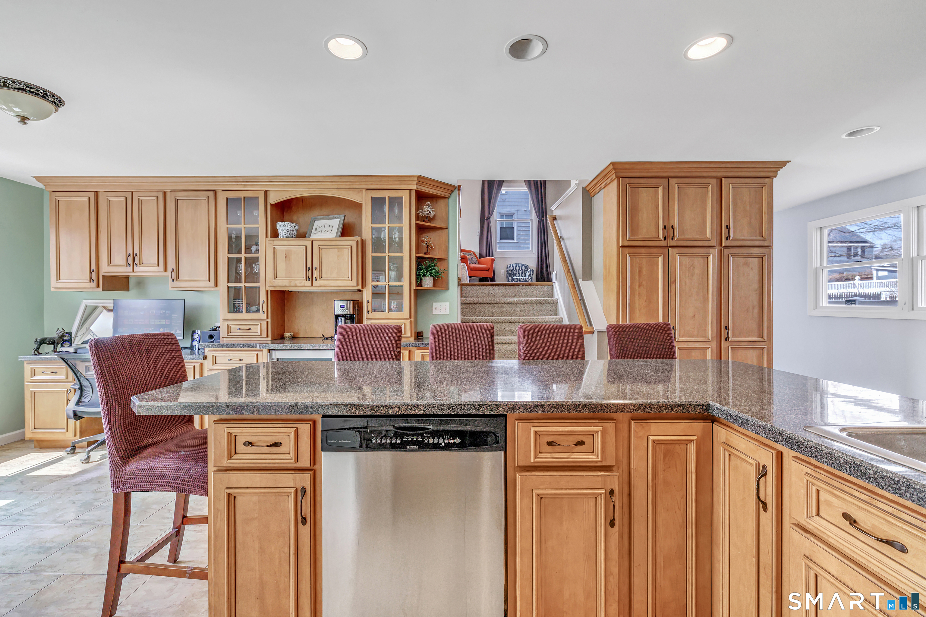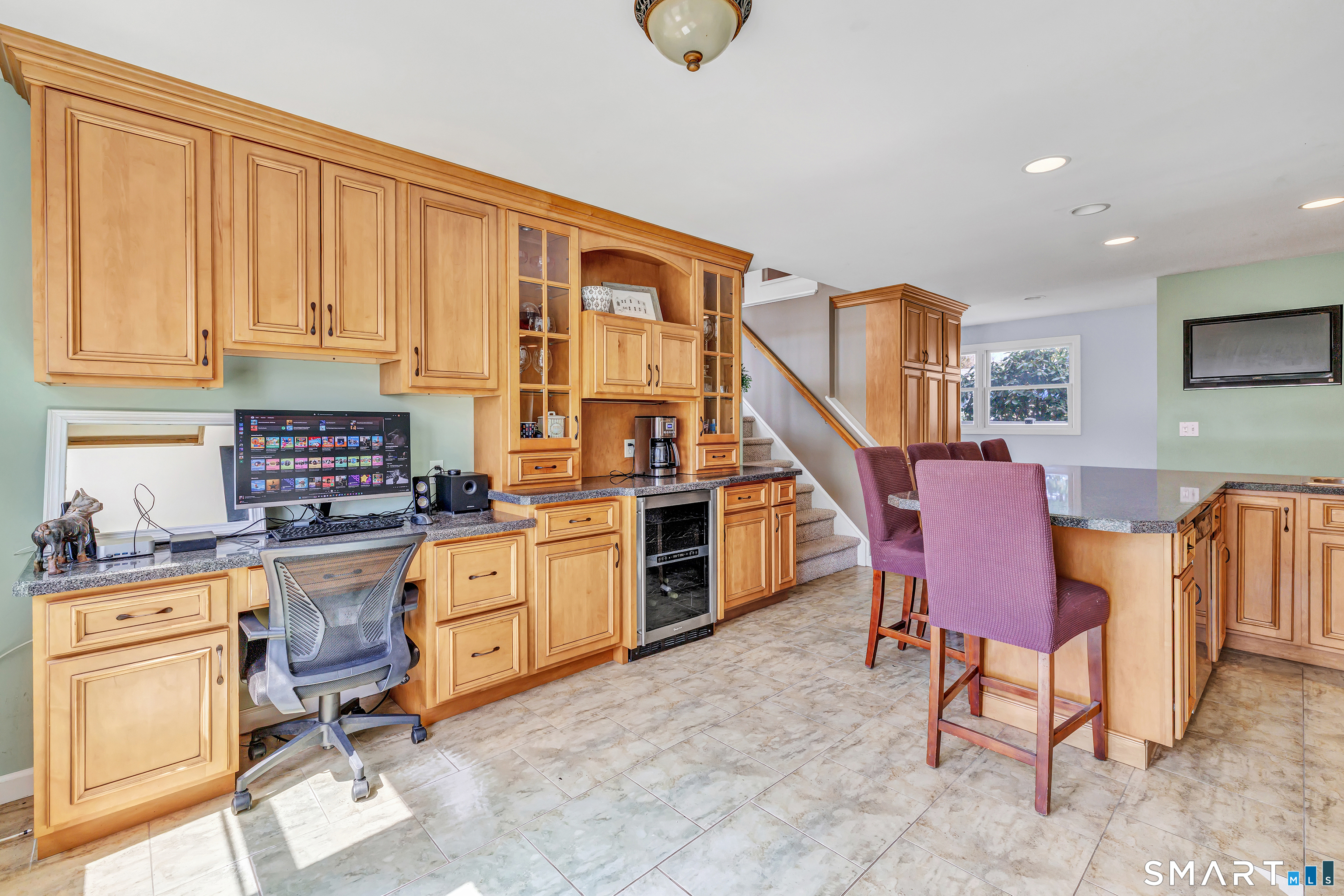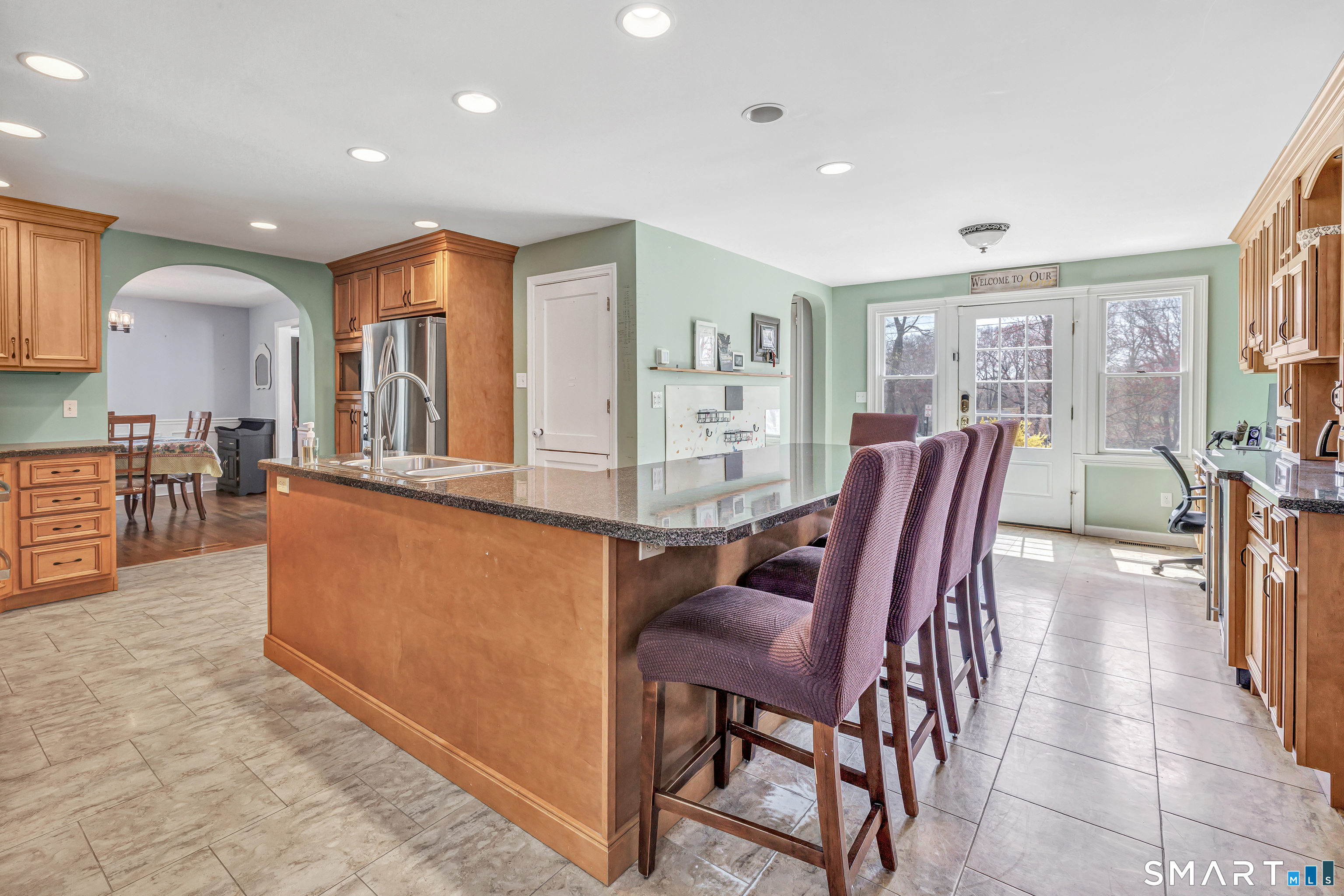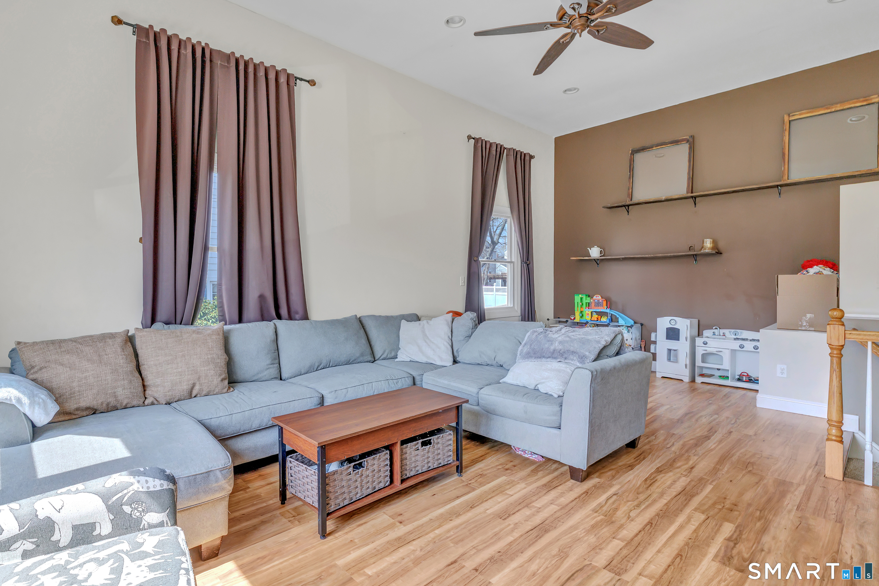 Welcome to this stunning 3-bedroom Colonial in the heart of Paradise Green, perfectly situated across from the park and Pender's Field. This beautifully maintained home blends classic charm with modern updates. The spacious eat-in kitchen serves as the centerpiece of the home, featuring a large island with seating and custom cabinetry- ideal for both everyday living and entertaining. Sunlight fills the bright living room and formal dining room. A standout feature is the expansive family room above the garage, boasting soaring 9+ foot ceilings-perfect for gatherings, a media room, or a play space. A convenient half bath completes the main level. Upstairs, the primary suite offers a peaceful retreat with an updated full bathroom and a walk-in closet. Two additional generously sized bedrooms and a shared full bath provide ample space for family or guests. The finished lower level adds even more versatility, with a den, home office, laundry area, and plenty of storage. Additional highlights include an attached garage, newer furnace (2026), 2 zone central AC and energy-saving solar panels. Enjoy the unbeatable location-just a short stroll to parks, a pond, sports fields, and local dining.
