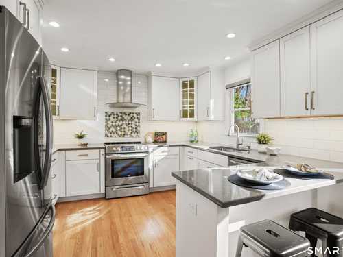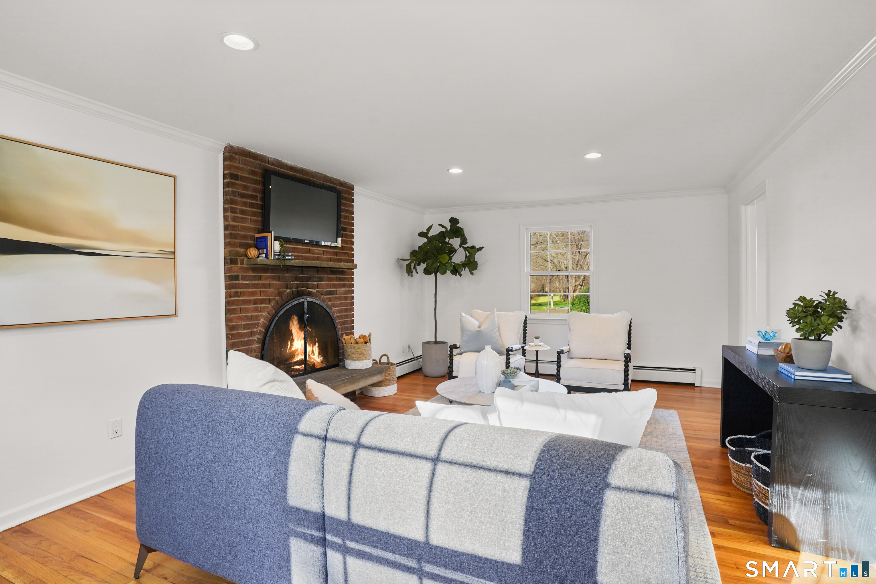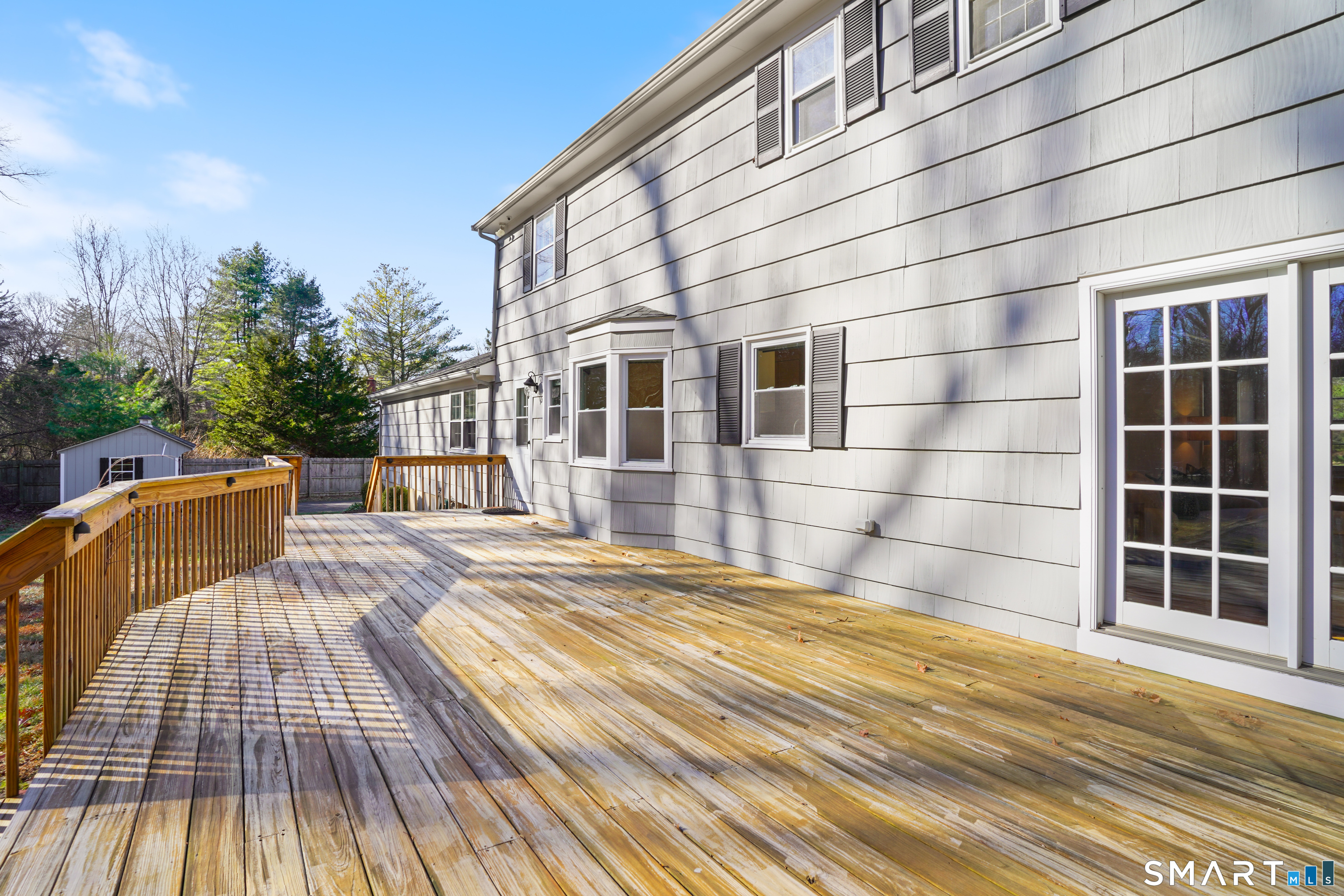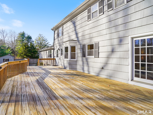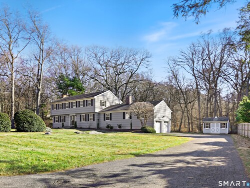 Rare West Norwalk gem - quintessential New England colonial located on desirable cul-de-sac. This warm and inviting 4-bedroom home blends timeless character with thoughtful, stylish updates, set on over a level acre of land. As you enter the home you are drawn to the elegant living room which features a fireplace and French doors that lead to the large deck. Throw a log on the fire and gather around the piano to sing your favorite songs - this is a great space for entertaining. Host the whole family in the large, formal dining room. In the cozy family room, you will want to gather around the wood-burning fireplace for movie and game nights with family and friends. Morning sun drenches the recently renovated eat-in Kitchen features bright, white cabinets with under cabinet lighting, motorized blinds and stainless steel appliances. Upstairs, you'll find four comfortable bedrooms, all freshly painted, with brand-new wall-to-wall carpeting for a soft, modern feel. The Primary bedroom includes ensuite bathroom and walk-in closet. Outdoor living is just as appealing with a large deck overlooking the flat, private backyard, a perfect venue for summer barbeques, relaxation and fun. The full unfinished basement plus garden shed provide extra storage or hobby space. This home has it all in the serenity of a private setting located on the New Canaan line which offers close proximity to shopping, schools, and commuting routes.