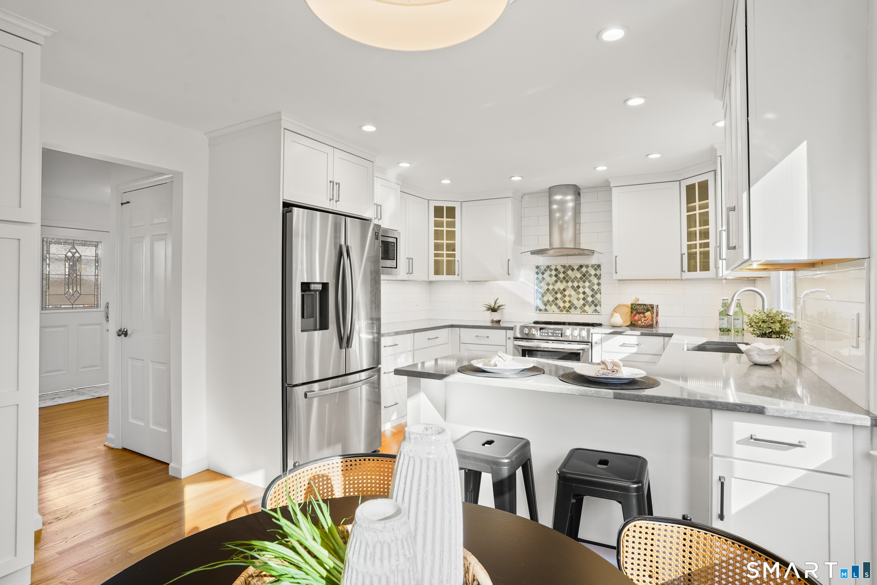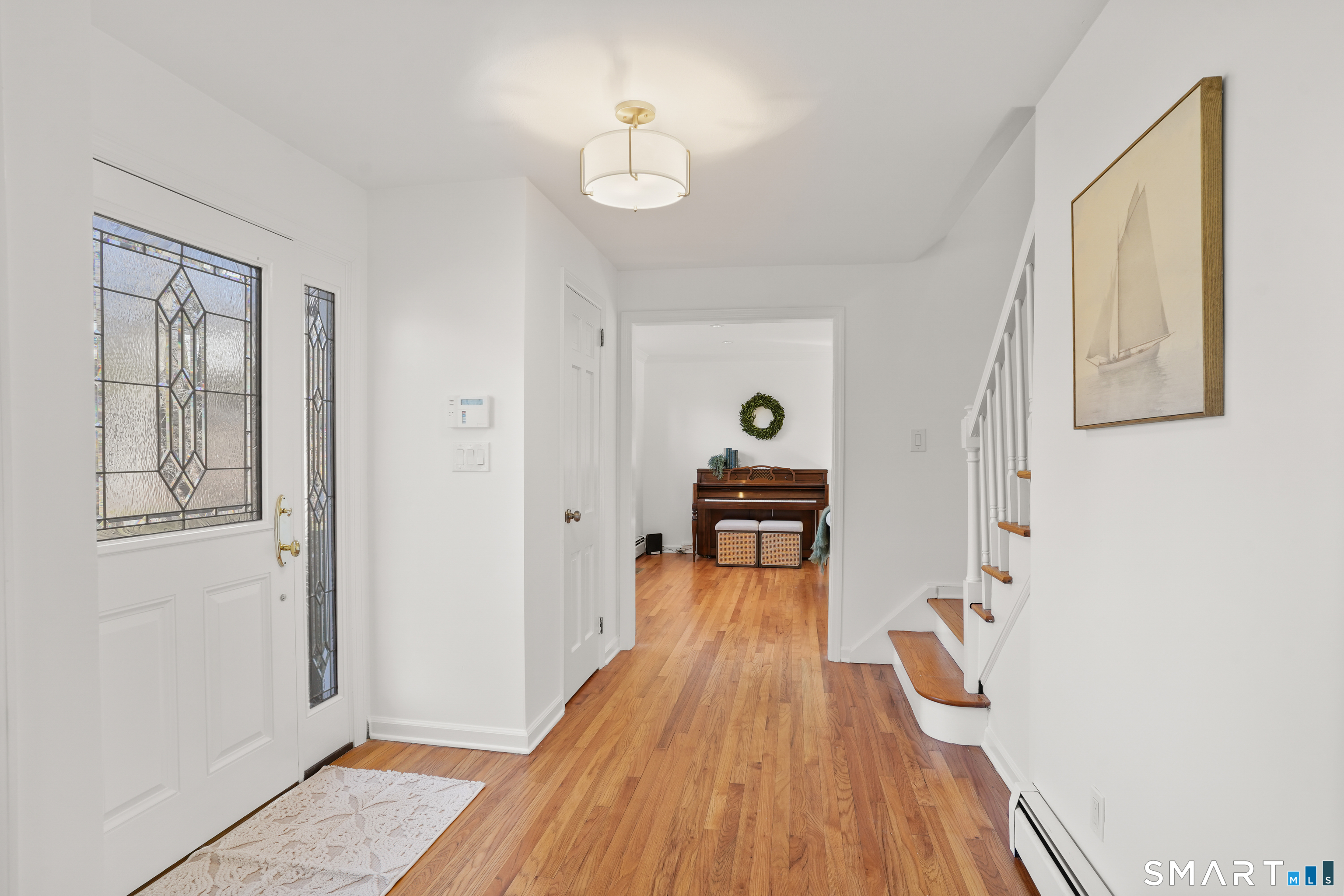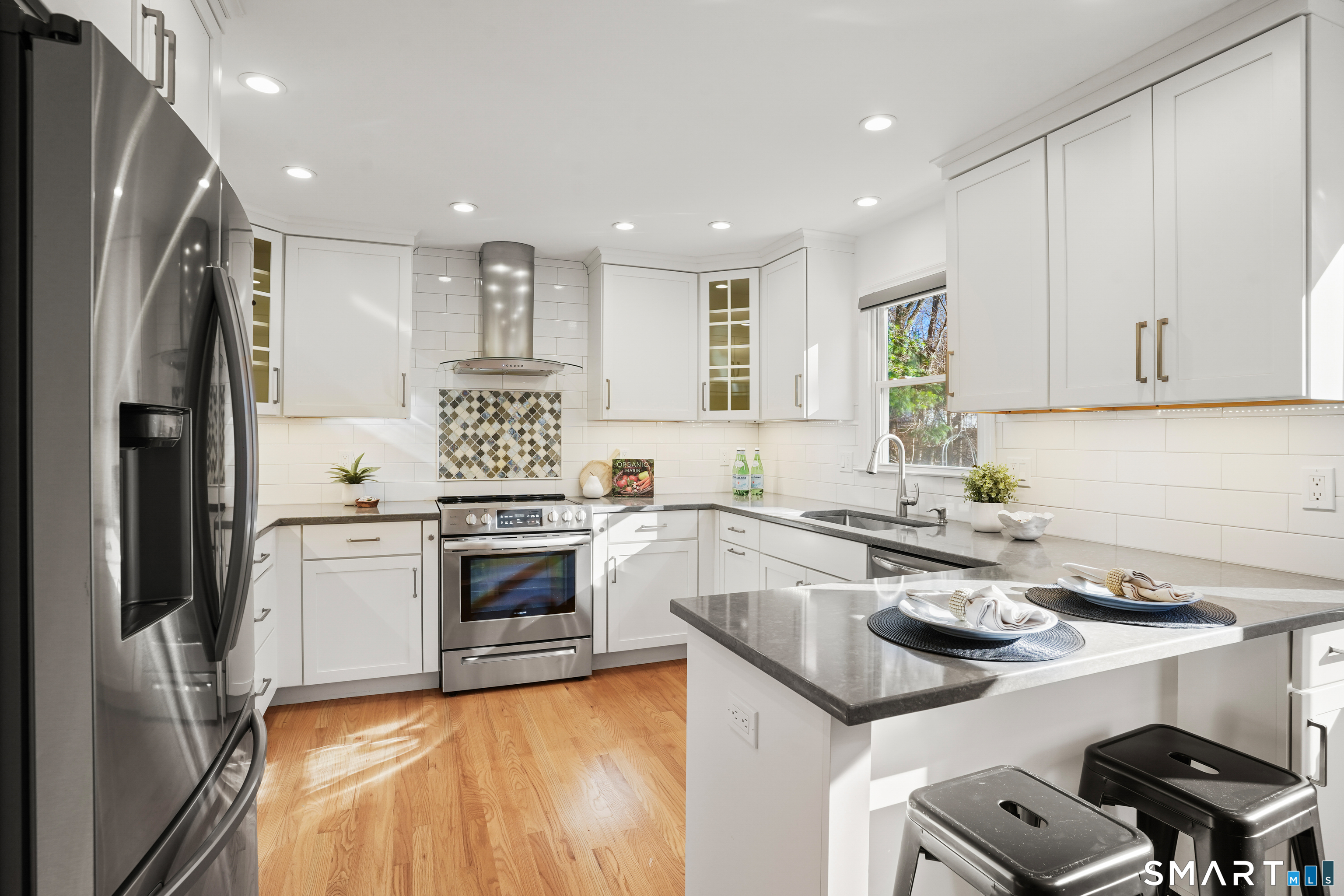 Rare West Norwalk gem - quintessential New England colonial located on desirable cul-de-sac. This warm and inviting 4-bedroom home blends timeless character with thoughtful, stylish updates, set on over a level acre of land. As you enter the home you are drawn to the elegant living room which features a fireplace and French doors that lead to the large deck. Throw a log on the fire and gather around the piano to sing your favorite songs - this is a great space for entertaining. Host the whole family in the large, formal dining room. In the cozy family room, you will want to gather around the wood-burning fireplace for movie and game nights with family and friends. Morning sun drenches the recently renovated eat-in Kitchen features bright, white cabinets with under cabinet lighting, motorized blinds and stainless steel appliances. Upstairs, you'll find four comfortable bedrooms, all freshly painted, with brand-new wall-to-wall carpeting for a soft, modern feel. The Primary bedroom includes ensuite bathroom and walk-in closet. Outdoor living is just as appealing with a large deck overlooking the flat, private backyard, a perfect venue for summer barbeques, relaxation and fun. The full unfinished basement plus garden shed provide extra storage or hobby space. This home has it all in the serenity of a private setting located on the New Canaan line which offers close proximity to shopping, schools, and commuting routes.