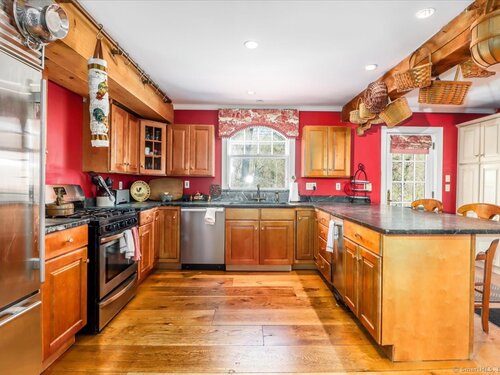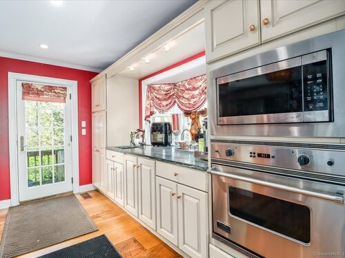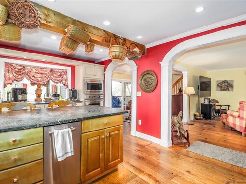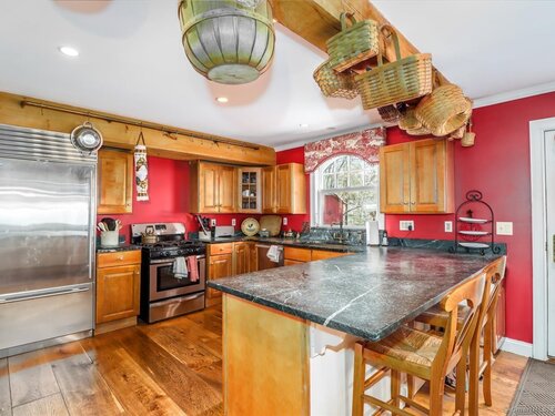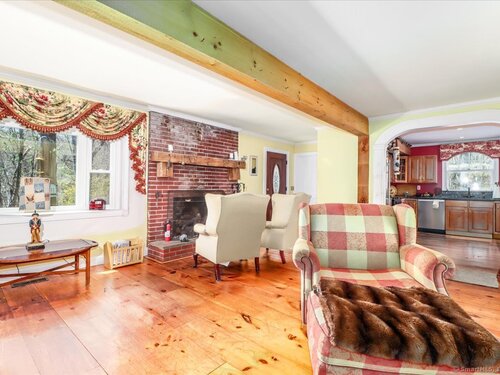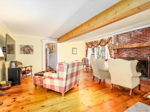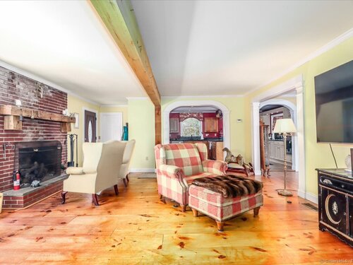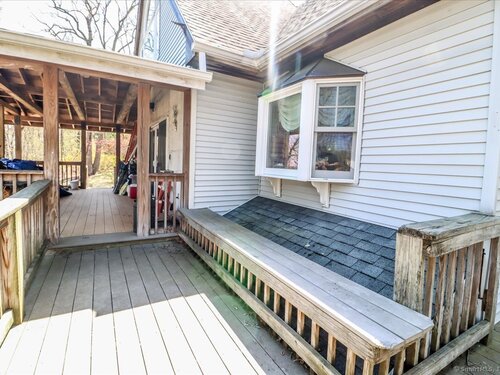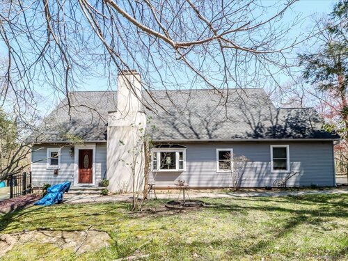 Tucked away at the private end of a cul-de-sac in desirable Sherman and just minutes from Candlewood Lake, this charming Cape offers great space, and a peaceful setting on .92 acres. The home features 3-4 bedrooms and 2 full baths with an inviting open floor plan designed for easy everyday living and entertaining. A spacious living room with fireplace creates a warm gathering space, while the oversized kitchen is a standout with abundant cabinetry, soapstone countertops, stainless steel appliances, and a convenient coffee bar. The dining area with wideboard floors, opens to a large covered porch-perfect for relaxing, outdoor dining, or enjoying the quiet surroundings. Upstairs, a generous sitting room provides flexible living space and connects directly to the primary bedroom with its own en-suite bath, creating a comfortable and private retreat. Set on a beautifully sized lot at the end of a quiet street, this property offers both privacy and proximity to Candlewood Lake, local shops, and the charm of Sherman.
