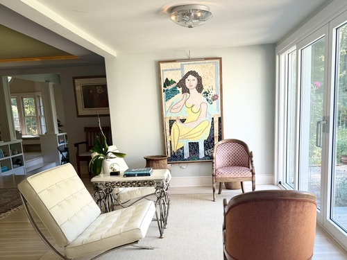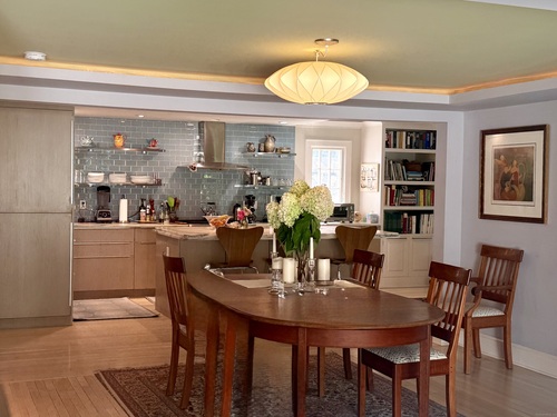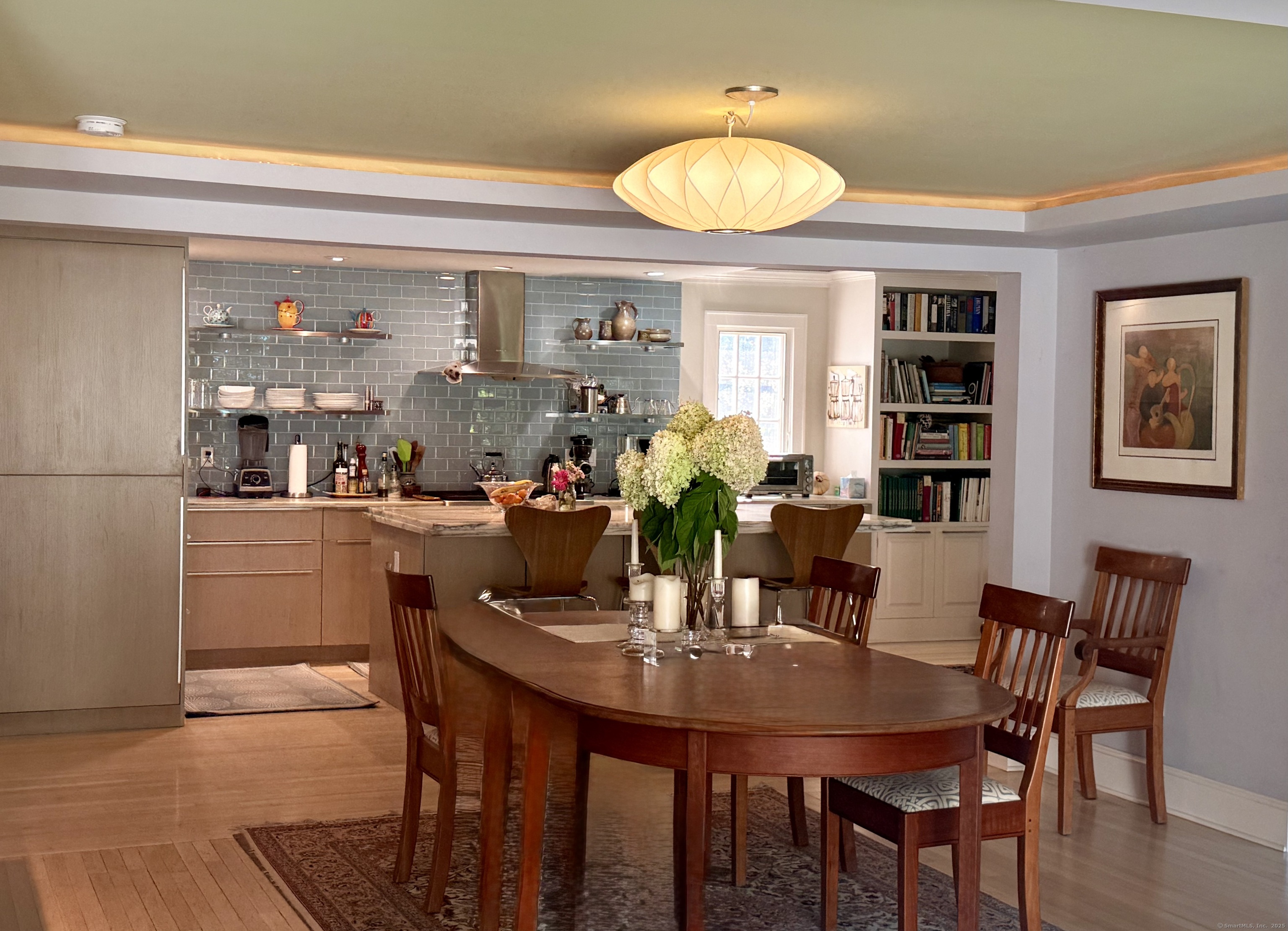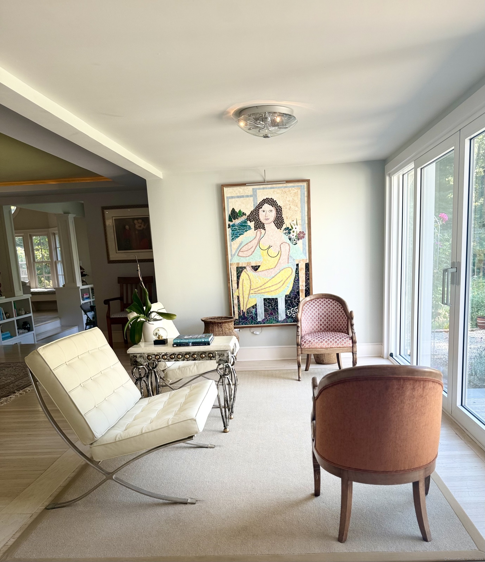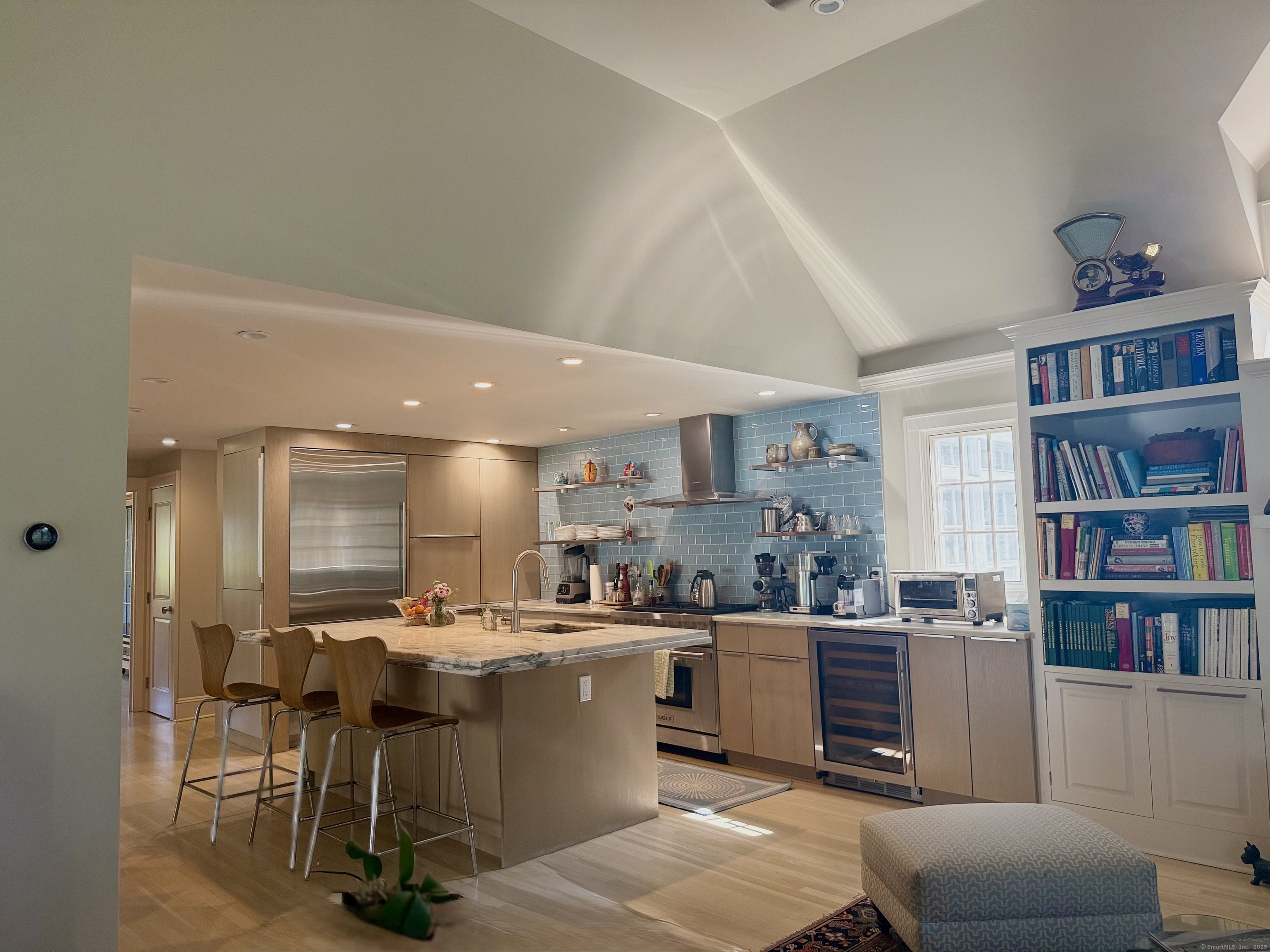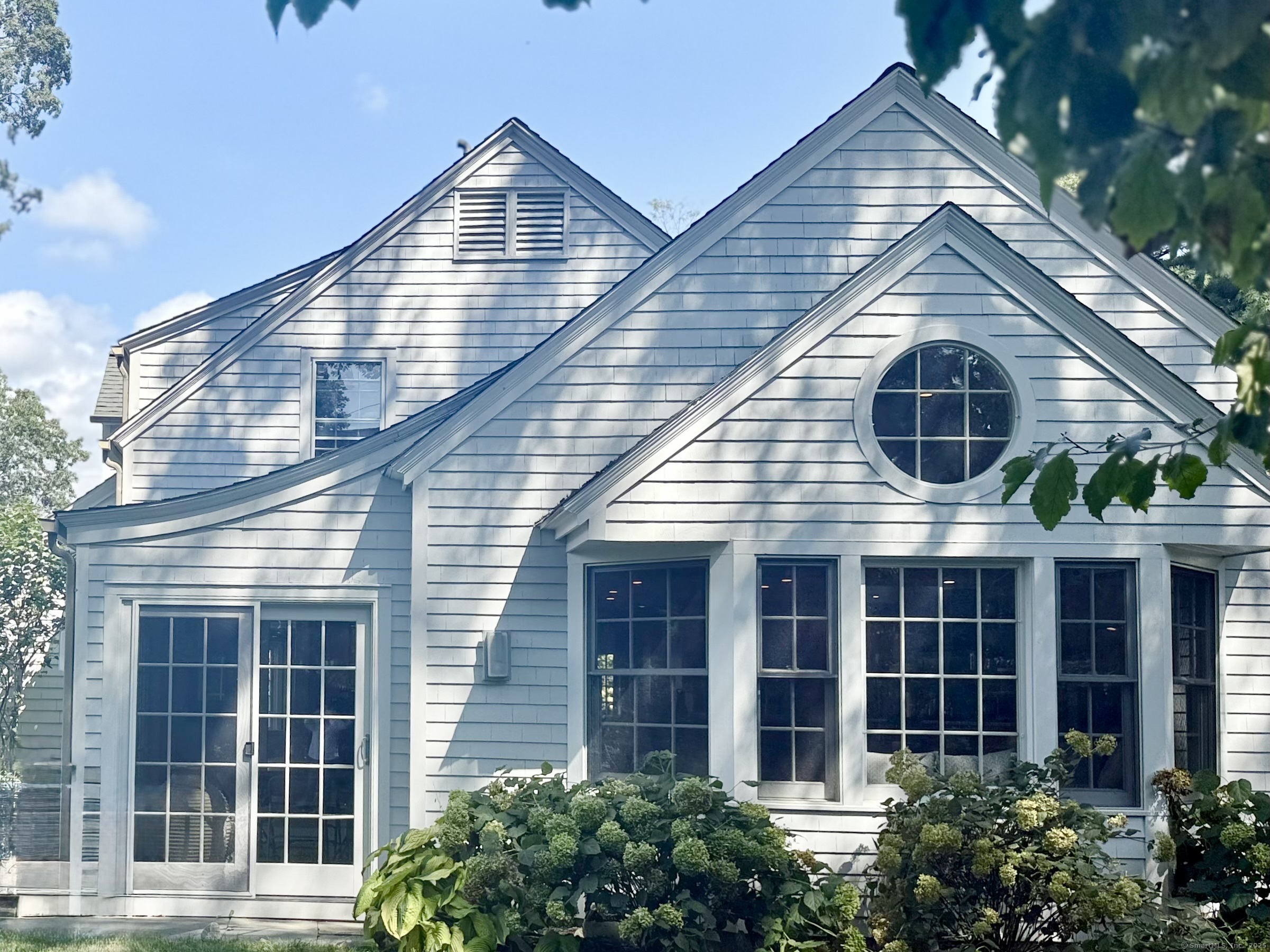 Beautifully remodeled cape with great curb appeal located on desirable cul-de- sac, walking distance to train, farmer's market , library, town & minutes to beach. Front door opens to spacious entry, that greets one with an amazing open- plan main floor, flooded with light with views of the stunning back yard.The Chef's kitchen has custom cabinetry, floating shelves & professional grade appliances.. Striking marble counter & center island top are complemented by glass tile backsplash.Large island has sink and cabinetry on both sides with seating for 4.The kitchen opens to a spacious dining room with trey ceiling rimmed by lighting. The dining room in turn opens to a seating area with sliding doors to a stone patio & garden as well as a beautiful family room with gas fireplace , built-ins & a vaulted ceiling. One step down is a separate area with heated floor tiles, surrounded by glass sliders & doors. The formal living room boasts an original oversized bay window & dramatic wall with FP & built in dry bar. A sun room on the other side of entry hall, has vaulted ceiling, ceiling fan and glass sliding doors. This room leads to the heated 2 car garage. The upper level boasts a primary suite and 3 more bedrooms and full bath. There are hardwood floors through out the house. Lower level has finished rec room, cedar closet and utility room. Charm galore, sun drenched main floor and a beautiful professionally landscaped half acre make this a house you won't want to leave!