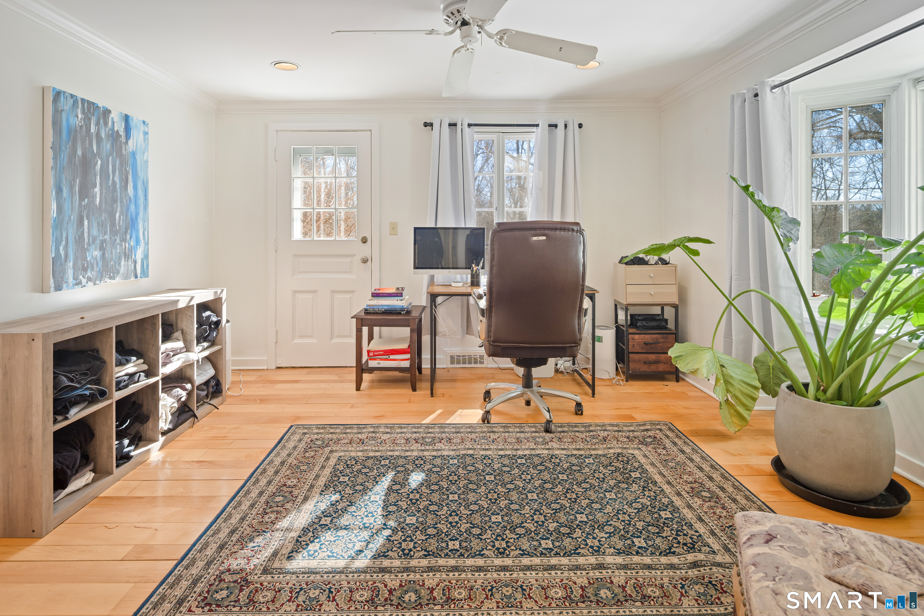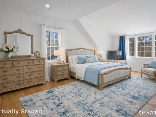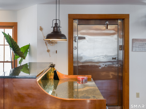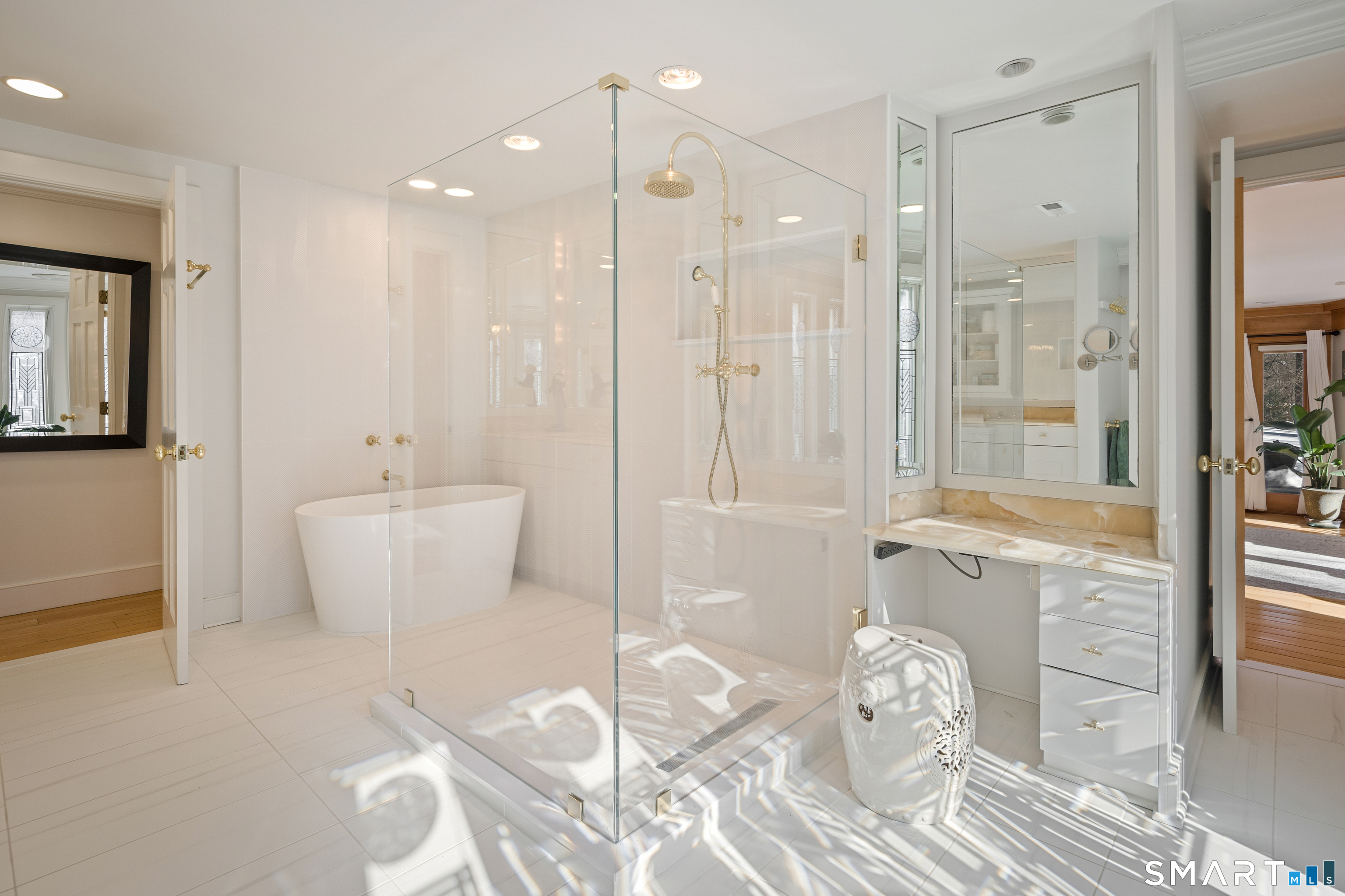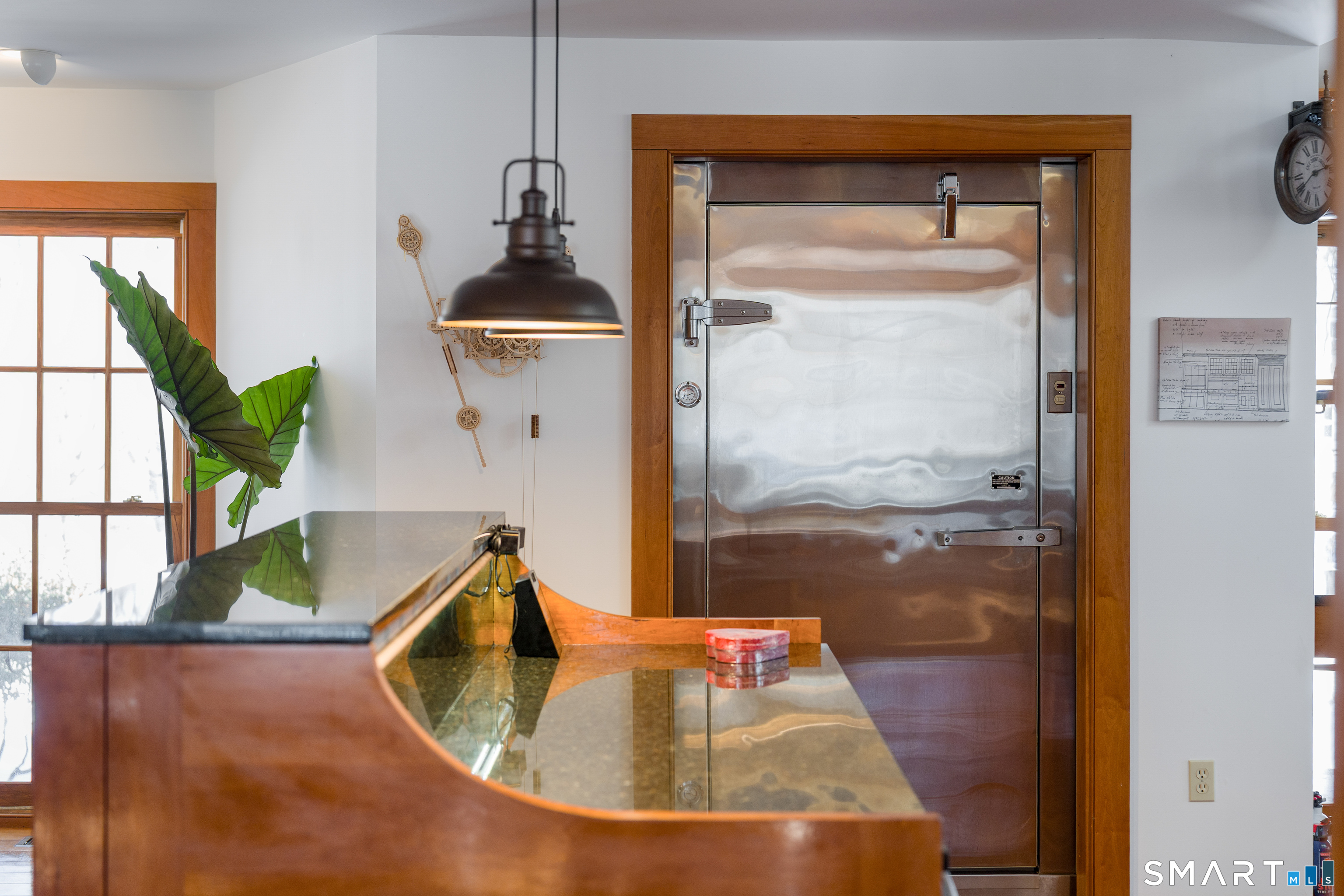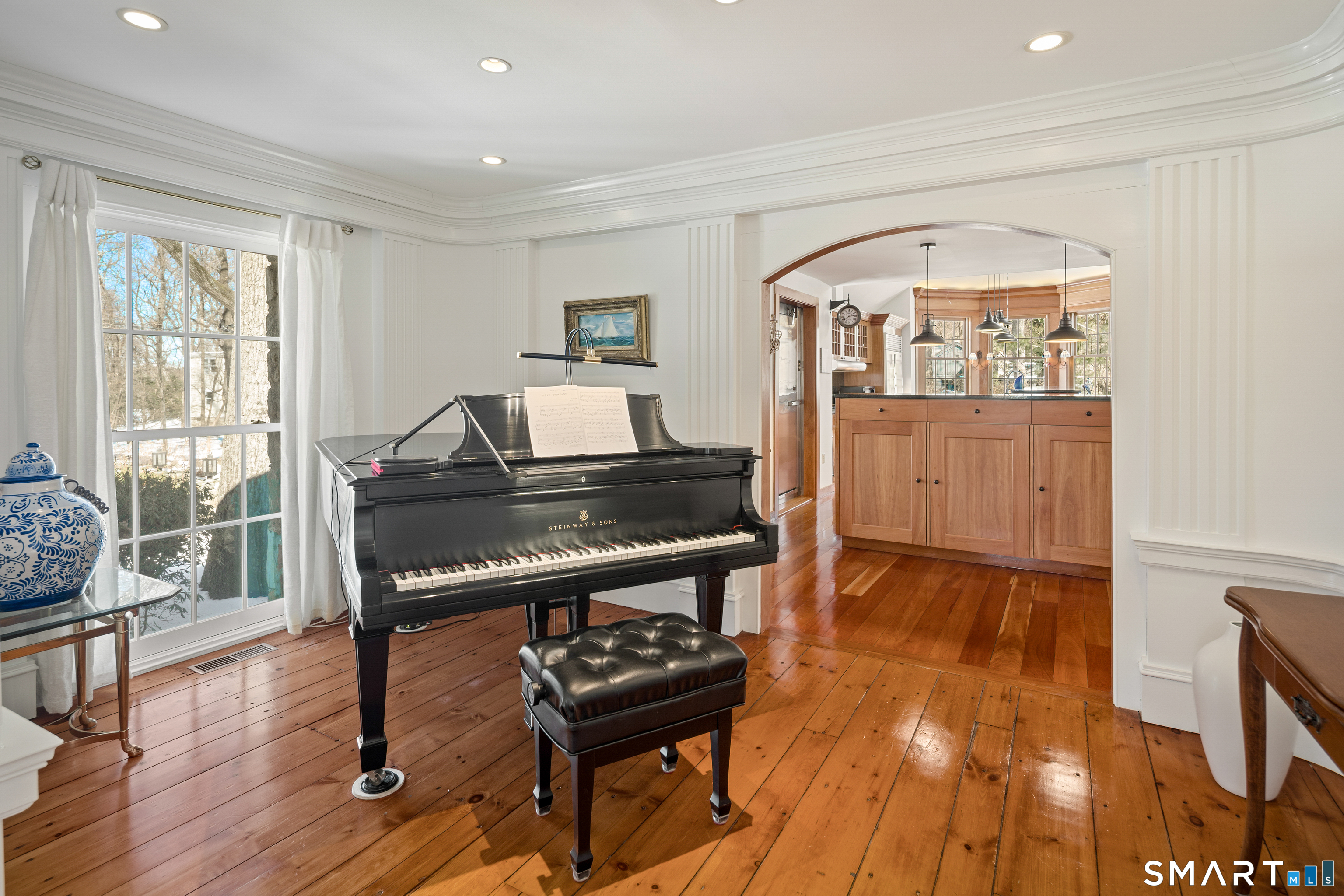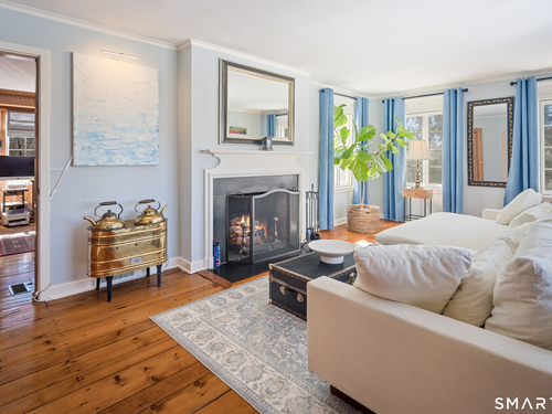 A rare opportunity to live on Topping Lane, a private wooded enclave Rowayton adjacent. Set atop a gentle rise on 1.35 bucolic acres, this gracious stone-and-shingle residence offers five bedrooms and three and one-half baths in a serene, storybook setting defined by privacy, craftsmanship, and natural beauty. A circular drive winds through mature perennial gardens and English-style plantings to a substantial cherry front door, opening into an elegant foyer with wide-plank wood floors. The main level features a formal living room with fireplace, a formal dining room, a cherry-paneled library with fireplace, and a music room that anchors the home with warmth and character. At the heart of the residence is a spectacular kitchen-family room combination, renovated in the 1990s, unified by custom cherry millwork and soaring, chapel-like ceilings-ideal for both everyday living and entertaining. The chef's kitchen is exceptionally well equipped with Sub-Zero refrigeration, a commercial walk-in, a 60-inch Viking range, dual convection ovens, two dishwashers, and a convenient dumbwaiter to the garage. French doors open to a vaulted deck overlooking wooded grounds, ravine, and brook beyond. The primary suite occupies a private ground-level position, featuring warm maple finishes and a recently renovated spa-like bath with an oversized shower, soaking tub, and expansive alabaster countertops. A truly special offering in one of Norwalk's most coveted locations!