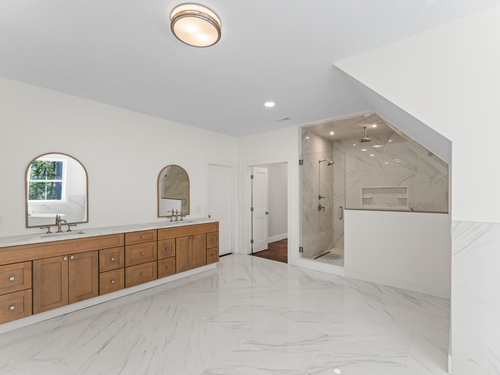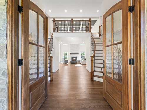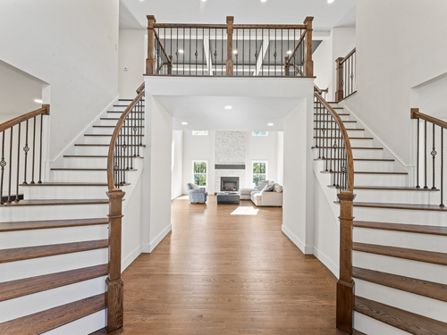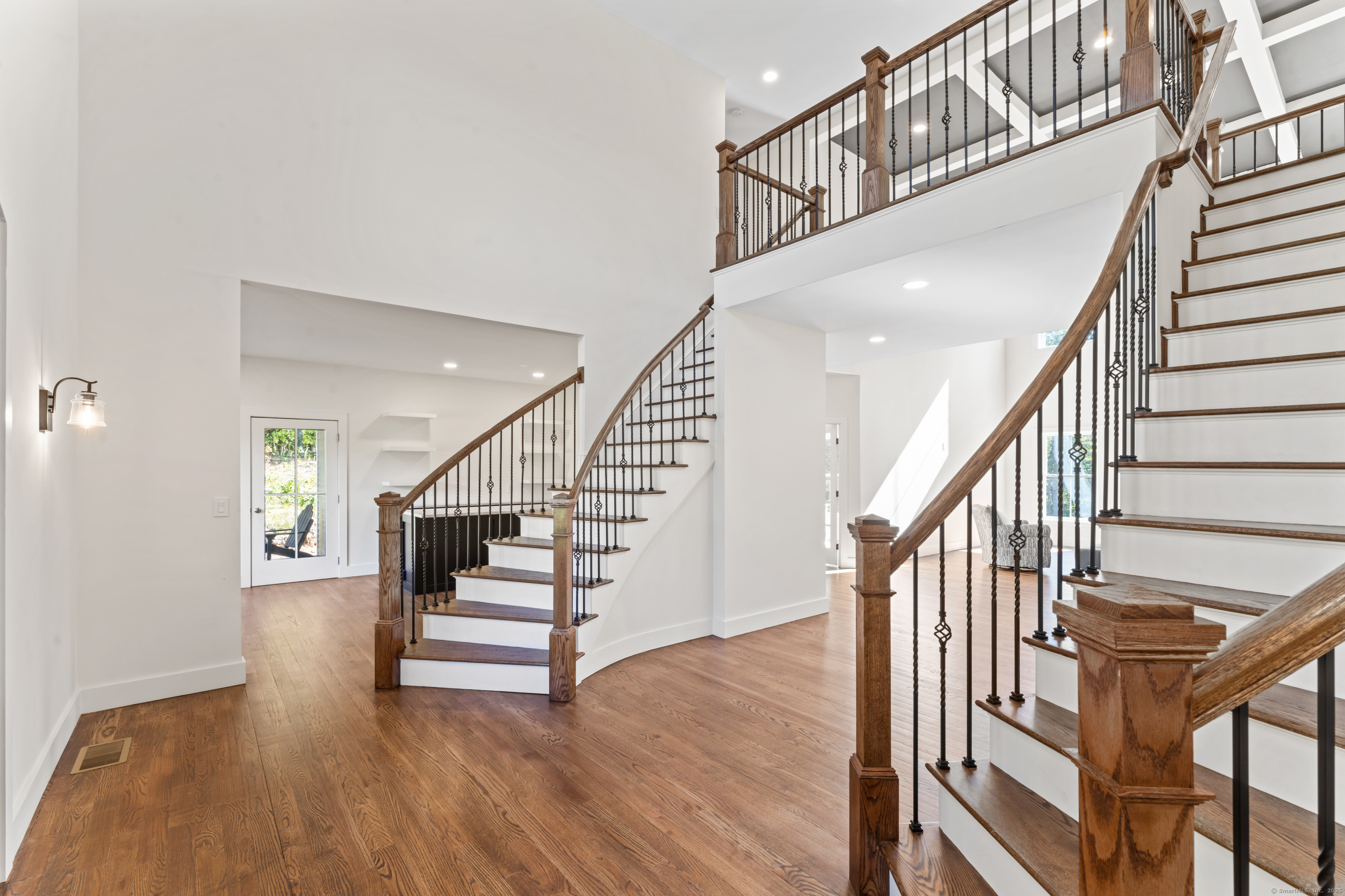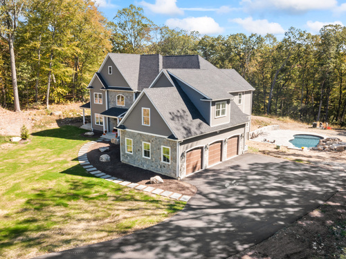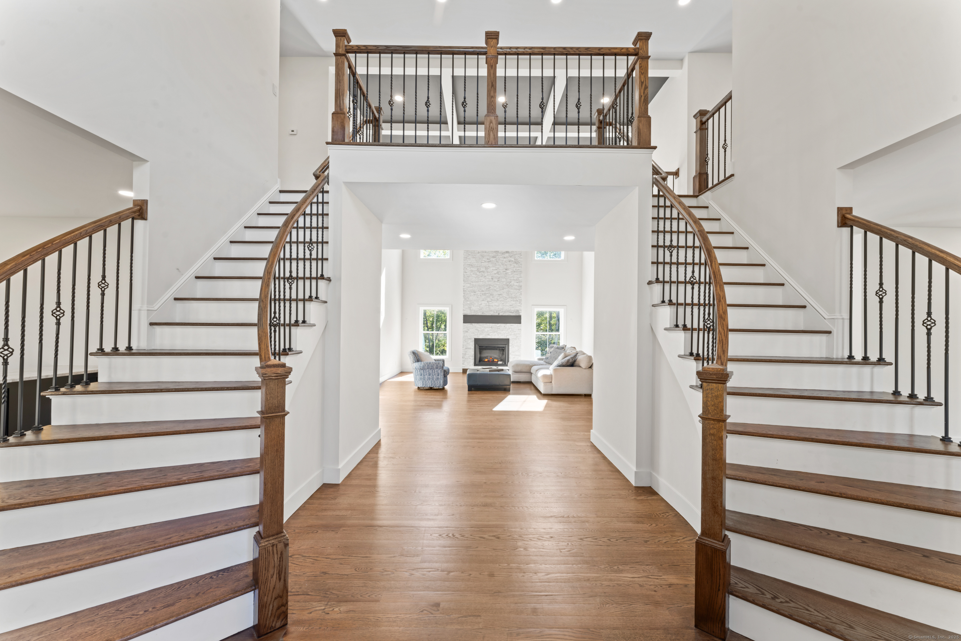 Welcome home to 5 Vona Way, where elegance meets comfort in this exceptional Colonial retreat. Step inside the grand entryway with double circular staircases opening to a breathtaking two-story great room, complete with a fireplace focal point and coffered ceilings. Spanning nearly 5,900 sq. ft. above grade plus just over 2,000 sq. ft. on the finished lower level, this 5-bedroom, 5.5-bath home is designed for both luxury and livability. At the heart of the home, the gourmet chef's kitchen boasts high-end appliances, dual dishwashers, twin beverage centers, a waterfall quartz island, and an oversized walk-in pantry. Hardwood floors and timeless architectural details flow throughout. The grand primary suite offers a private sitting room and dressing area, while upstairs also features an ensuite bedroom and two additional bedrooms with a Jack & Jill bath, all with walk-in closets. A convenient first-floor ensuite bedroom is perfect for guests or extended family. The walk-out lower level is a versatile space, ideal for a gym, wine cellar, home theater, or in-law suite with a full bath. A 5-car garage, including tandem bays, offers plenty of storage and flexibility. Outside, enjoy your own private resort with a heated saltwater pool and custom grotto, the ultimate setting for relaxation and entertaining. Nestled on a quiet cul-de-sac, this home truly has it all.
