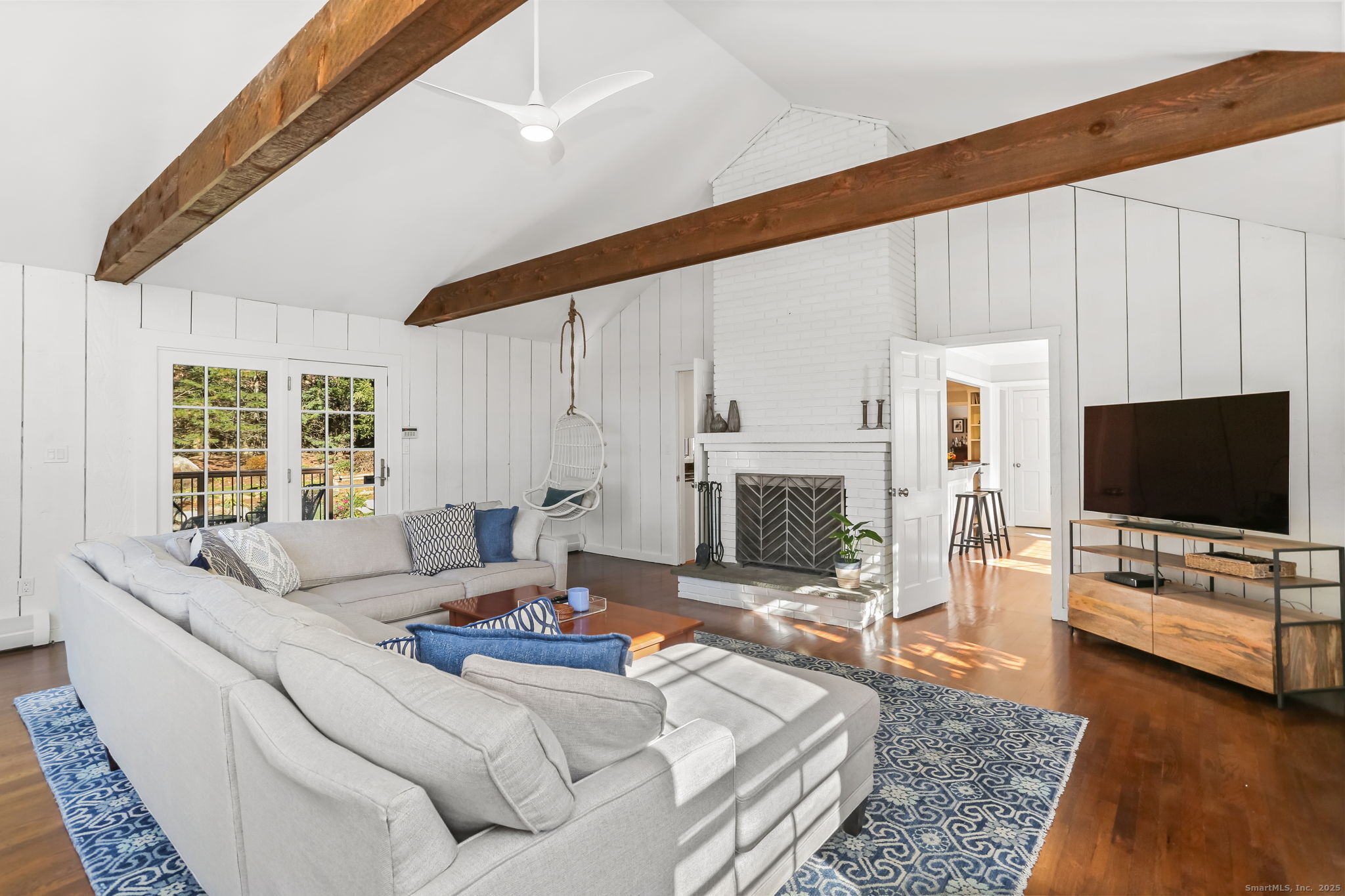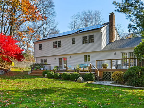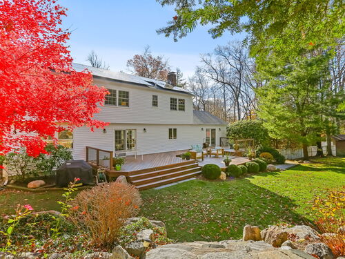 Nestled on a quiet, picturesque cul-de-sac, this beautifully maintained home enjoys a prime Westport location-just steps from Staples High School and Bedford Middle School, with direct gated access for ultimate convenience. A short drive brings you to all the amenities Westport has to offer, from shopping and dining to beaches and vibrant town life. Set on a private, level acre, the outdoor spaces are truly exceptional. An expansive deck, dedicated fire-pit area, and fully fenced backyard create the perfect setting for entertaining, play, and year-round enjoyment. Inside, the classic and highly desirable layout features a welcoming two-story foyer, a dramatic great room with exposed beams, vaulted ceilings, and a wood-burning fireplace, an eat-in kitchen with a cozy sitting area, and an oversized dining room ideal for gatherings. The second floor includes all four bedrooms, highlighted by a spacious primary suite with vaulted ceilings, a walk-in closet, and a serene spa bath. The finished lower level offers flexible space for a playroom, gym, office, or all of the above-plus abundant storage. A rare combination of location, layout, and lifestyle-this one won't last.