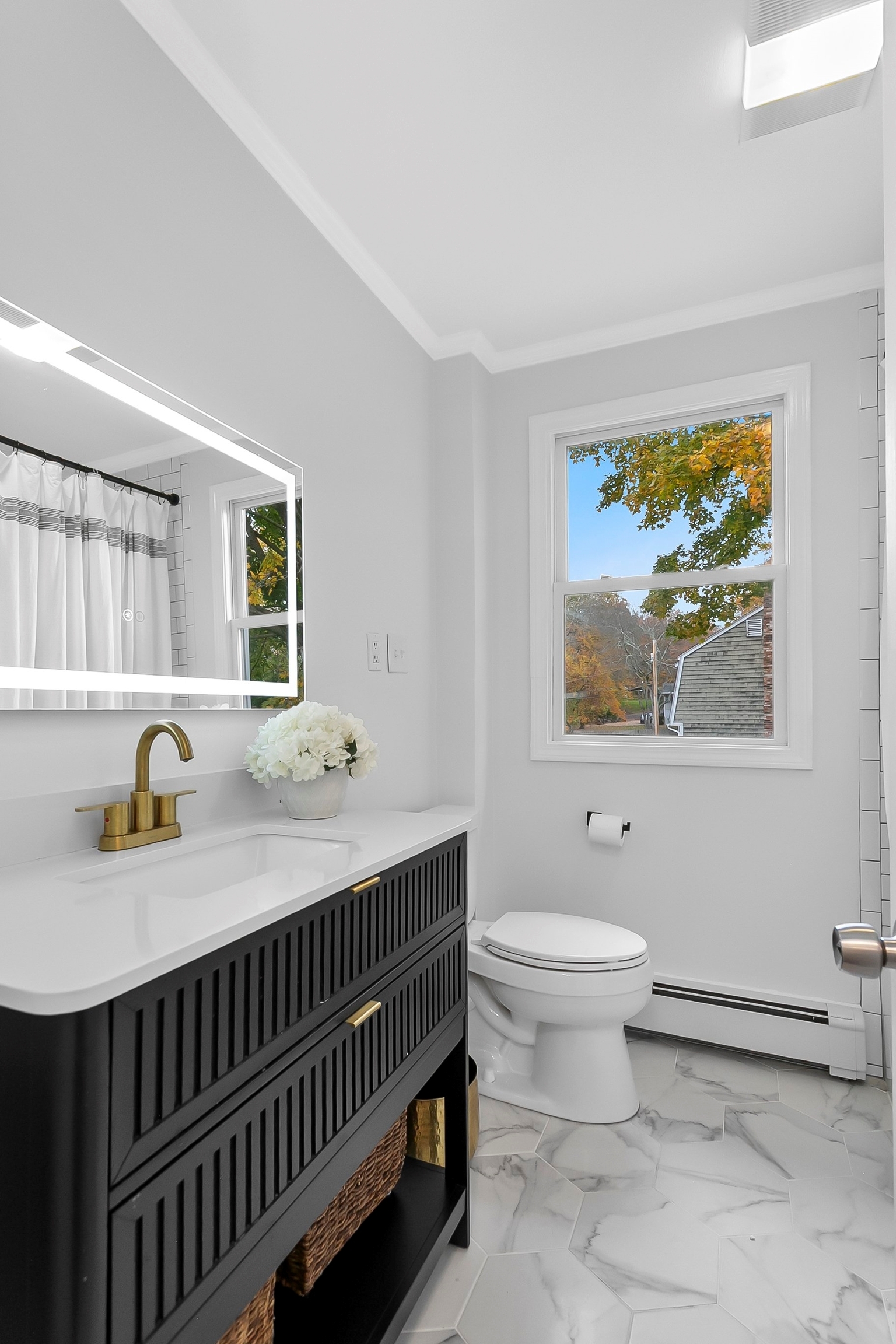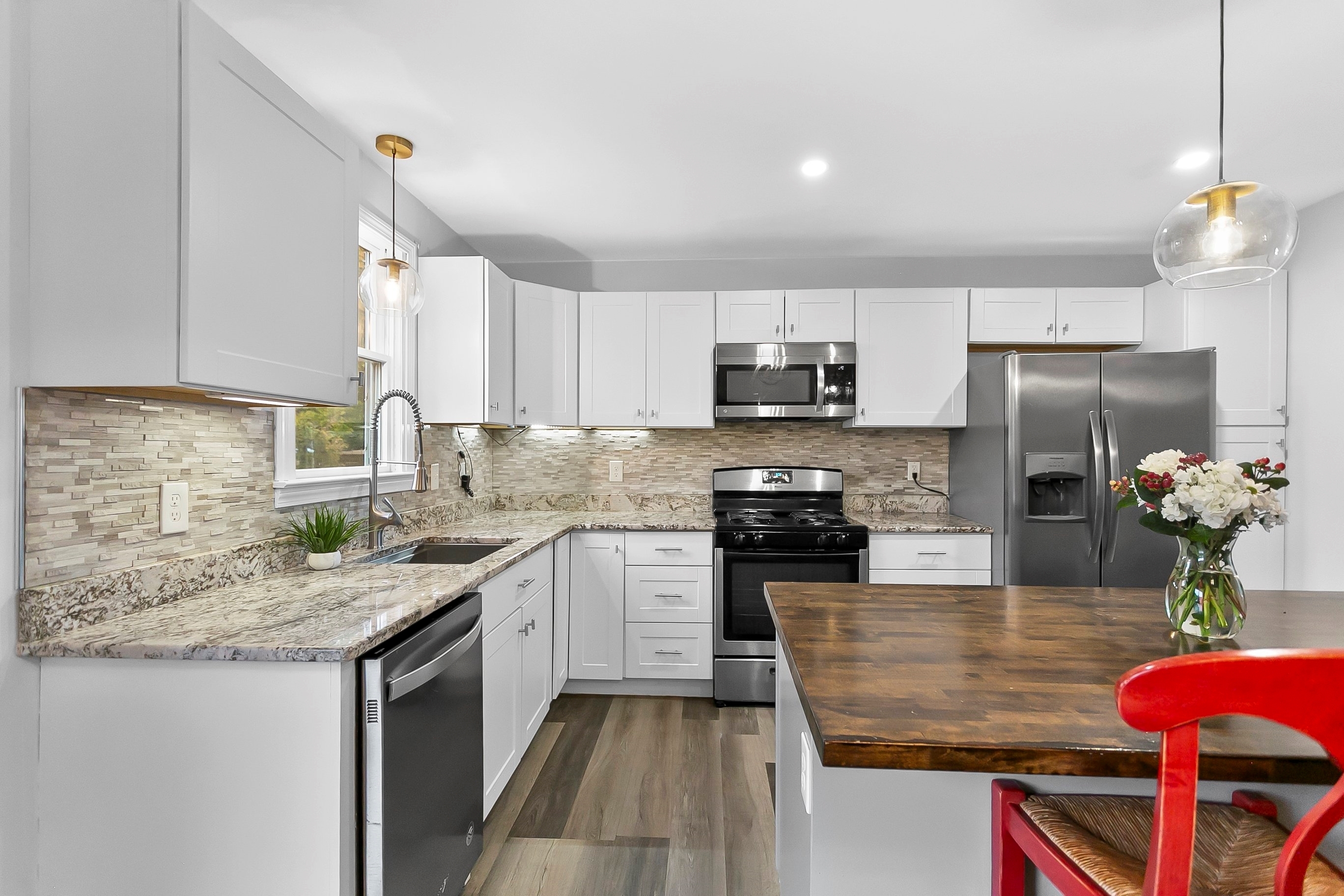Welcome to 526 Wilson Street, perfectly positioned in Fairfield's sought-after Stratfield neighborhood, known for its tree-lined streets, strong community feel, & convenience to local favorites like Maione's, Dragon 168, & Joseph's Bagel, w/ Lincoln Park just around the corner. Less than 10 minutes to downtown Fairfield's beaches, shops, restaurants, and train, this home delivers the ideal blend of neighborhood charm & central accessibility. Beautifully updated & designed for modern living, the bright open layout feat vaulted ceilings, a charming window seat, & a striking stone fireplace that anchors the living space w/ warmth & style. The renovated kitchen showcases white cabinetry, quartz countertops, stainless steel appliances, & a center island w/ seating, opening directly to an oversized multi-level deck, perfect for entertaining or dining al fresco. Upstairs offers 3 comfortable bedrooms & a newly renovated full bath. The entry level includes a welcoming foyer, powder room, & laundry area, plus a flexible home office or den w/ a separate entrance, ideal for work, guests, or extended living. A finished lower level adds versatility for a playroom, gym, or media space. A large backyard w/ a new stone fire pit and landscaping provides a private setting for relaxation, play, or gardening. With a full-house generator, attached garage, & a sought-after location near top-rated schools, this home delivers the very best of Stratfield living. Sellers replacing roof prior to close.