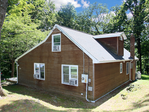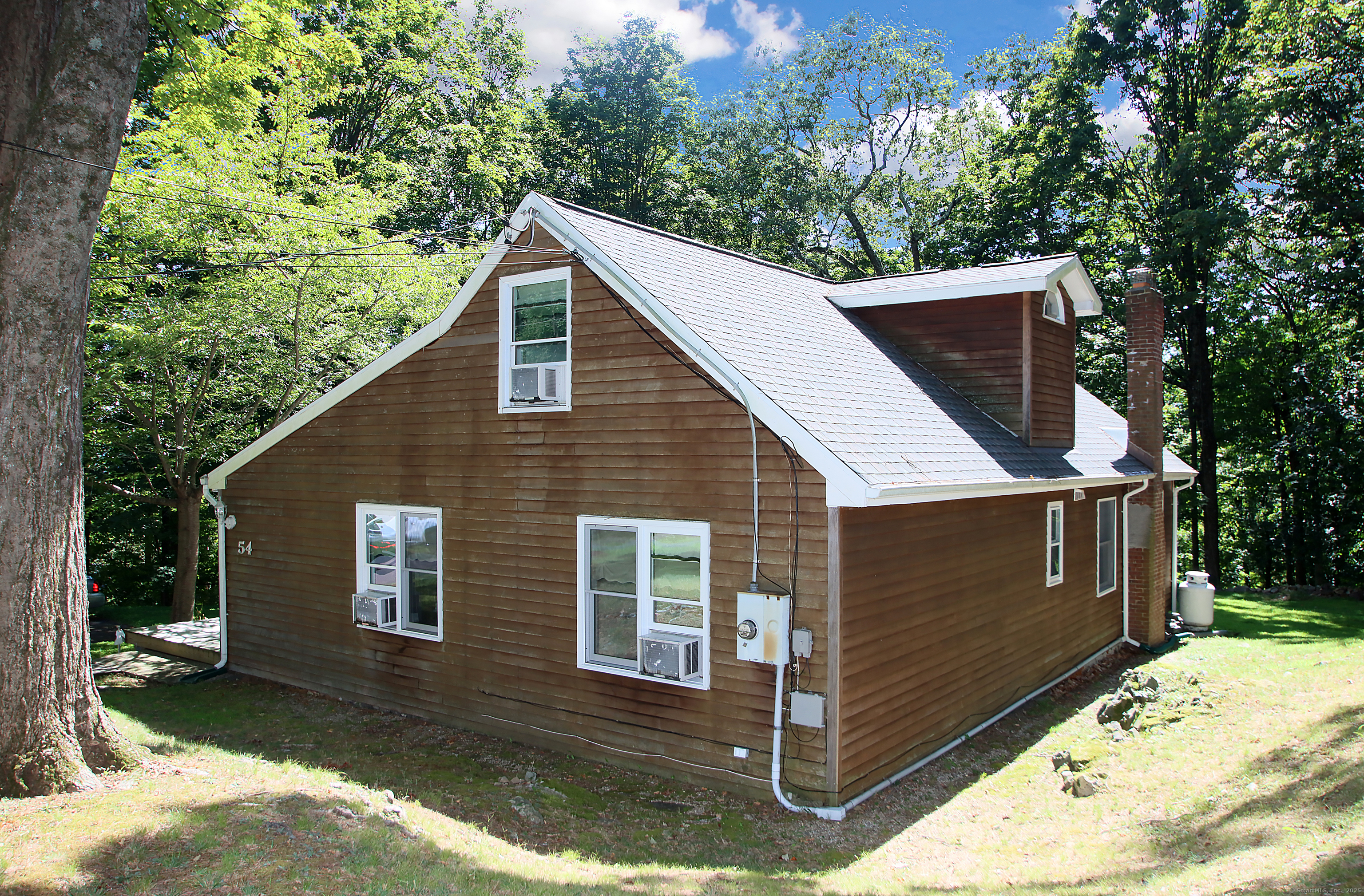 Sitting on nearly 2 secluded acres this spacious cape is ready for you to make it your own. Well maintained by it's current owners, this home is ready for you to take it to the next level. The main level features a kitchen, living room, Primary bedroom with full bath as well as a 2nd bedroom. There is also a large unfinished room that would make a wonderful kitchen/dining area. The second floor has 2 additional bedrooms and a roughed in bathroom. There are abundant closets and storage spaces. throughout. Outside you will enjoy the peaceful wooded surroundings with seasonal views of Lake Kenosia in the distance. The roof was replaced in 2020 and the furnace is 11 years young.