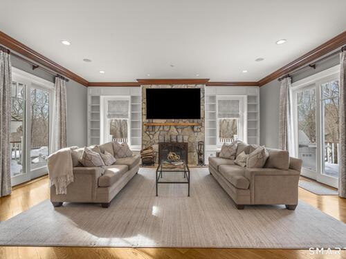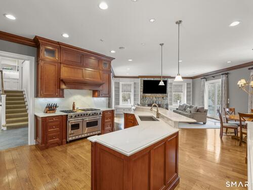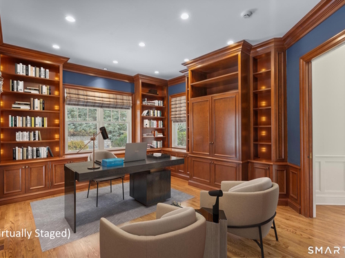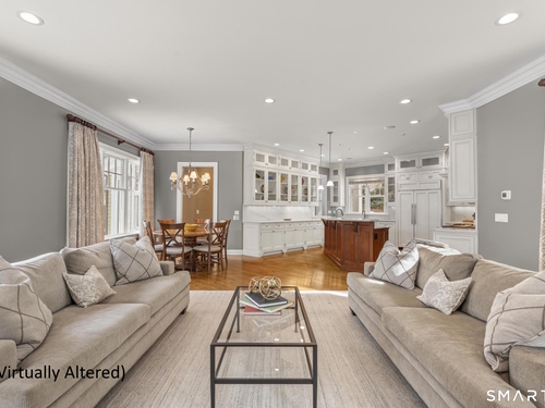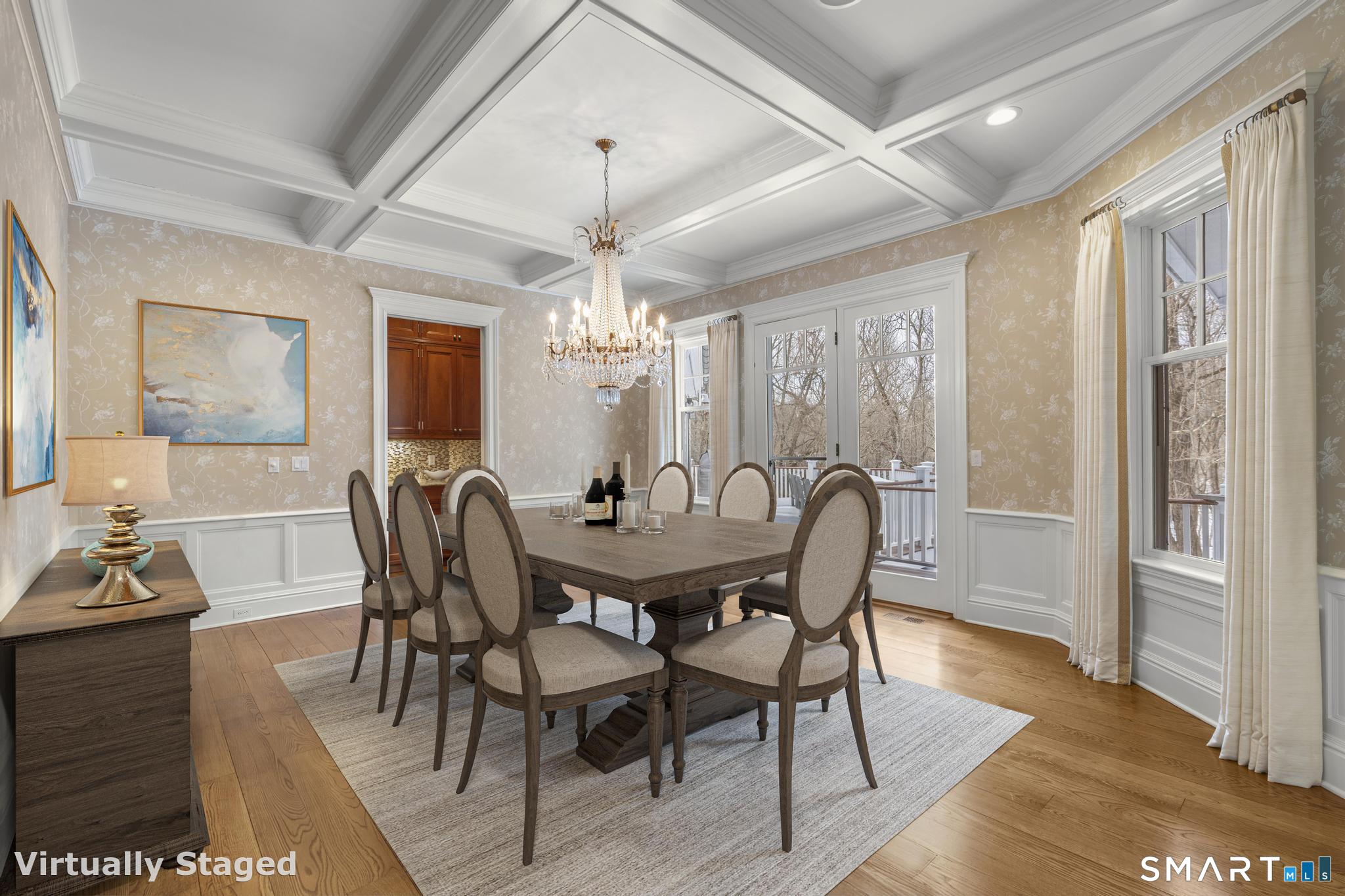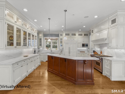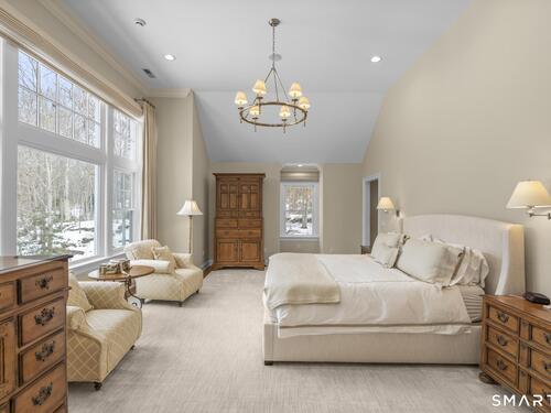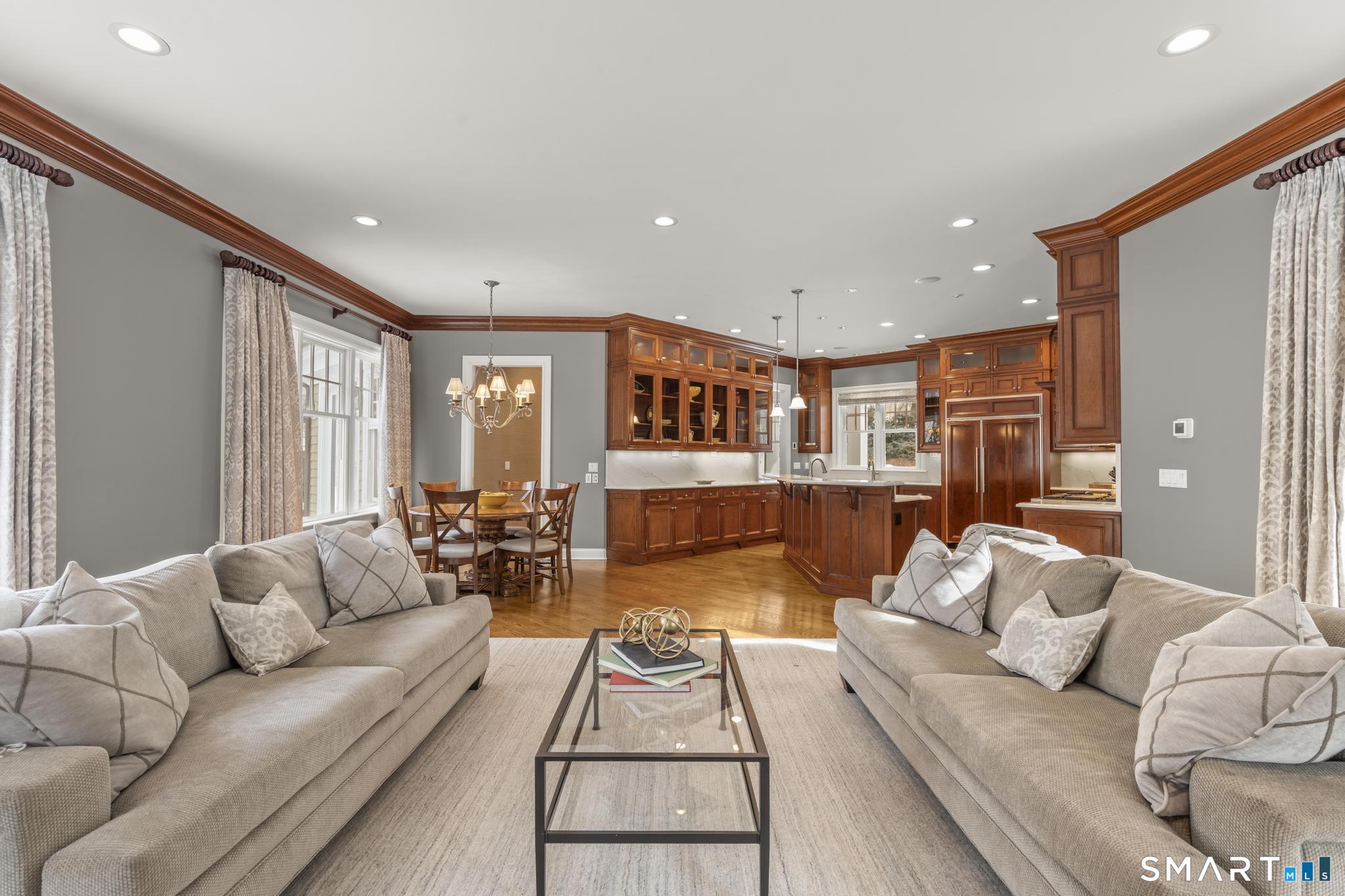 A rare opportunity to own a custom-designed residence by renowned architect Peter Cadoux, nestled on a private cul-de-sac abutting Quarry Head Park/Harrison Smith Preserve providing direct access to nearly 60 acres of hiking and equestrian trails. Additional privacy is provided by a serene sanctuary of forever green space to the west. This extraordinary home combines architectural artistry, thoughtful design, and the finest materials and craftsmanship. The home has been meticulously maintained by a professional property manager. A grand foyer with 20+ ft ceilings, welcomes guests into an atmosphere of understated elegance, framed by exceptional millwork. The main living spaces flow gracefully: a formal dining room adorned with a crystal chandelier and an inviting living room featuring a coffered ceiling and fireplace. A half bath for guests and a private office with built-in wood cabinetry is off to the right. Off the dining room, the butler's pantry featuring a refrigerator and wine cooler make entertaining a breeze. The kitchen is a culinary dream, appointed with Viking and Sub-Zero appliances, double sinks, beautiful quartz countertops and gorgeous custom cabinetry. With ease for entertainment, the kitchen opens to the family room with a well-appointed stone fireplace. Mirroring this focal point, an outdoor fireplace anchors the wrap-around deck, offering seamless indoor-outdoor entertaining.