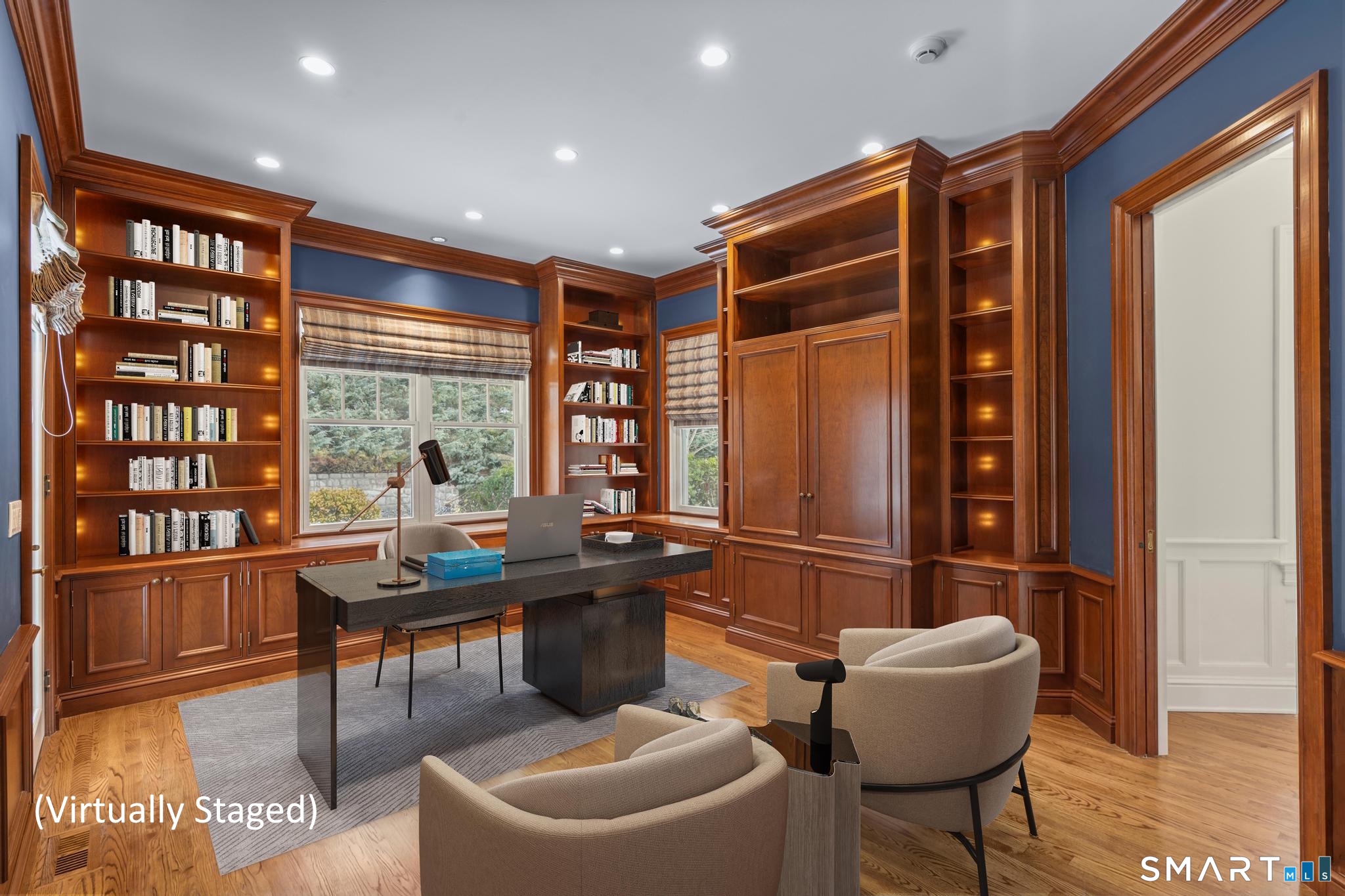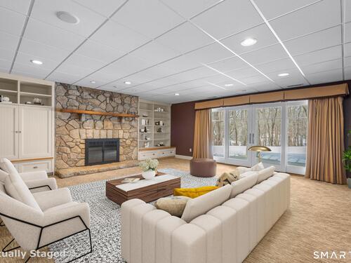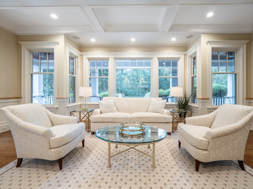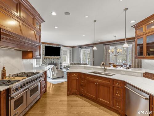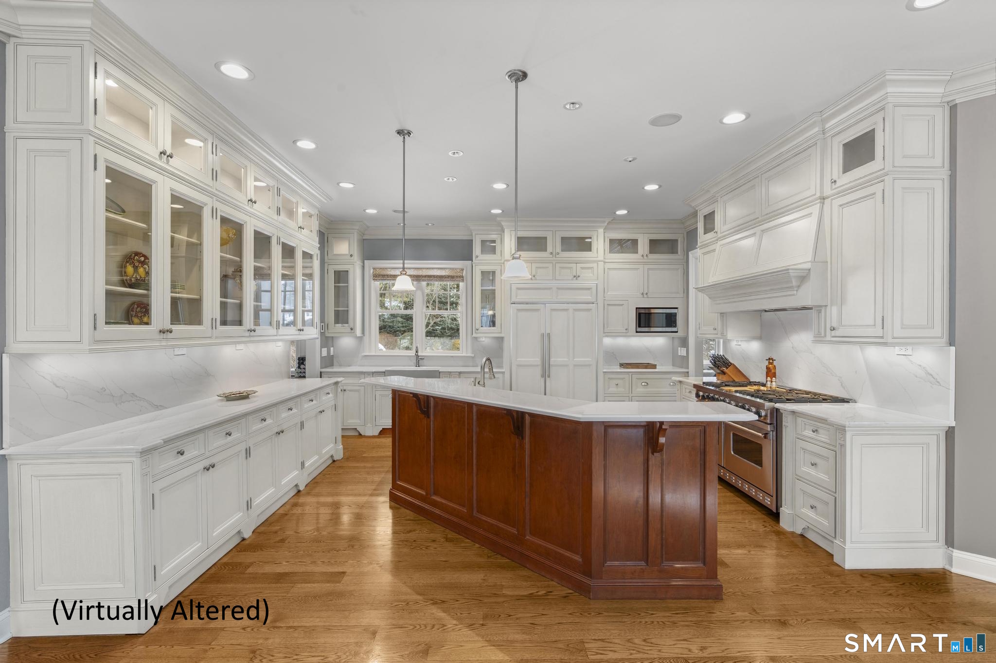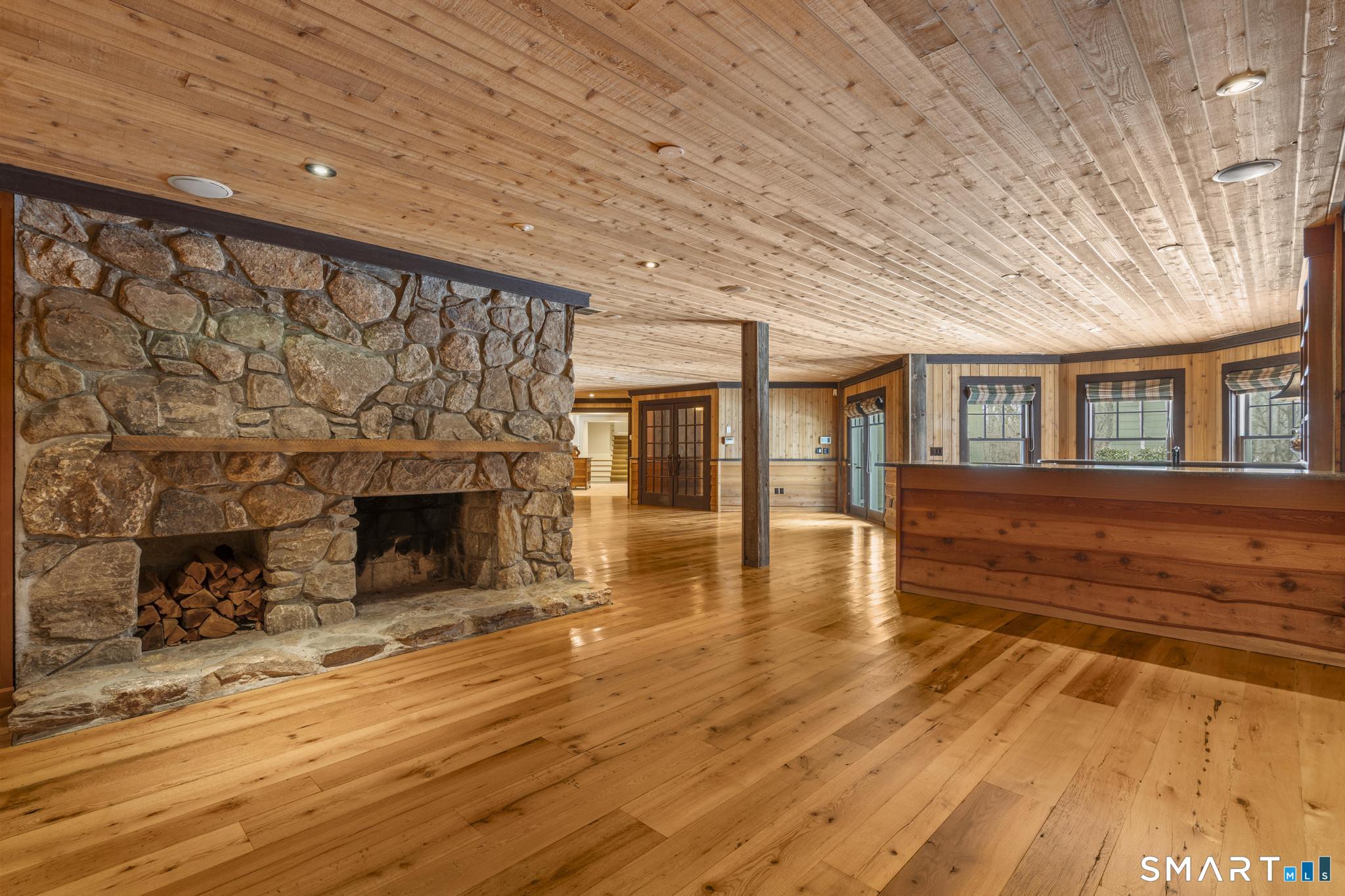 A rare opportunity to own a custom-designed residence by renowned architect Peter Cadoux, nestled on a private cul-de-sac abutting Quarry Head Park/Harrison Smith Preserve providing direct access to nearly 60 acres of hiking and equestrian trails. Additional privacy is provided by a serene sanctuary of forever green space to the west. This extraordinary home combines architectural artistry, thoughtful design, and the finest materials and craftsmanship. The home has been meticulously maintained by a professional property manager. A grand foyer with 20+ ft ceilings, welcomes guests into an atmosphere of understated elegance, framed by exceptional millwork. The main living spaces flow gracefully: a formal dining room adorned with a crystal chandelier and an inviting living room featuring a coffered ceiling and fireplace. A half bath for guests and a private office with built-in wood cabinetry is off to the right. Off the dining room, the butler's pantry featuring a refrigerator and wine cooler make entertaining a breeze. The kitchen is a culinary dream, appointed with Viking and Sub-Zero appliances, double sinks, beautiful quartz countertops and gorgeous custom cabinetry. With ease for entertainment, the kitchen opens to the family room with a well-appointed stone fireplace. Mirroring this focal point, an outdoor fireplace anchors the wrap-around deck, offering seamless indoor-outdoor entertaining.