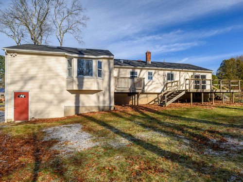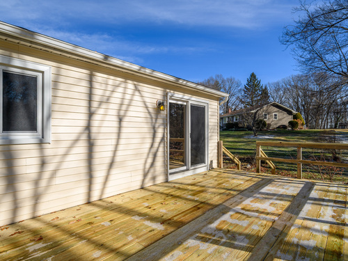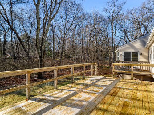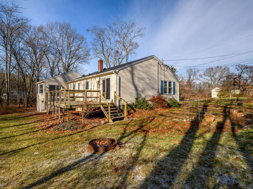 Welcome to 56 Appleblossom Lane in Newtown, CT a beautifully updated Ranch home in a highly desirable neighborhood close to town. This sun-filled property offers an open floor plan with a spacious living room, eat-in kitchen, and direct access to an oversized brand-new deck, perfect for outdoor entertaining. The primary bedroom suite features vaulted ceilings with beams, a walk-in closet, large full bath, and a private deck. Two additional bedrooms are generously sized with wall-to-wall carpeting and hardwood floors underneath. Recent home upgrades include a new roof, new interior paint, new bedroom doors, updated hardware, newer windows and slider, and mechanicals approximately 5-7 years old. The expansive lower level offers excellent potential for future living space or a home office. A spacious two-car garage adds convenient storage. Enjoy the level yard, raised-bed gardens, and quiet streets ideal located close to Newtown center, schools, shopping, and commuter routes. Home is being sold as-is. A fantastic opportunity to own a well-maintained Ranch in one of Newtown's most sought-after neighborhoods.