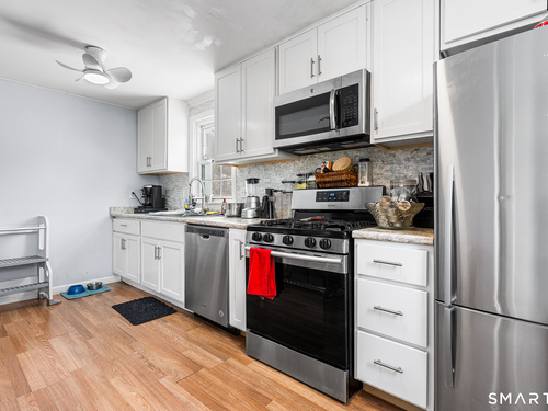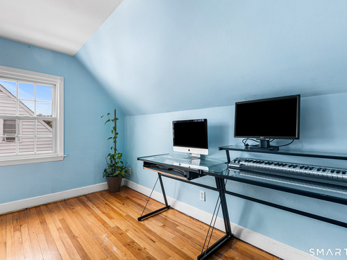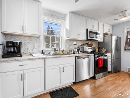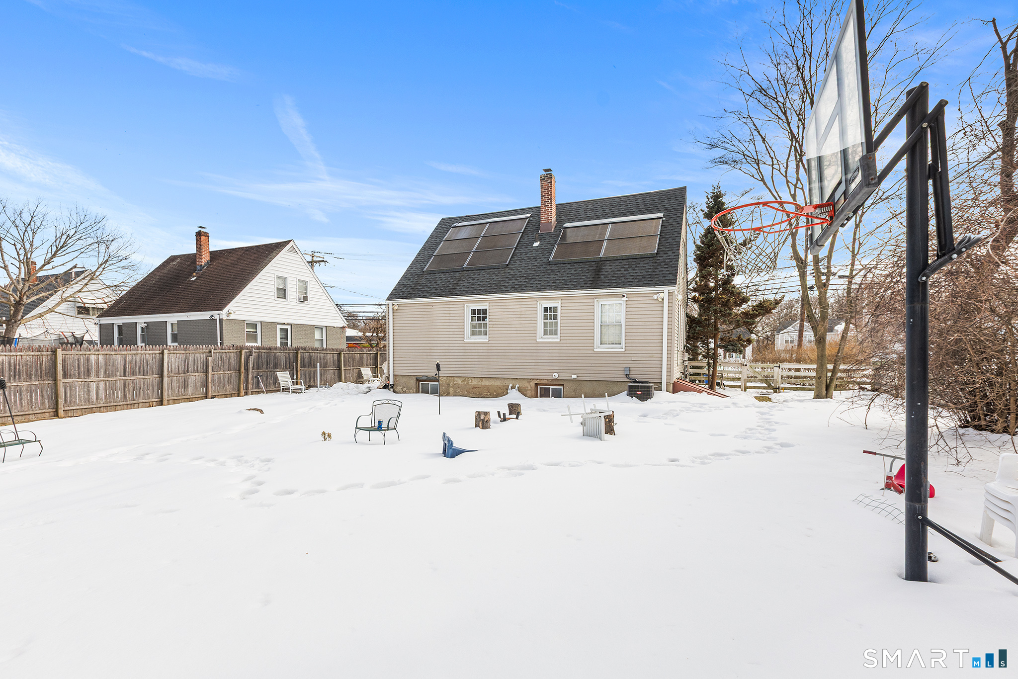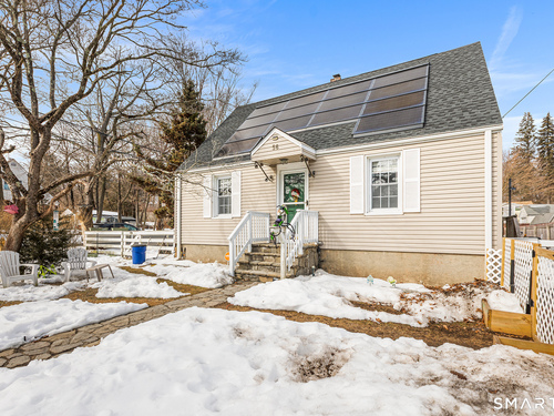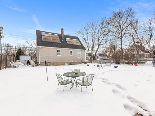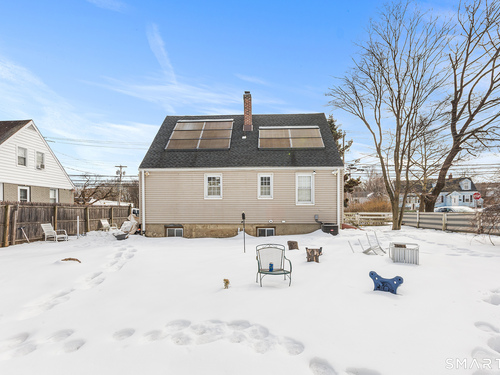 This inviting Cape offers a versatile layout with a spacious living room, kitchen, dining room, bedroom and full bath on the main level with two additional bedrooms on the 2nd floor. The finished lower level expands your living space with a spacious family room featuring cherry Pergo flooring, a full bath, and a flexible room ideal for a home office, guest suite, or potential in-law setup. This home is highlighted by hardwood floors, energy efficient solar panels, and central air for year-round comfort. Set on a beautiful corner lot, the fully fenced yard provides privacy and room to enjoy outdoor living. Conveniently located close to shopping, dining, and major routes, this home blends comfort, functionality, and location.