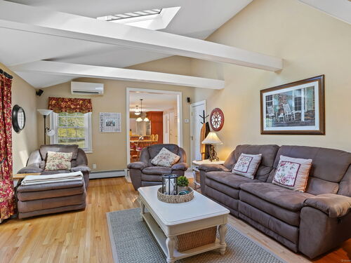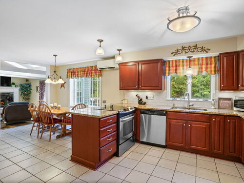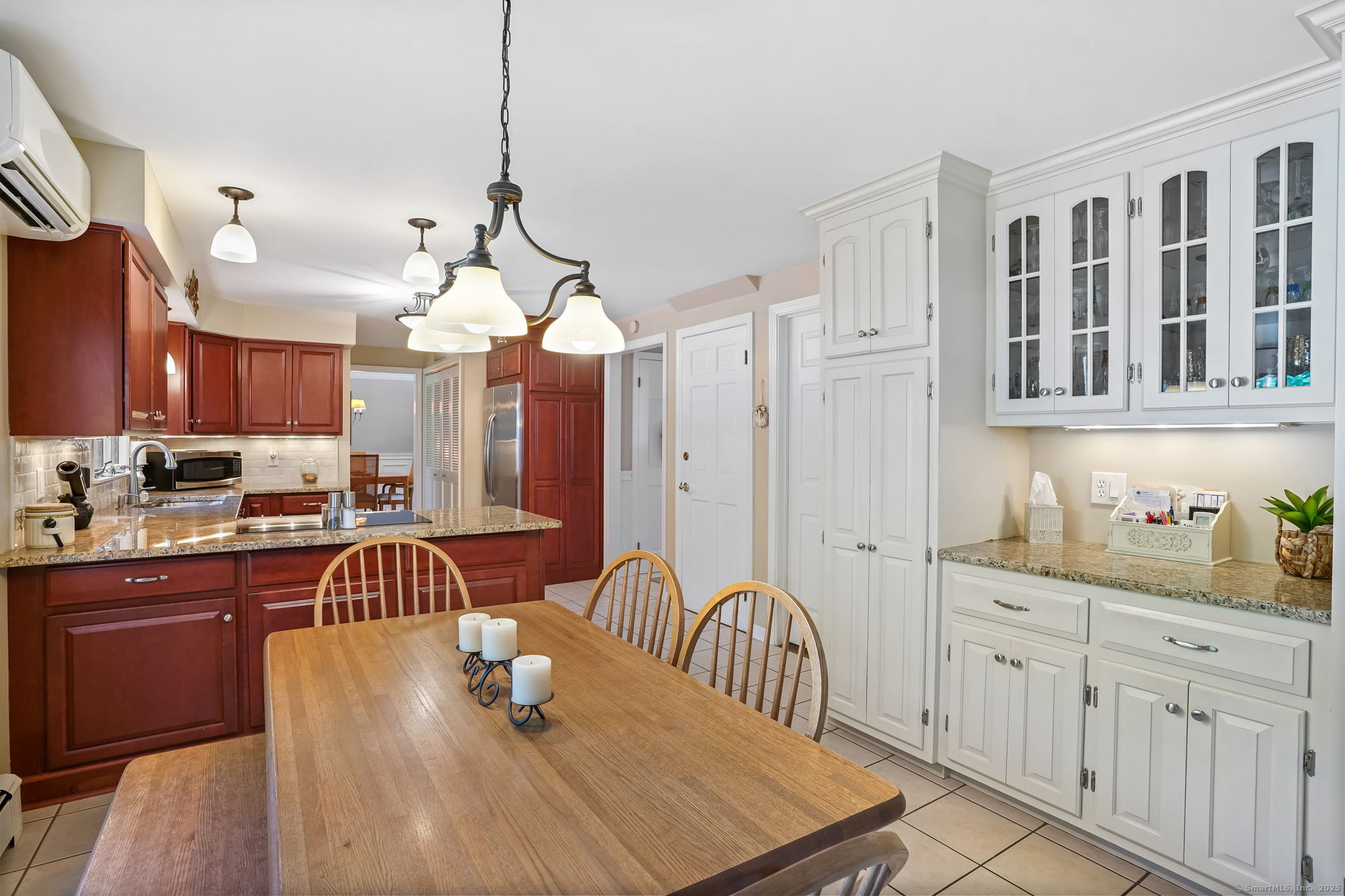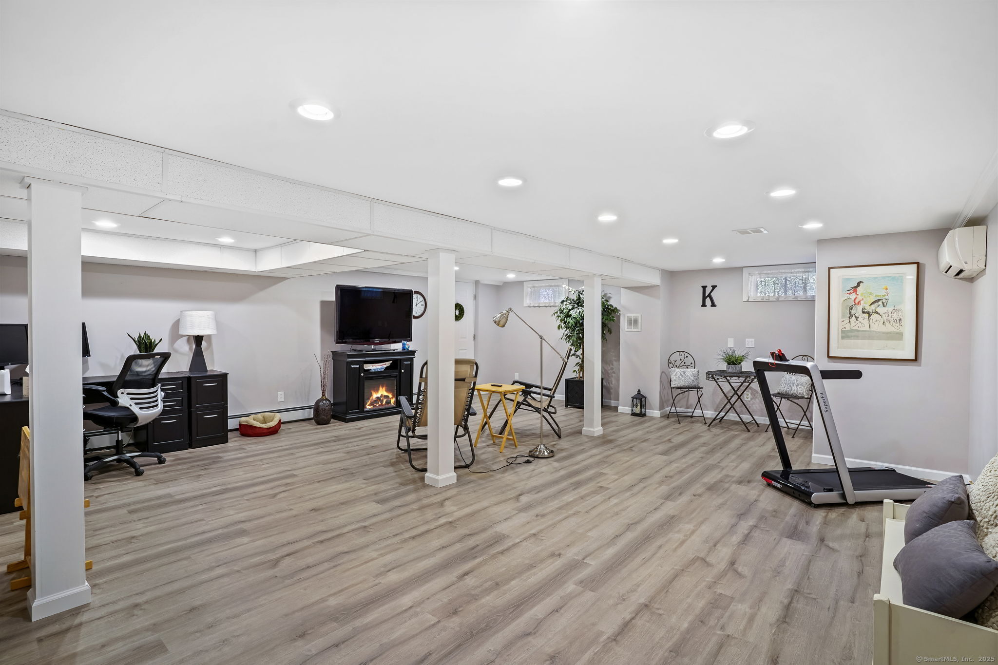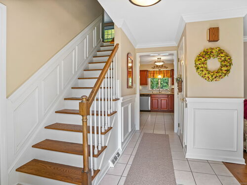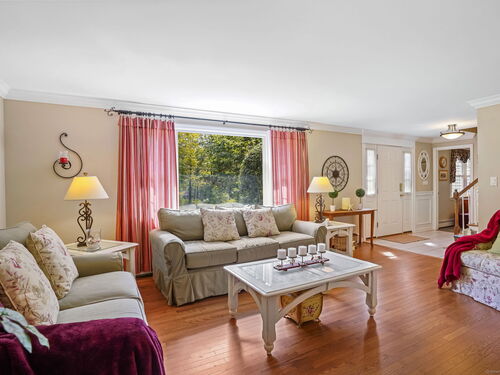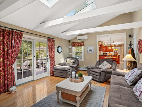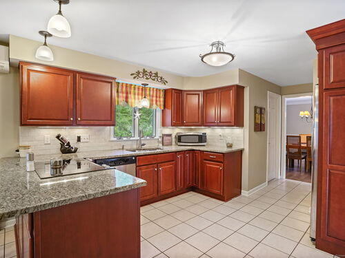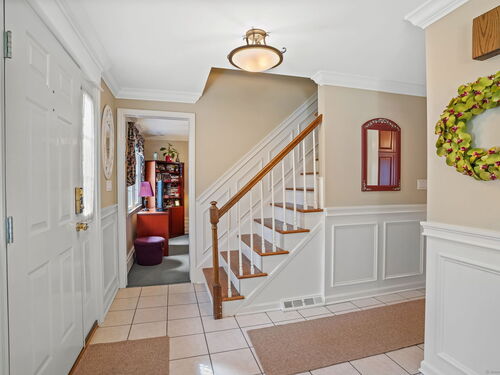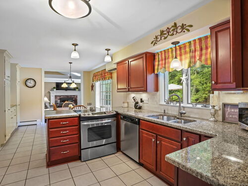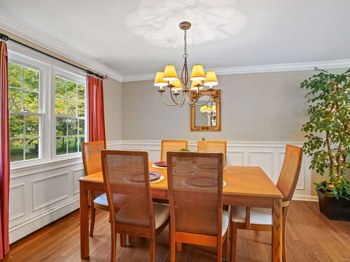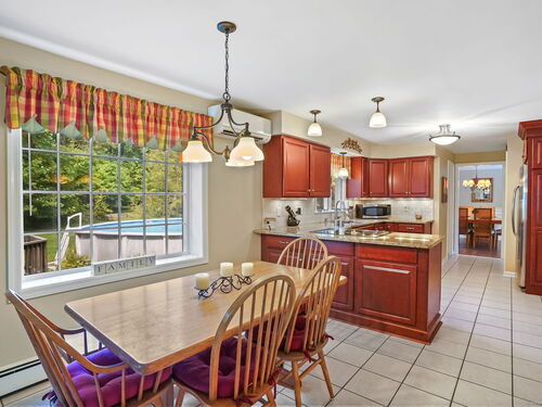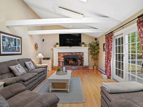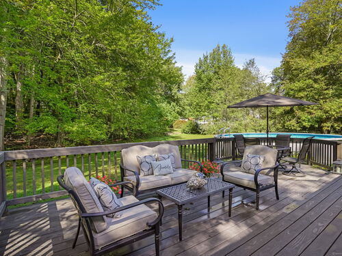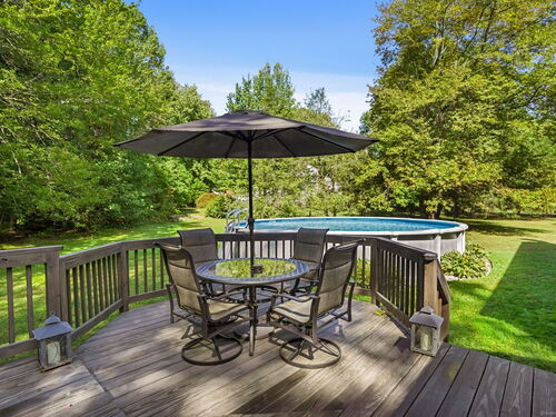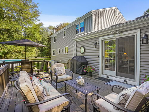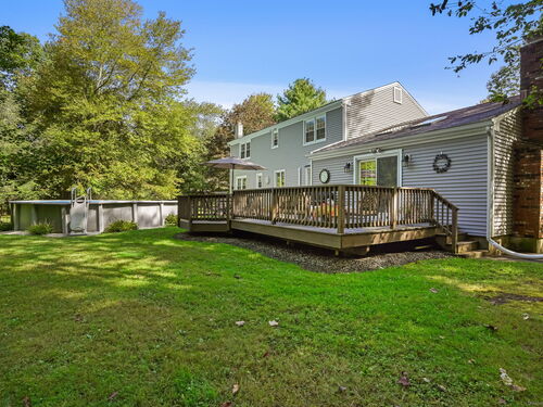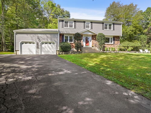 This classic colonial is set on a quaint street in one of Trumbull's most desirable neighborhoods. Offering over 2,300 square feet above grade with 4 bedrooms and 2.5 baths, this home blends comfort, space, and convenience. The exterior features timeless vinyl clapboard siding accented with a brick facade, while the flat one-acre backyard provides a private retreat with a refinished deck and above-ground pool. Inside, the first floor is filled with natural light and hardwood floors that run through most rooms. The living and dining rooms connect seamlessly, creating an ideal flow for gatherings. The eat-in kitchen is finished with granite countertops, ample cabinet storage, and additional built-in pantry space, perfectly situated next to the step-down family room with vaulted ceilings, skylights, a fireplace, and sliders to the deck. A powder room, laundry area, and a versatile room currently serving as a home office complete the main level. Upstairs, the spacious primary suite features abundant closet space and a private full bathroom. Three additional well-sized bedrooms share a separate full hall bathroom, offering comfort and convenience. The finished lower level adds approximately 500 square feet of living space, featuring high ceilings and durable vinyl flooring, ideal for a recreation room, gym, or media space. With its serene setting, thoughtful layout, and central location close to all Trumbull amenities, this home is ready to welcome a new owner.