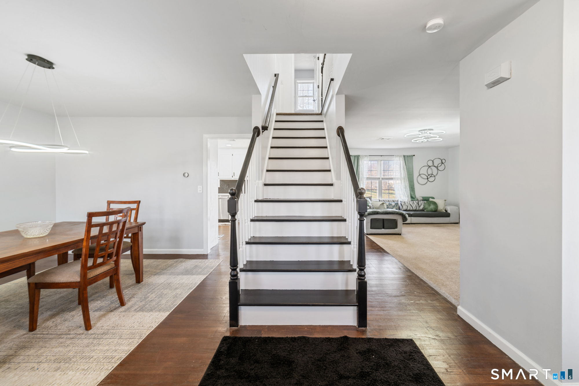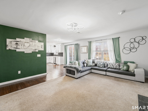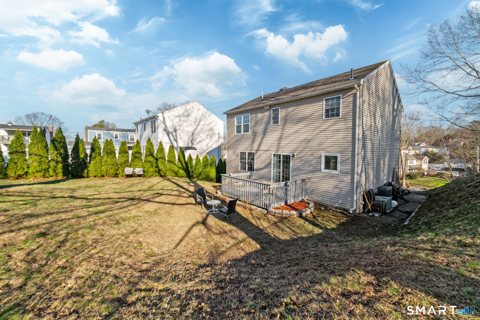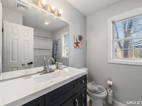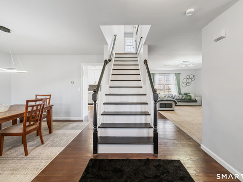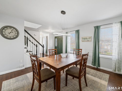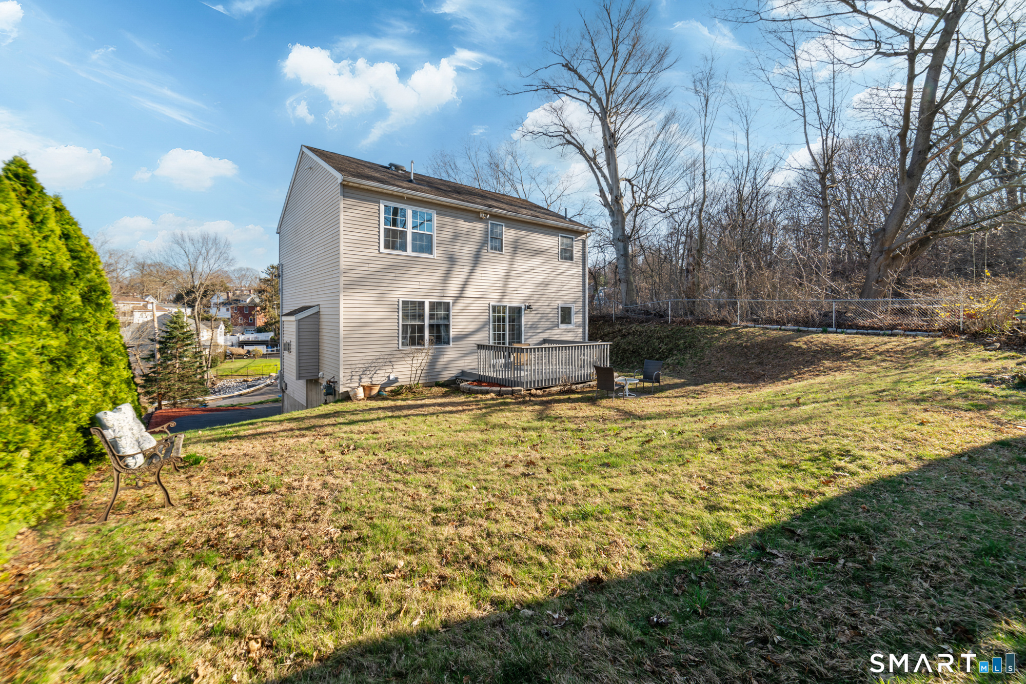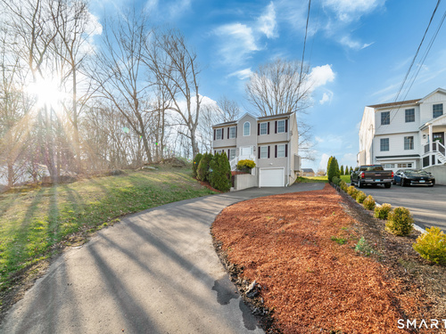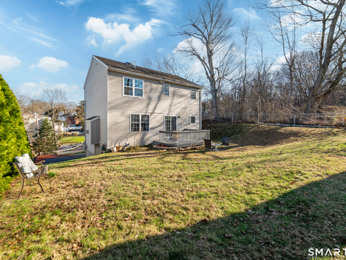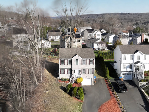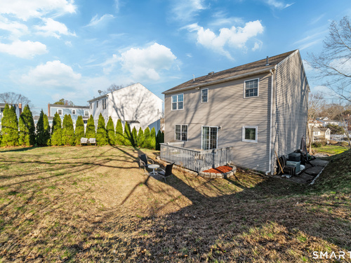Location! This spacious center hall Colonial features an updated kitchen with quartz countertops, opening to a cozy living room with a fireplace and a dining room, plus sliders leading to a deck overlooking the backyard. A half bath completes the main level. Upstairs offers a spacious primary suite with cathedral ceilings, a walk-in closet, and an en-suite bath, along with two additional bedrooms and a full bath. The updated, partially finished lower level includes a laundry area and flexible living space, offering endless possibilities. Additional highlights include gleaming hardwood floors, central air, natural gas heat, public utilities, and a garage. Prime location near Route 8, Route 108, and Route 110-just minutes from shopping, dining, and everyday conveniences!