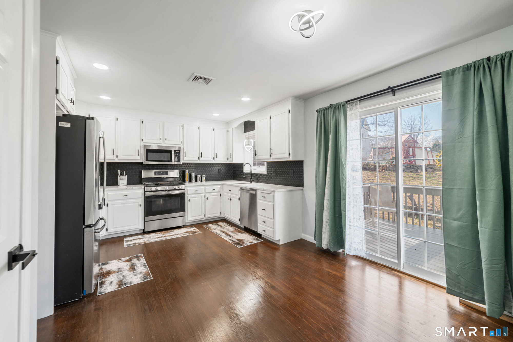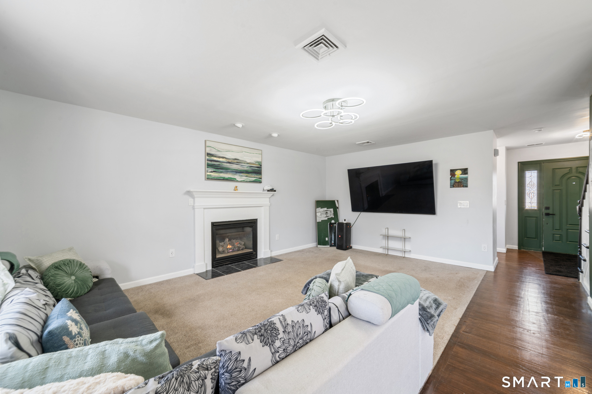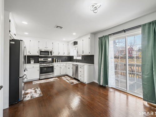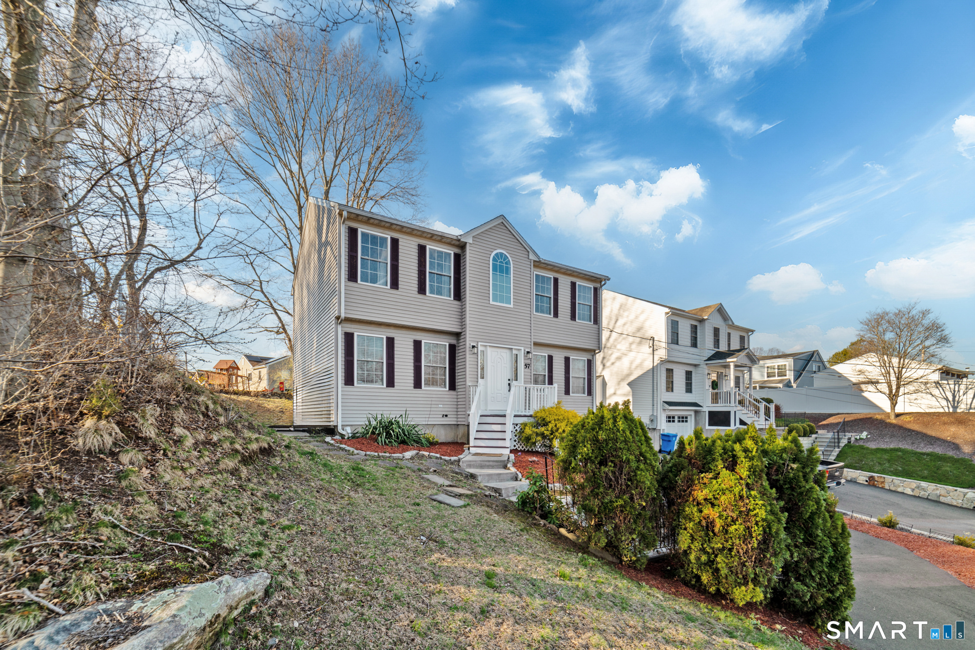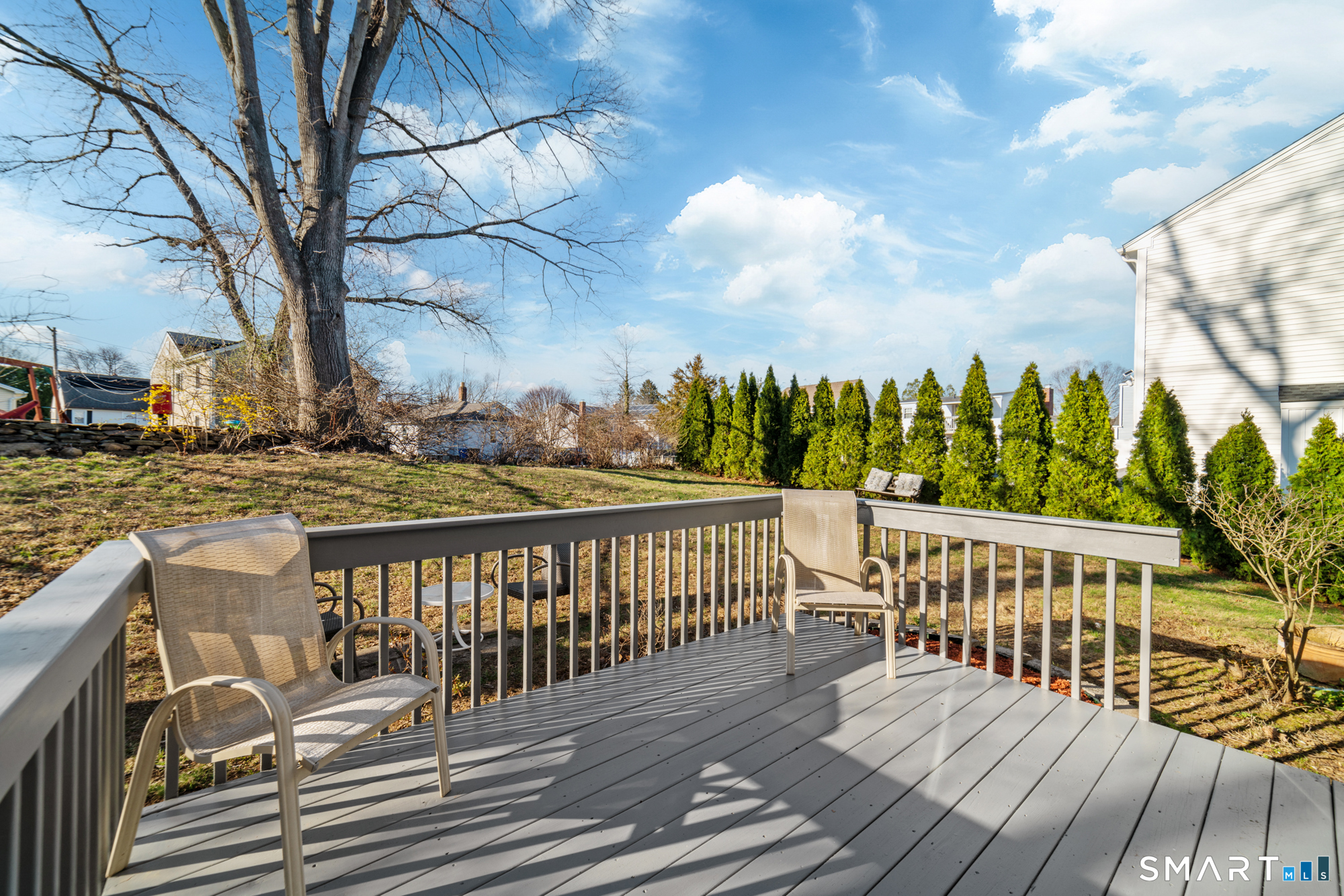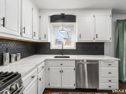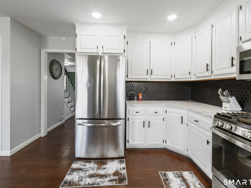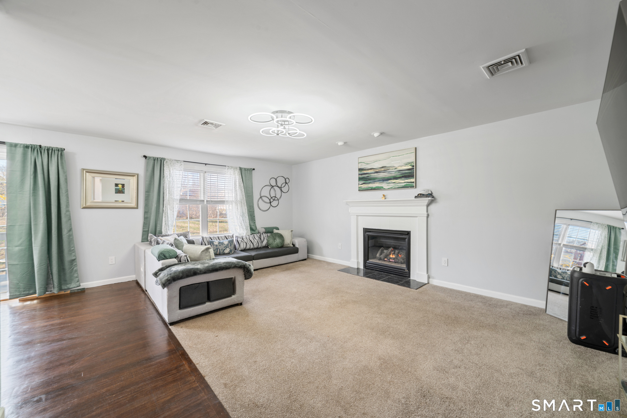Location! This spacious center hall Colonial features an updated kitchen with quartz countertops, opening to a cozy living room with a fireplace and a dining room, plus sliders leading to a deck overlooking the backyard. A half bath completes the main level. Upstairs offers a spacious primary suite with cathedral ceilings, a walk-in closet, and an en-suite bath, along with two additional bedrooms and a full bath. The updated, partially finished lower level includes a laundry area and flexible living space, offering endless possibilities. Additional highlights include gleaming hardwood floors, central air, natural gas heat, public utilities, and a garage. Prime location near Route 8, Route 108, and Route 110-just minutes from shopping, dining, and everyday conveniences!