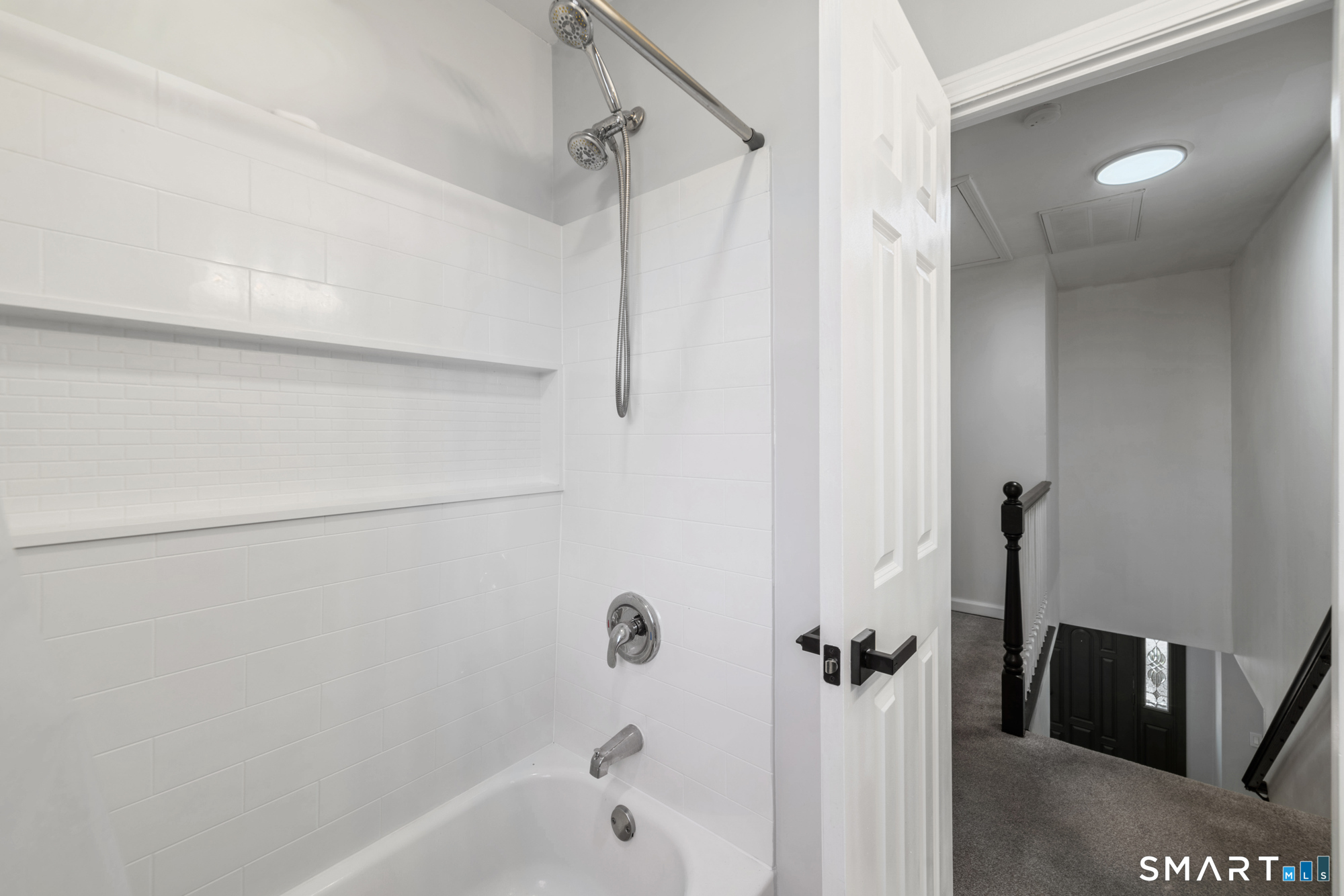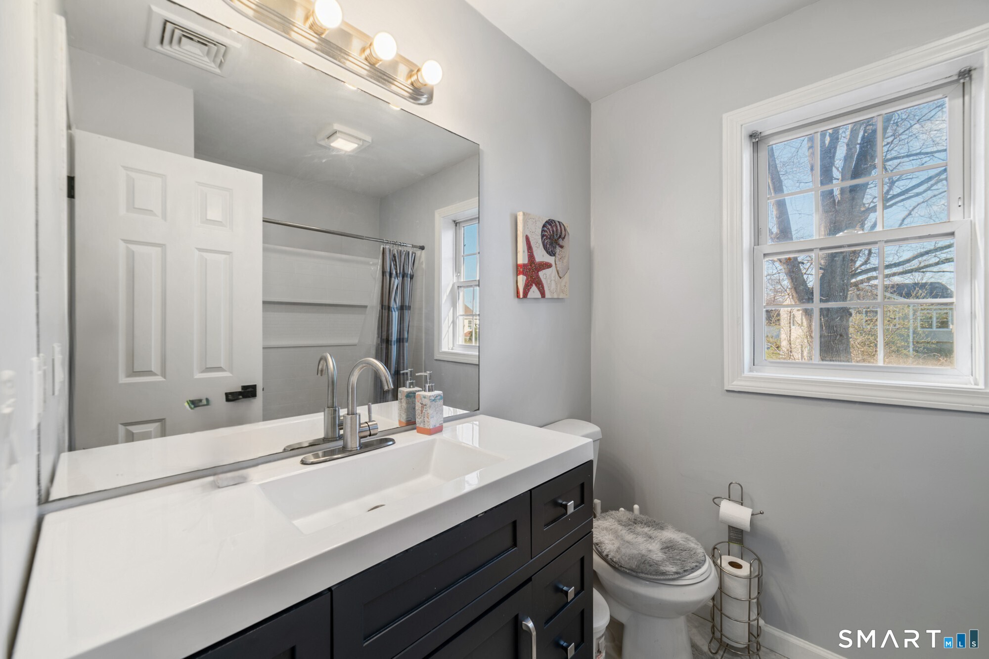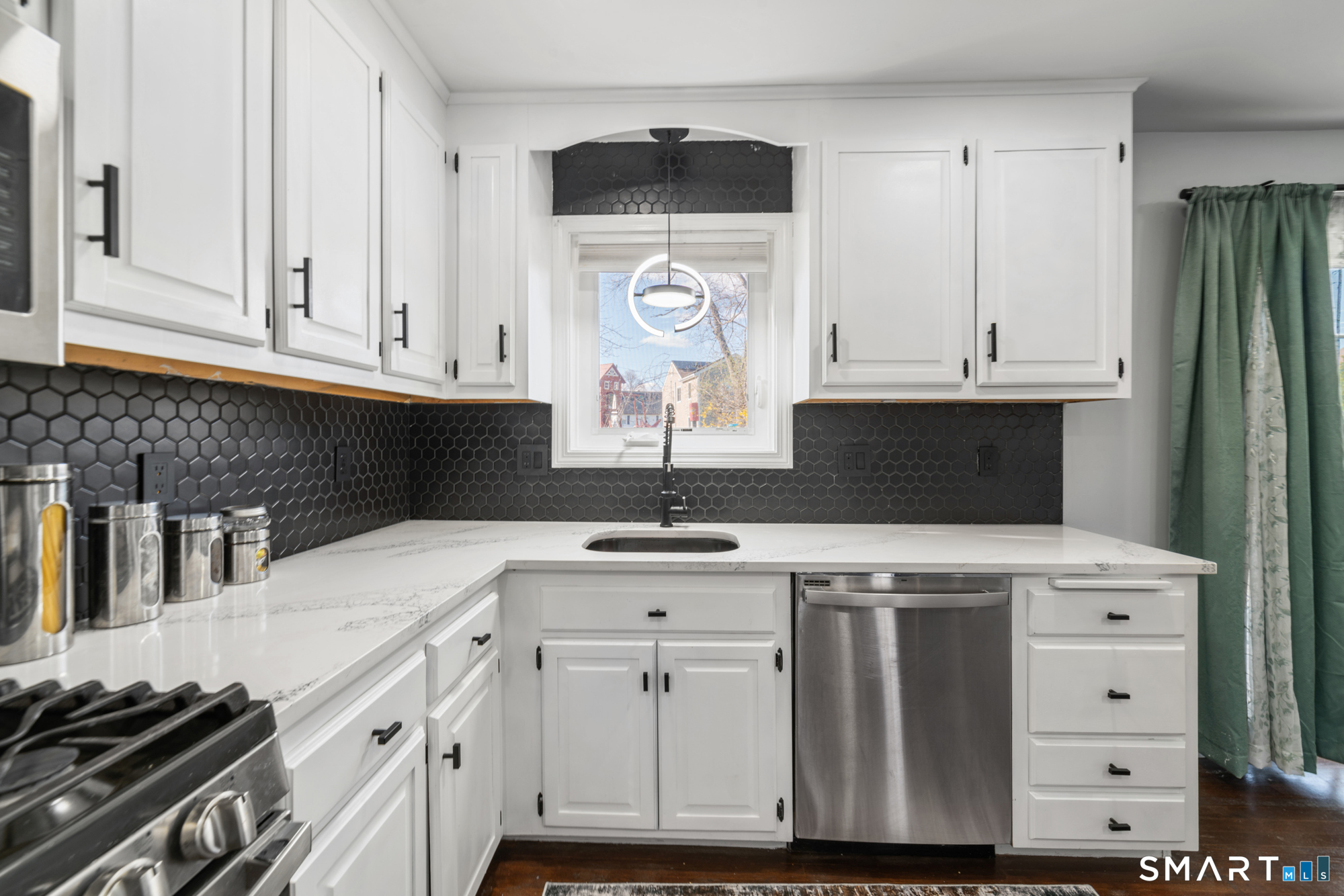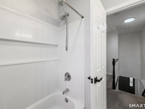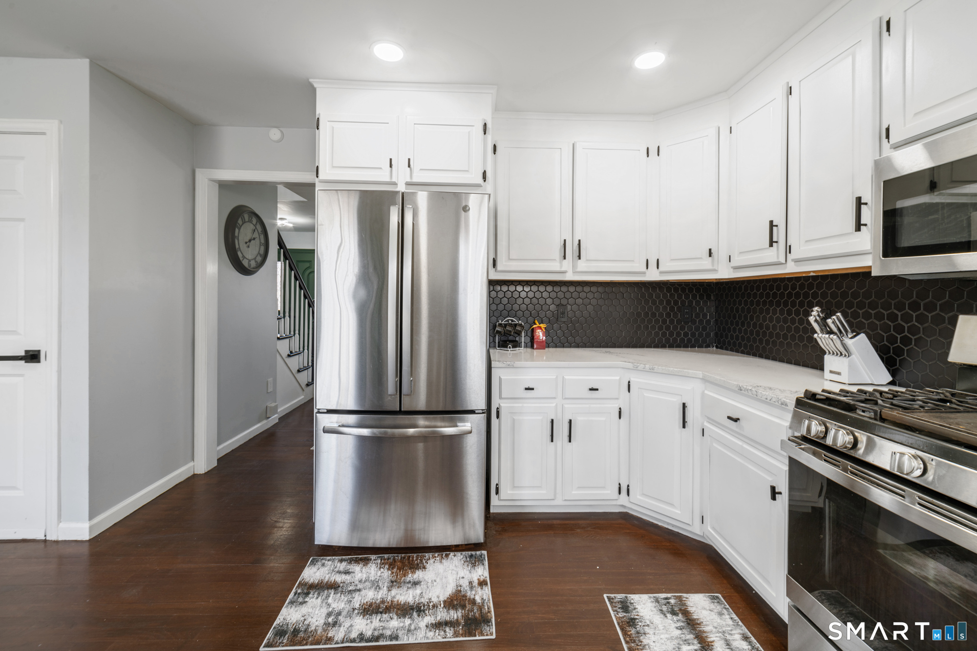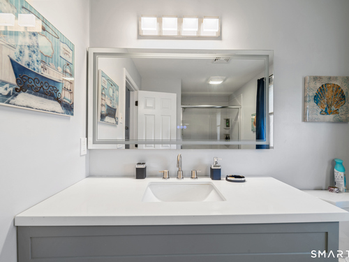 Location! This spacious center hall Colonial features an updated kitchen with quartz countertops, opening to a cozy living room with a fireplace and a dining room, plus sliders leading to a deck overlooking the backyard. A half bath completes the main level. Upstairs offers a spacious primary suite with cathedral ceilings, a walk-in closet, and an en-suite bath, along with two additional bedrooms and a full bath. The updated, partially finished lower level includes a laundry area and flexible living space, offering endless possibilities. Additional highlights include gleaming hardwood floors, central air, natural gas heat, public utilities, and a garage. Prime location near Route 8, Route 108, and Route 110-just minutes from shopping, dining, and everyday conveniences!