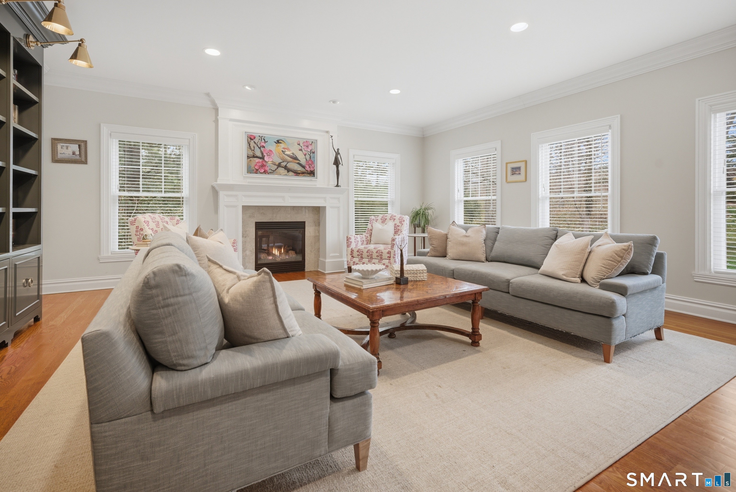 Family Room (Main Level)9 ft+ Ceilings, Book Shelves, Built-Ins, Gas Log Fireplace, Hardwood Floor