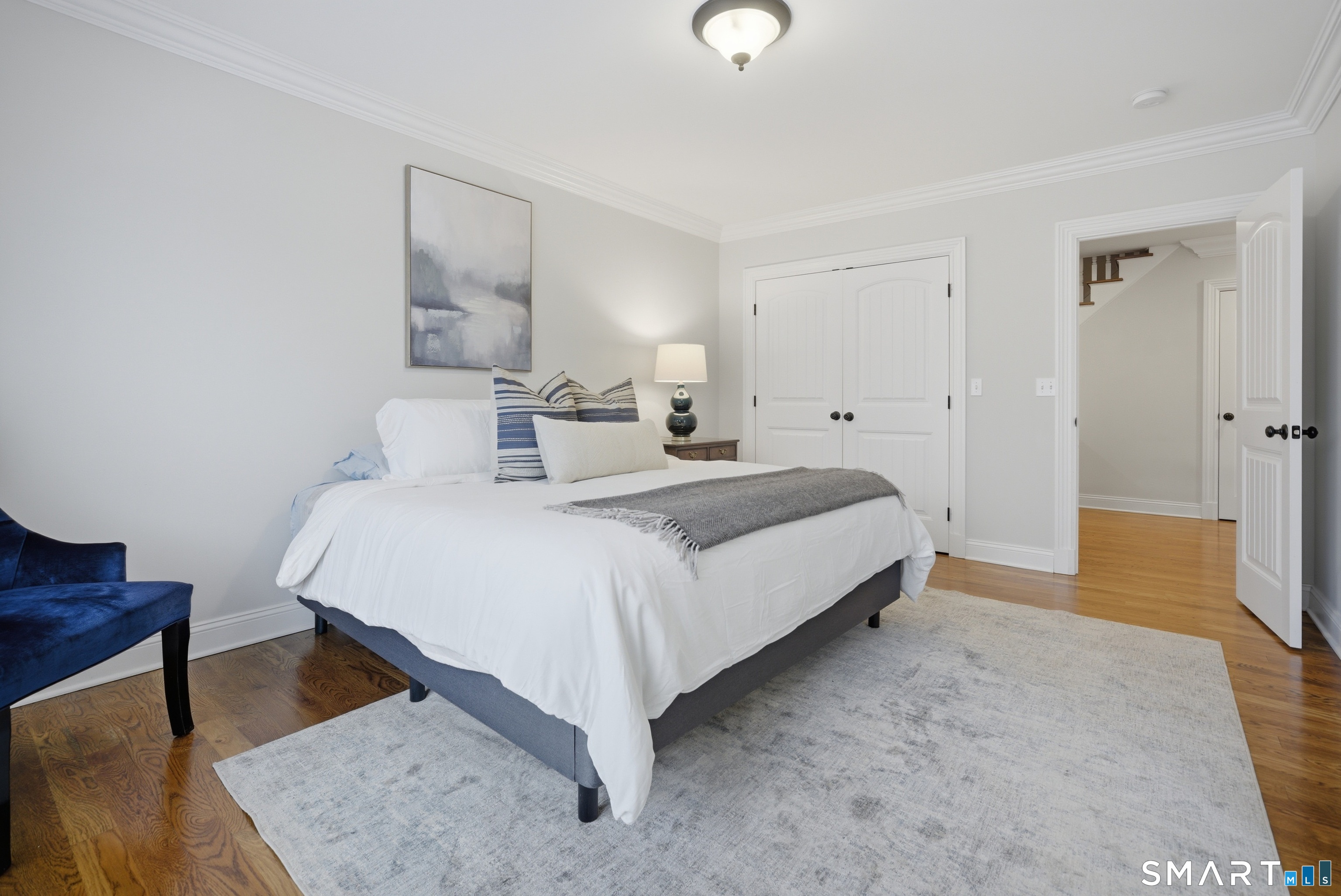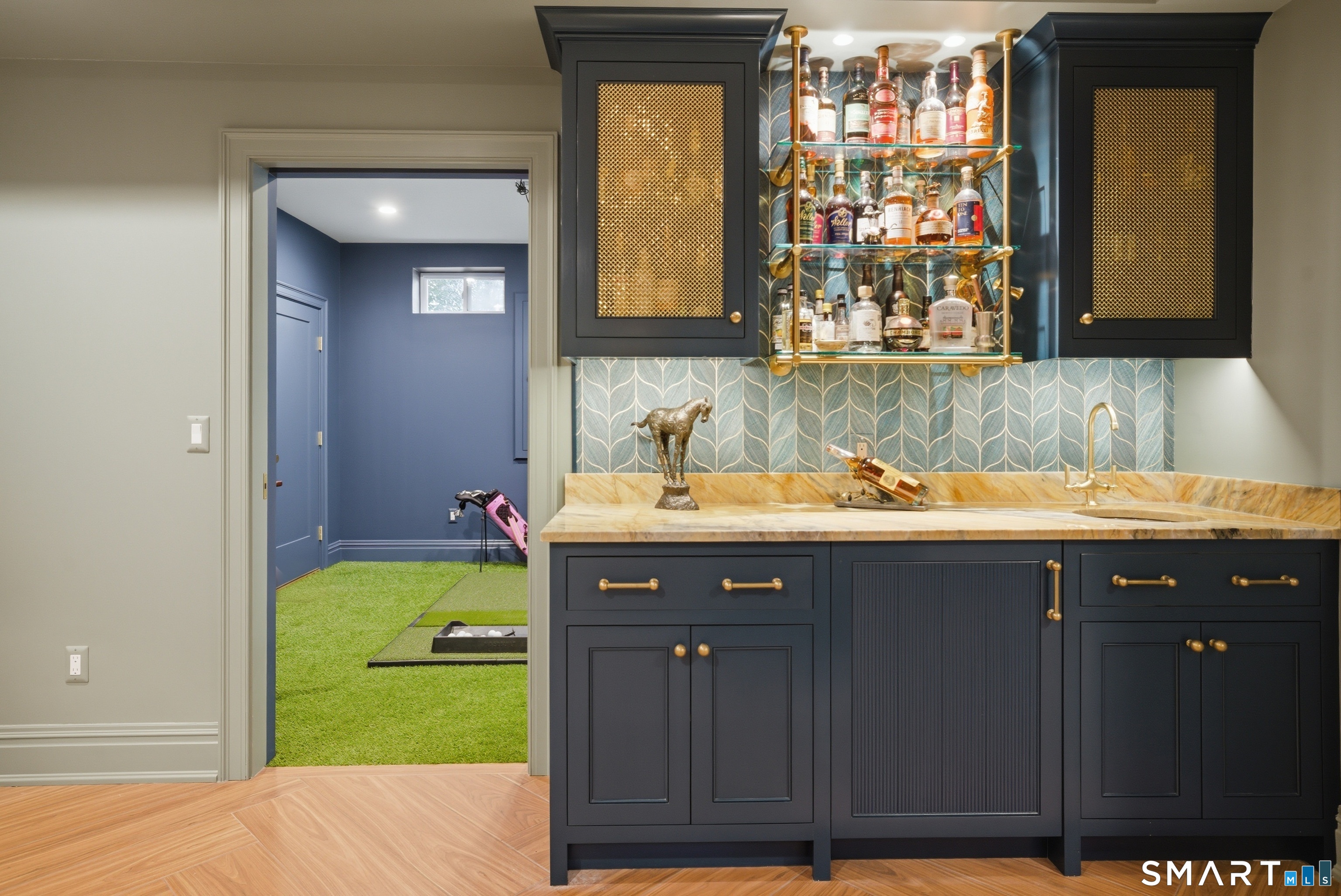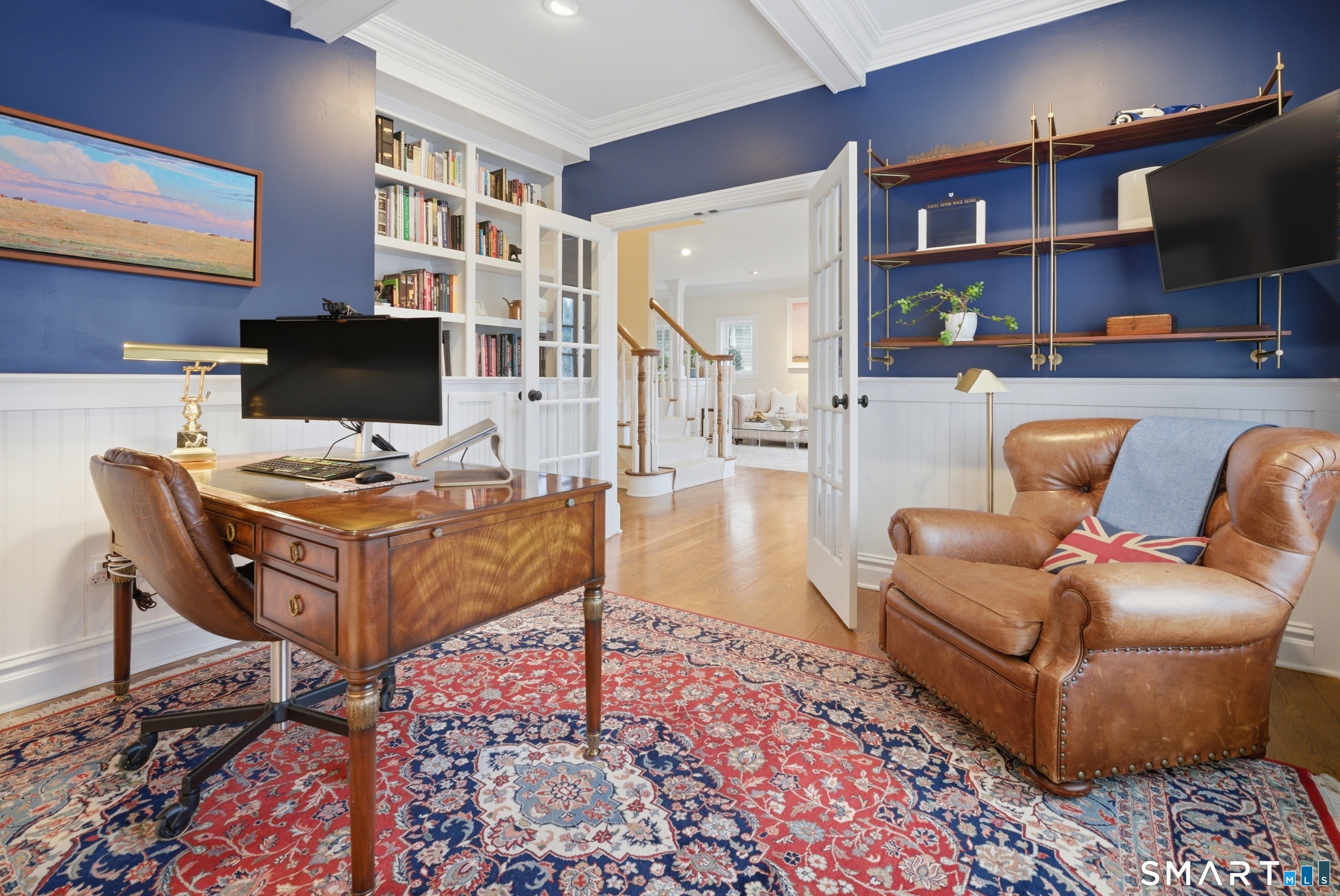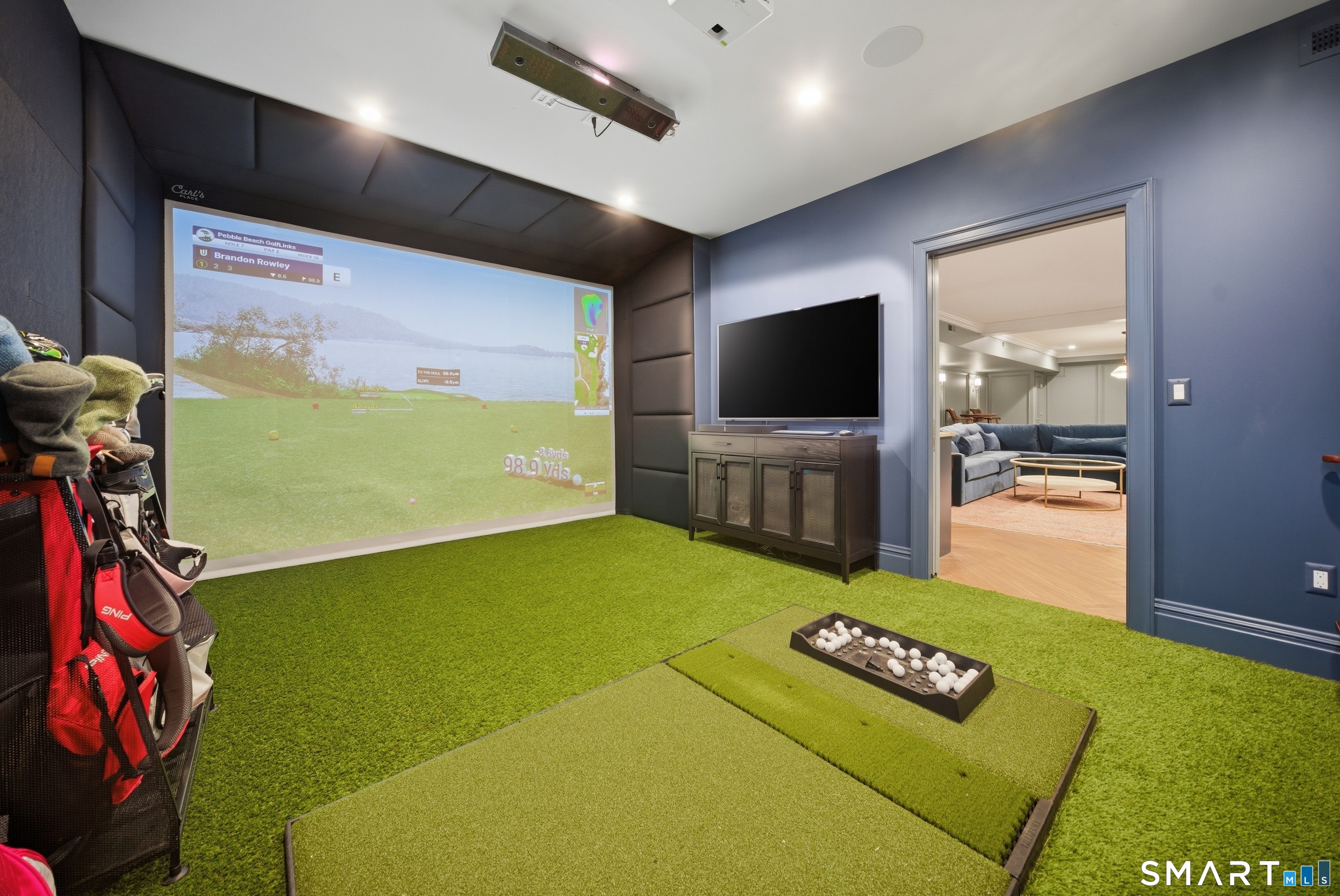 Rare newer construction in one of Fairfield's most desirable walk-to-town neighborhoods. Built in 2012, this exceptional 4 bedroom, 4.5 bath Colonial offers a thoughtfully designed open layout, beautiful millwork, & a spectacular, newly completed luxury lower level designed for recreation & entertaining. The main level features hardwood floors throughout & comfortable, well-proportioned living spaces. The kitchen with eat-in dining area flows naturally into the family room w/ custom built-ins & a gas fireplace, creating an inviting setting for daily living & entertaining. A formal living room, dining room & private home office w/ coffered ceilings provide flexible space for work or relaxation. A powder room & direct access to the two-car garage complete the first floor. Upstairs, the primary suite includes a gas fireplace, en-suite bath, expansive walk in closet & an adjoining bonus room that may serve as a nursery, home office, or potential 5th bedroom. Three additional bedrooms include one en suite, while the other two share a hall bath. A second-floor laundry room adds convenience to everyday living. The exceptional newly finished lower level by Domus Construction is designed as a true lifestyle retreat. Features include a spacious great room w/ a custom walnut entertainment wall, a wet bar w/ marble countertops & custom cabinetry, a dedicated golf simulator room, a gym w/ sauna, & a full bath.
