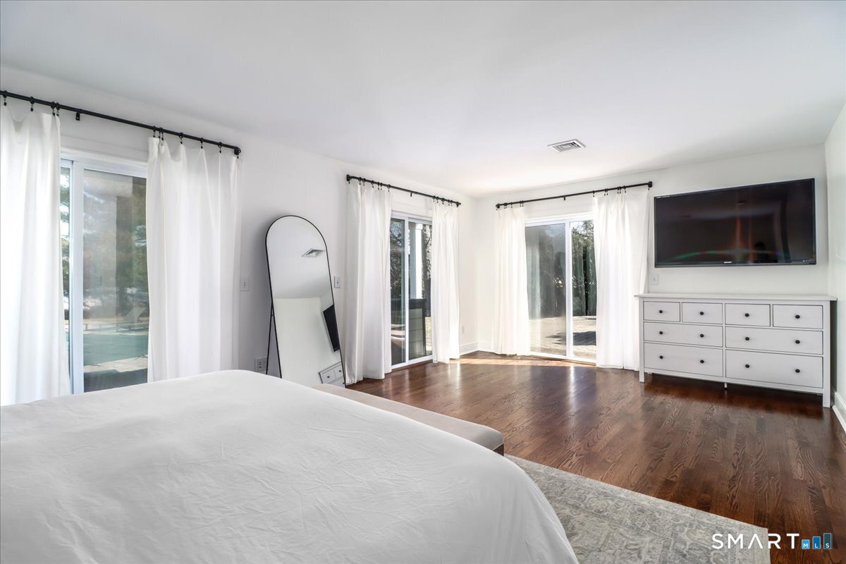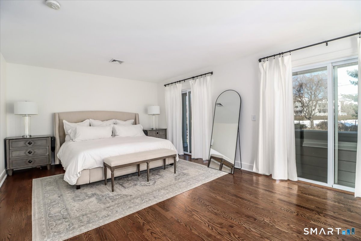 Primary Br Suite (Main Level)Remodeled, Balcony/Deck, Full Bath, Hardwood Floor