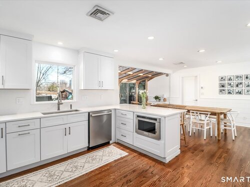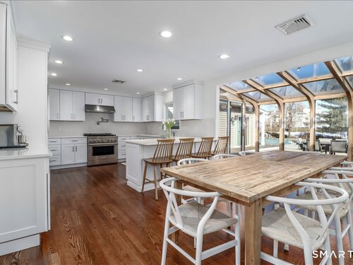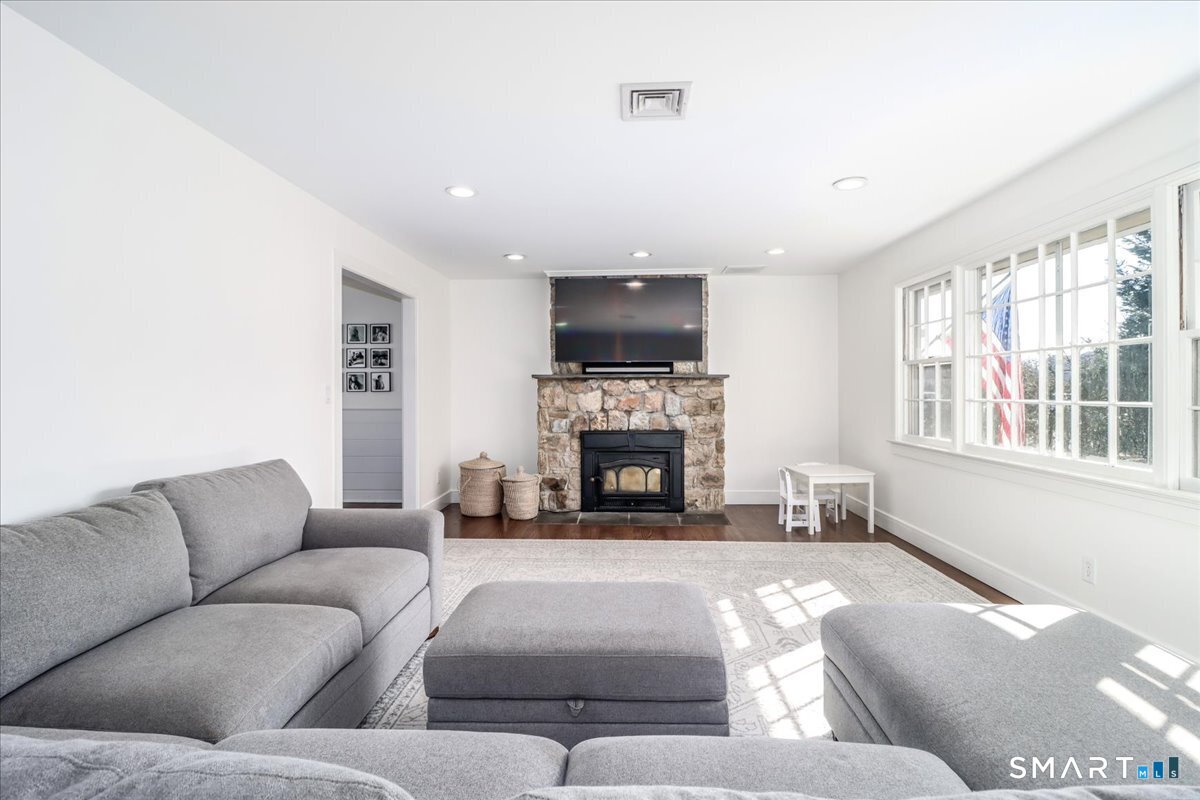 Turn-Key Living in Davenport Point Welcome to 58 Davenport Drive, 4-bedroom, 2.5-bath home located in the highly sought-after Davenport Point Association, a private waterfront neighborhood with private roads and private docks offering convenient access to Long Island Sound. The stunning kitchen, thoughtfully designed with quartz countertops and matching backsplash, large peninsula with seating that opens to the dining area. The kitchen is equipped with Thermador built-in refrigerator, 6-burner gas range, and Bosch dishwasher. The kitchen flows seamlessly into the dining area and sunroom, creating a space ideal for everyday living and entertaining with views of the backyard and pool. The spacious primary suite serves as a true retreat, featuring sliders to the patio with steps to the pool, along with a large walk-in closet, laundry area, and a well-appointed ensuite bathroom. The outdoor space is a standout feature, with a private backyard featuring a saltwater gunite pool and spa, complemented by a new pool patio completed last summer. The pool equipment has been updated with a sand filter, saltwater generator, and a gas pool and spa heater that heats quickly! New roof and gutters, hardwood flooring throughout, and thoughtful updates, making the home truly turn-key. Davenport Point offers a strong sense of community and private waterfront access, with neighborhood gatherings and seasonal events.