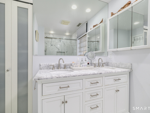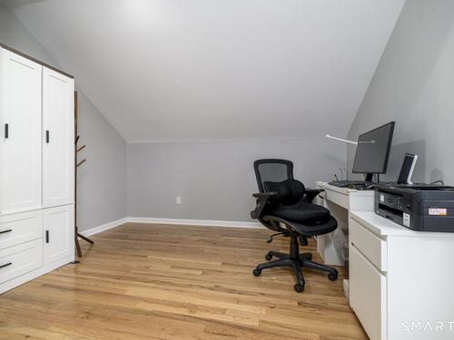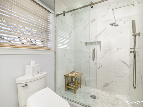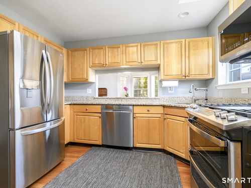 Set within the desirable Glen Arthur Estates community in Stamford's Glenbrook neighborhood, this detached Colonial-style condominium offers a wonderful blend of comfort, space, and convenience. This cheerful and well-maintained home features inviting sun-filled living spaces with hardwood floors throughout both the first and second levels. The living room includes a gas fireplace and a striking Palladian window, while the eat-in kitchen is enhanced by a vaulted ceiling and skylight. Upstairs, the home offers three bedrooms and two full baths, all complemented by hardwood flooring. The finished lower level provides flexible space for a family room, home office, guest area, or additional living needs. Outside, enjoy a private patio and a beautifully landscaped garden setting, ideal for relaxing, entertaining, or outdoor dining. Perfectly positioned near shopping, restaurants, public transportation, and bus lines, and within walking distance to the Glenbrook railroad station with easy access to I-95 and the Merritt Parkway, this home offers both neighborhood charm and commuter-friendly convenience. Recent improvements over the past five years include: new roof, window replacement, new A/C compressor, new boiler and hot water tank, installation of hardwood flooring on the second level, remodeled primary bathroom, all new kitchen appliances, new washer and dryer, mature backyard garden, mature front yard garden, and an underground sprinkler and drip irrigation system.