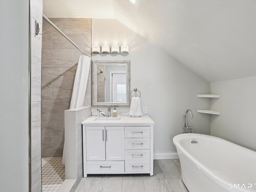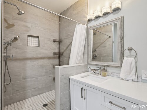 Great Split level on corner Lot with Open floor plan. Large Living Room/Dining Room, Large New Kitchen, Sliders to Deck, 2 Large Bedrooms, Full Bathroom, Office, Primary Suite with Full Bathroom w/ Freestanding Tub & Walk in closet, Den with Full Bath & Door to yard. Large Basement with Laundry area & Storage . Whole house rebuilt in 2021 all new mechanical Move in condition.