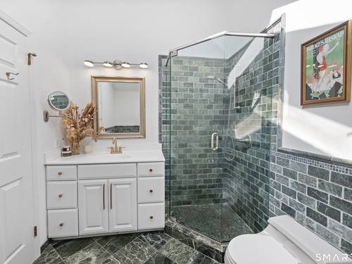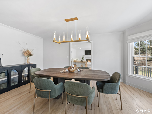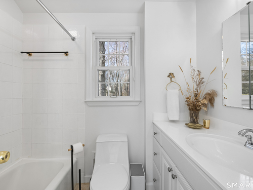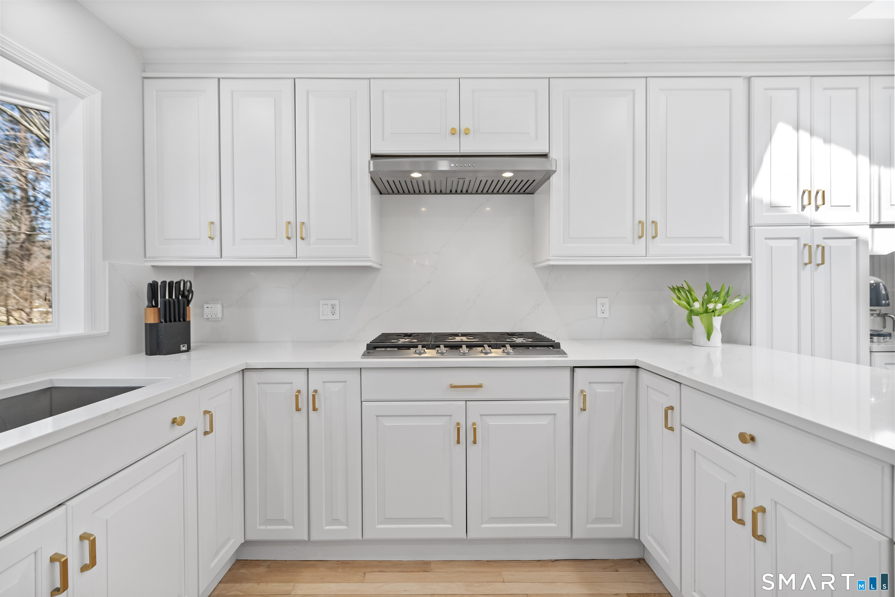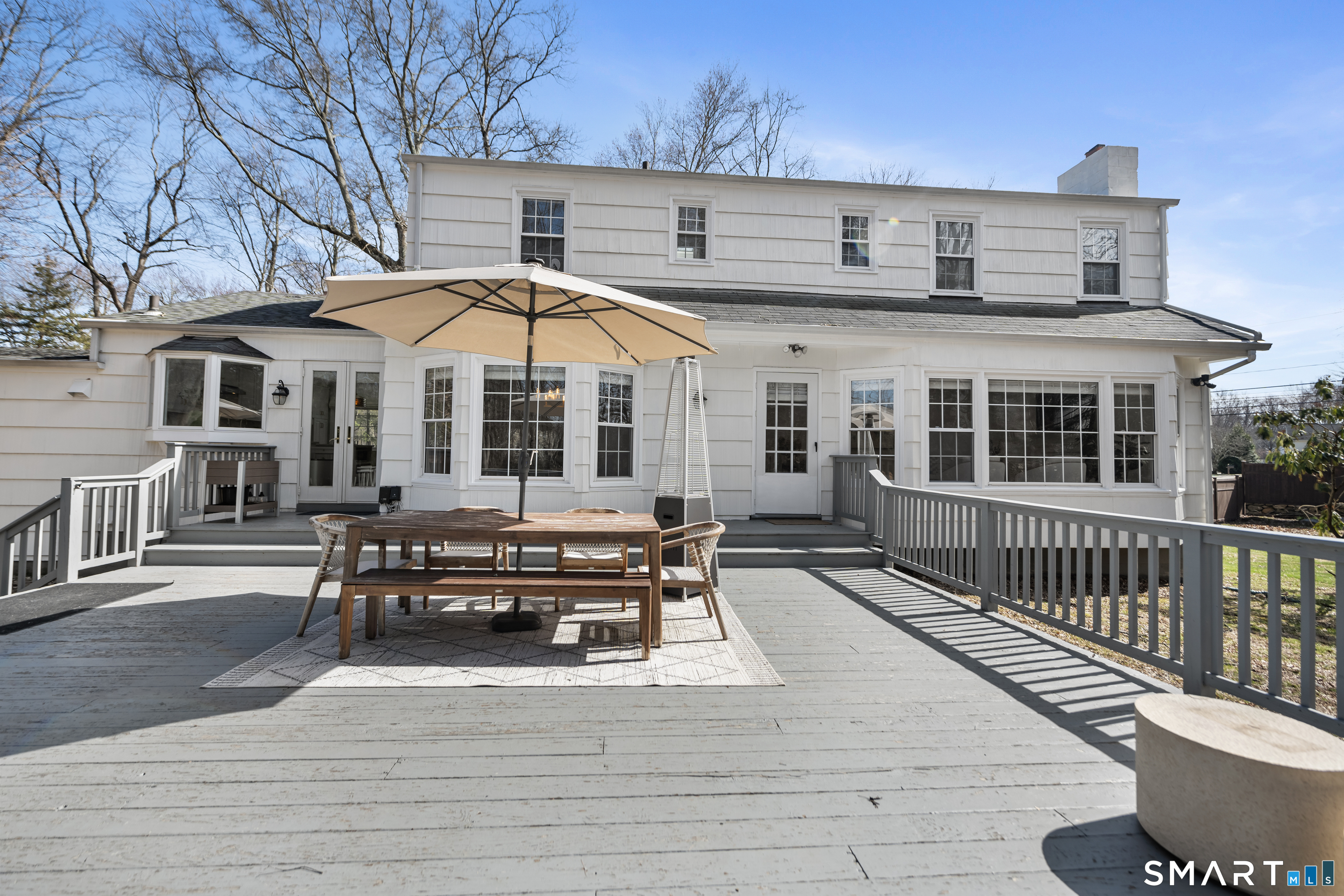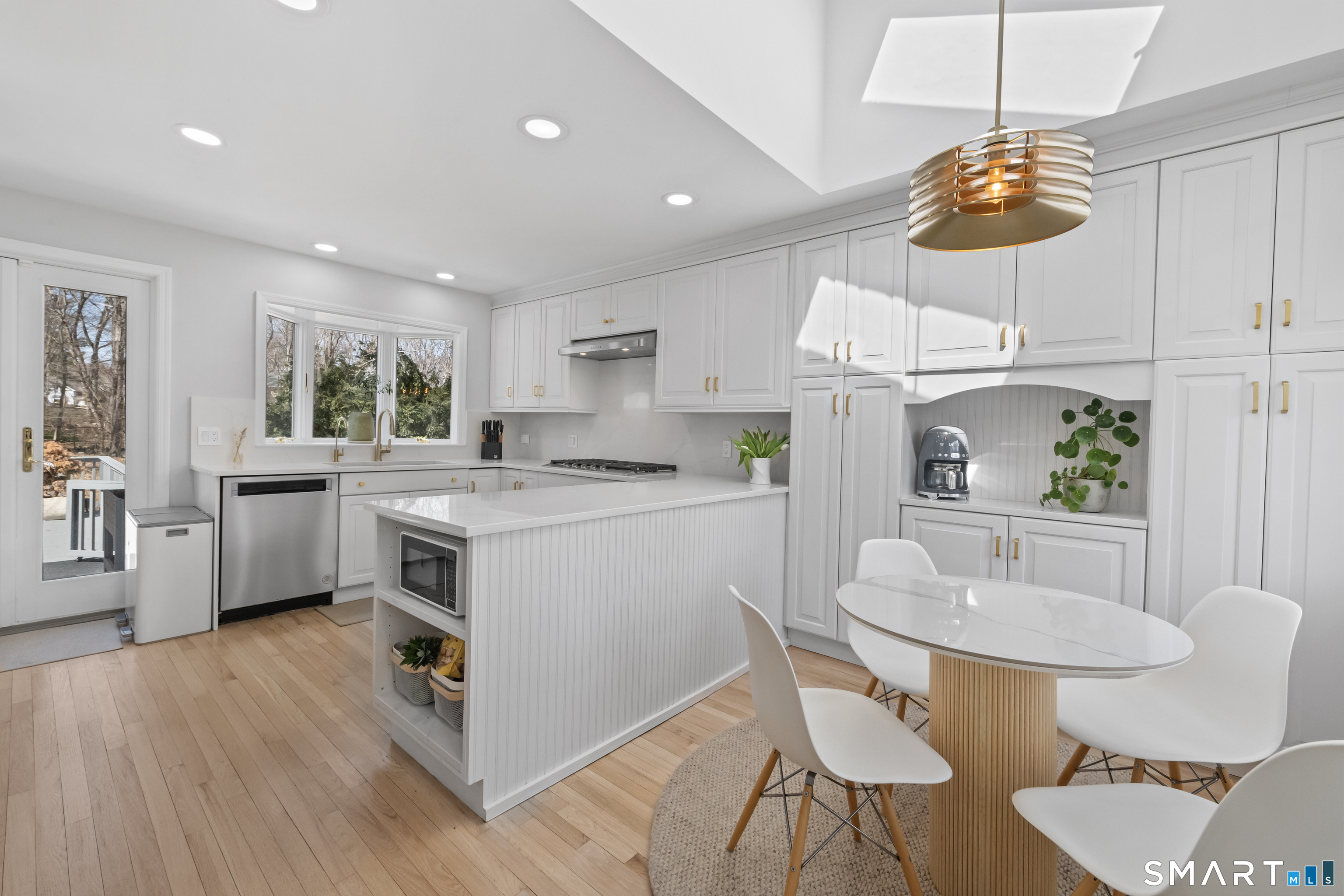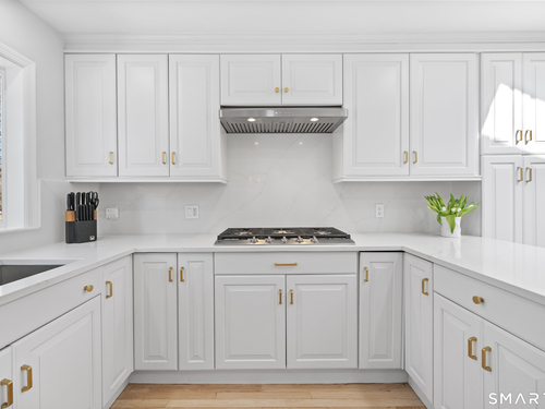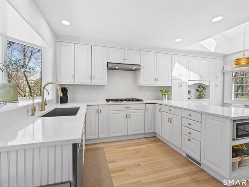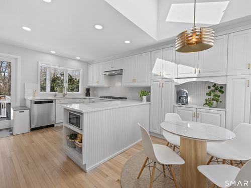 Turnkey and fully updated 4-bedroom, 2.5-bath Colonial Split on a quiet cul-de-sac in a highly convenient Stamford location. Offering approximately 2,877 sq ft, the home features a comfortable layout with a fireplace and French doors opening to a large deck and private backyard. The updated kitchen includes new countertops, refreshed cabinetry, stainless steel appliances, and a gas range, with great natural light throughout. Refinished hardwood floors and recessed lighting add a clean, updated feel. The flexible lower level works well as a family room, gym, or game room. Flat, fenced yard with updated landscaping. Enjoy easy access to the Merritt Parkway, Trader Joe's, shopping, dining, and everyday essentials.