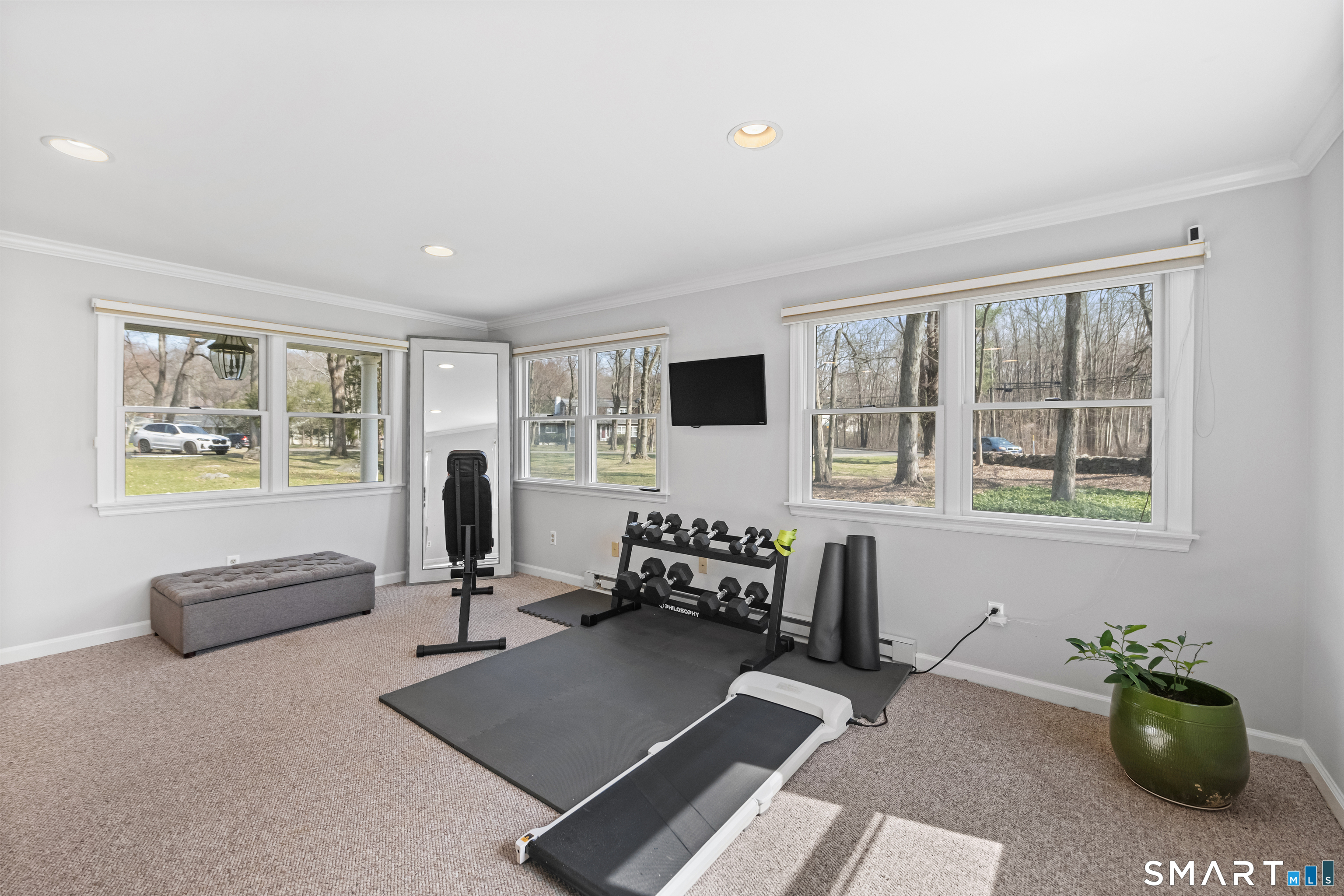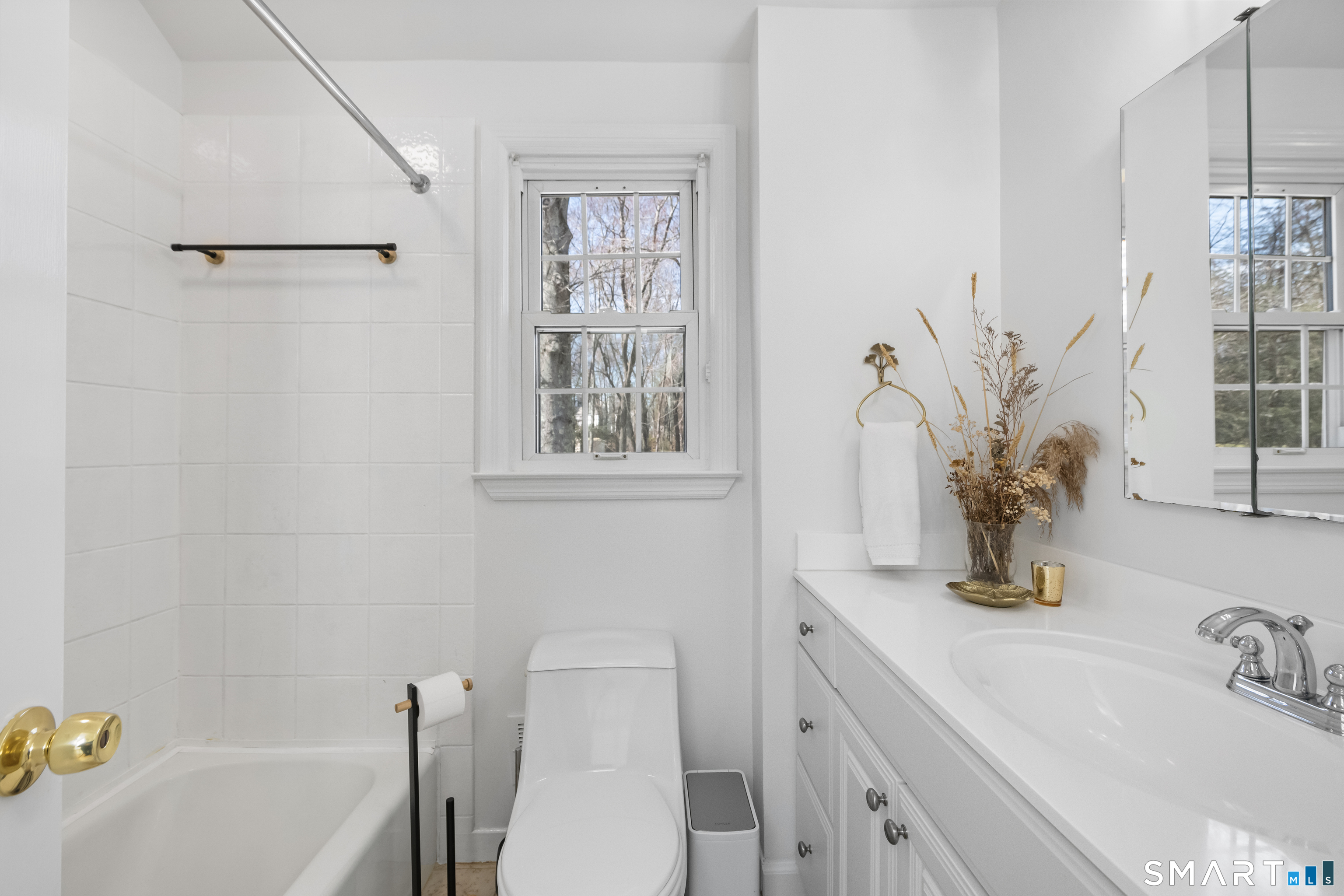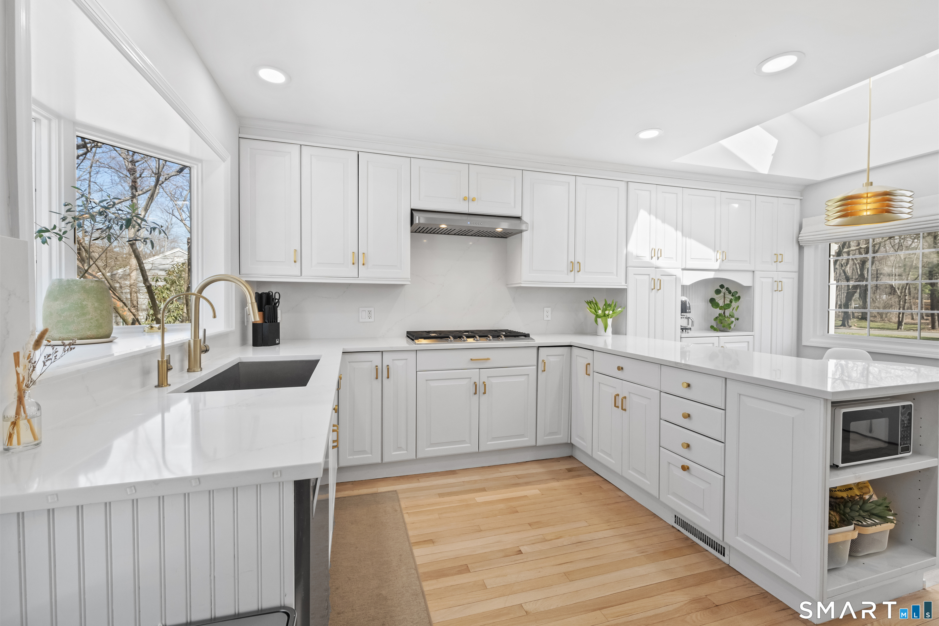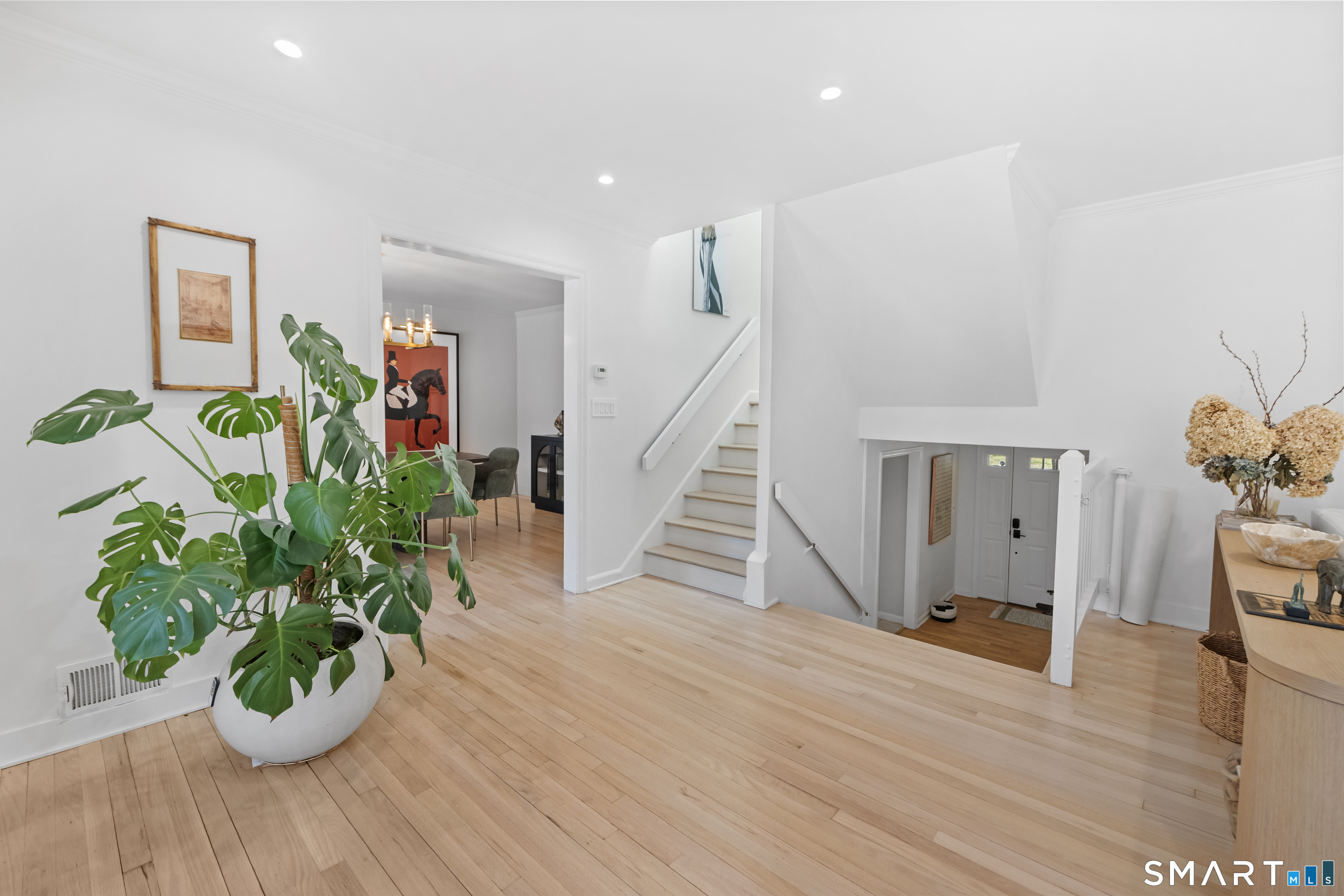 Turnkey and fully updated 4-bedroom, 2.5-bath Colonial Split on a quiet cul-de-sac in a highly convenient Stamford location. Offering approximately 2,877 sq ft, the home features a comfortable layout with a fireplace and French doors opening to a large deck and private backyard. The updated kitchen includes new countertops, refreshed cabinetry, stainless steel appliances, and a gas range, with great natural light throughout. Refinished hardwood floors and recessed lighting add a clean, updated feel. The flexible lower level works well as a family room, gym, or game room. Flat, fenced yard with updated landscaping. Enjoy easy access to the Merritt Parkway, Trader Joe's, shopping, dining, and everyday essentials.