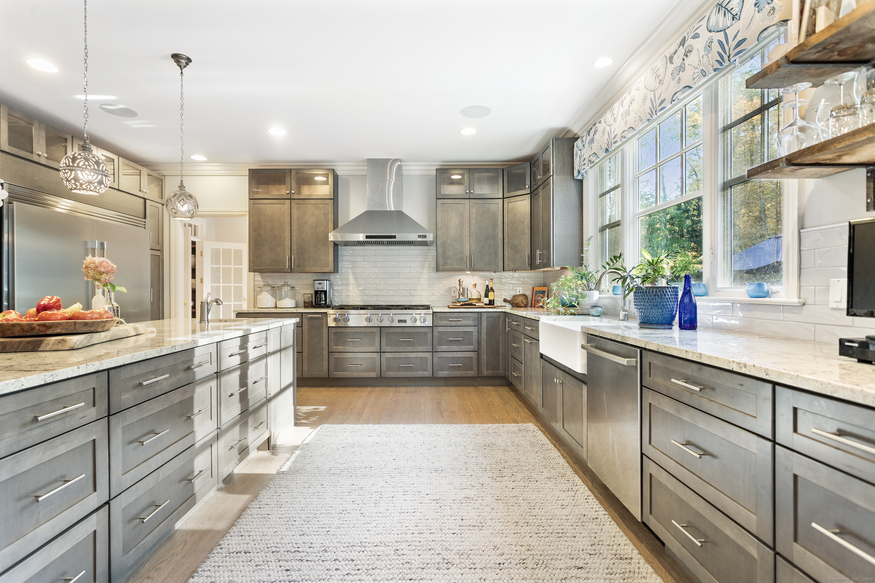 Welcome to this Modern Colonial, a sanctuary where luxury, comfort & tranquility converge on a premier cul-de-sac, conveniently located to the Merritt Parkway, Weston Center & the campus of award-winning schools and downtown Westport plus beaches. With 5 BRs plus a potential 6th BR/au-pair or in-law suite, this refined retreat offers elegant living & impressive entertaining. The newly reimagined kitchen is a showpiece of style & substance: a spacious island anchors the room, surrounded by premier appliances & abundant storage, all beautifully designed, expertly equipped, and ready for every occasion. Host unforgettable dinners in the formal DR w/gas fireplace, then relax in the warm, inviting fam rm w/custom stone fireplace, French doors & surround sound for movie nights. Multiple home office options include a private library/homework room with built-ins. The luxe primary suite features excellent closet space, a fireplace, spa bath w/hydro tub, shower & dual sinks. The full finished lower level offers all of the room needed so that everyone can have their space, including a game/rec rm, media rm, gym & more, plus storage rooms. Outside, enjoy vast, usable, level lawns, heated pool, sports area, basketball, climbing swing & treehouse. Wraparound porch & screened-in porch offer stunning views of both the picturesque acreage as well as the tranquil hilltop scenery. 4-car garage for the auto enthusiast.