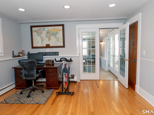 Welcome Home to this beautifully maintained and expanded Raised Ranch, perfectly set on a level and usable 1.06-acre property in a quiet, neighborhood setting. Pride of ownership is evident throughout this move-in-ready home, offering a highly functional layout designed for today's lifestyle. The main level features a bright living room and dining area, that flow seamlessly into an inviting and sun-filled kitchen. The spacious primary suite includes a full bathroom and a dedicated office. Three additional bedrooms and a full hall bath complete the upper level. The lower level adds exceptional flexibility with a large family room, full bath, additional office or playroom, and three-season room ideal for relaxing while overlooking the private backyard. A mudroom and attached two-car garage enhance everyday convenience. Outside, the property truly shines. The level, open yard is framed by mature plantings and offers a composite deck, expansive patio, firepit, and garden area, creating an ideal setting for both entertaining and quiet enjoyment. Enjoy the best of both worlds with a peaceful neighborhood location and easy access to Ridgefield's vibrant village center, top-rated schools, parks, and cultural destinations including the Ridgefield Playhouse and ACT of CT. Commuting options to lower Fairfield County, Westchester, and NYC are all within easy reach. A rare opportunity to own a turnkey home with space, flexibility, and a truly special setting. Welcome Home!