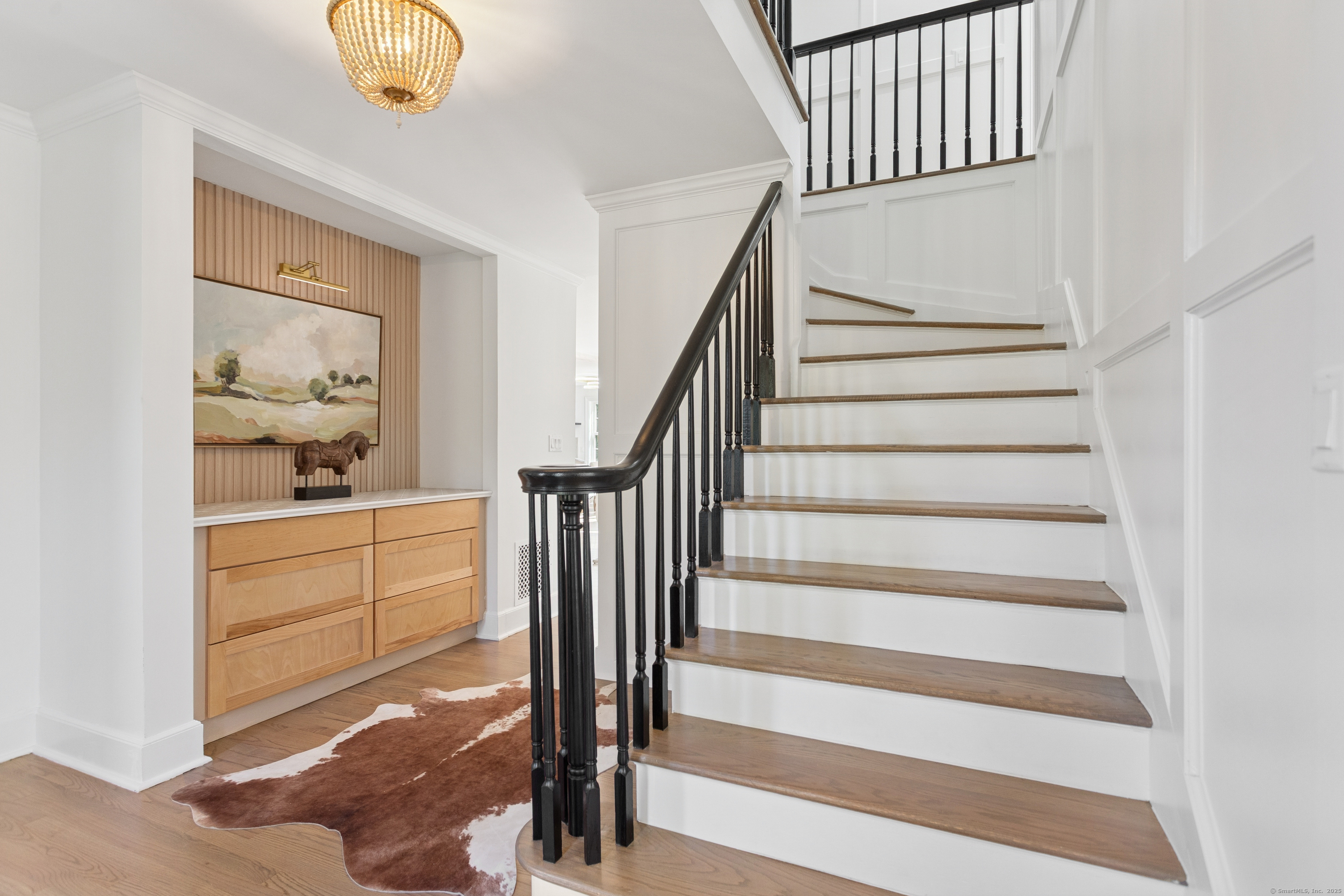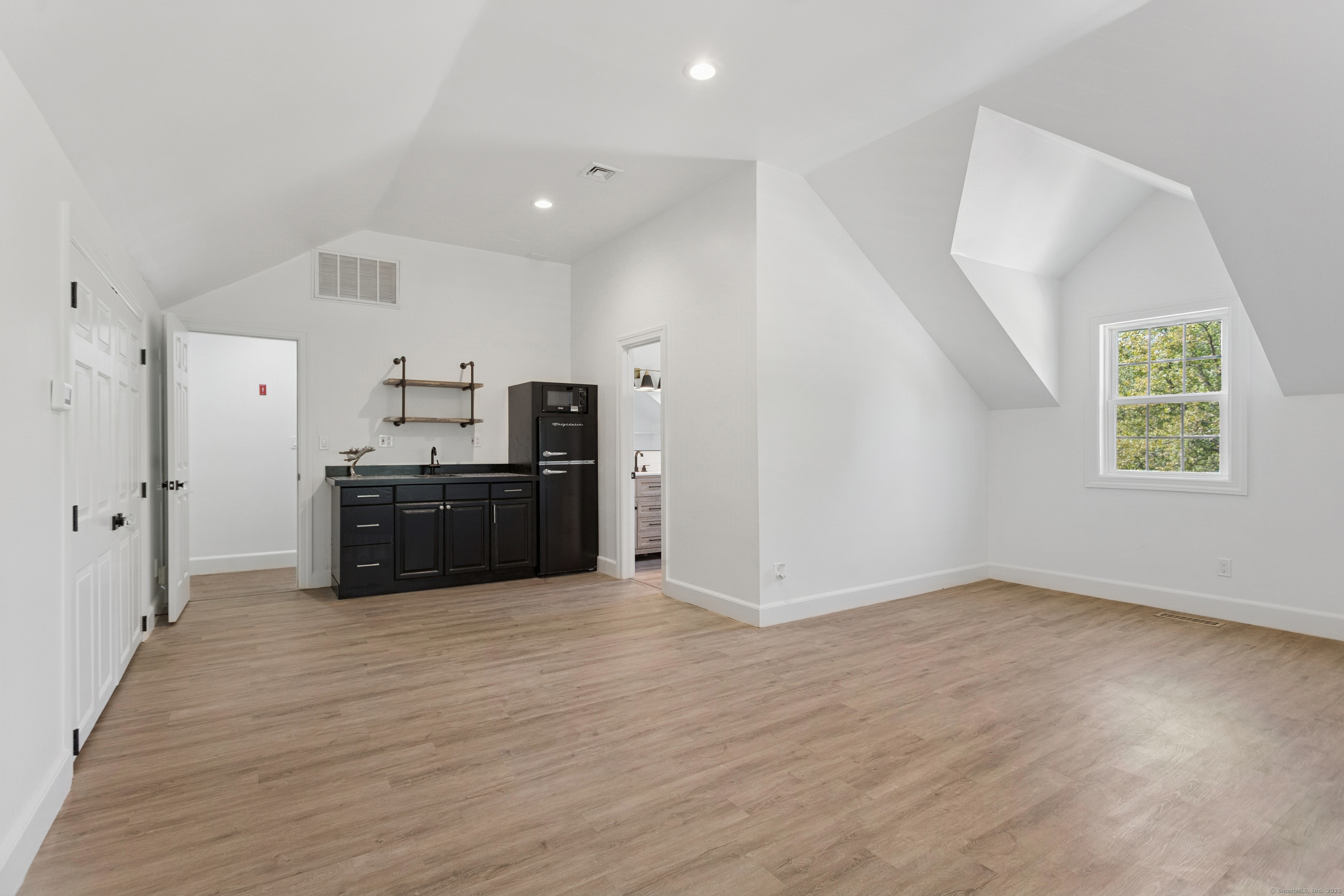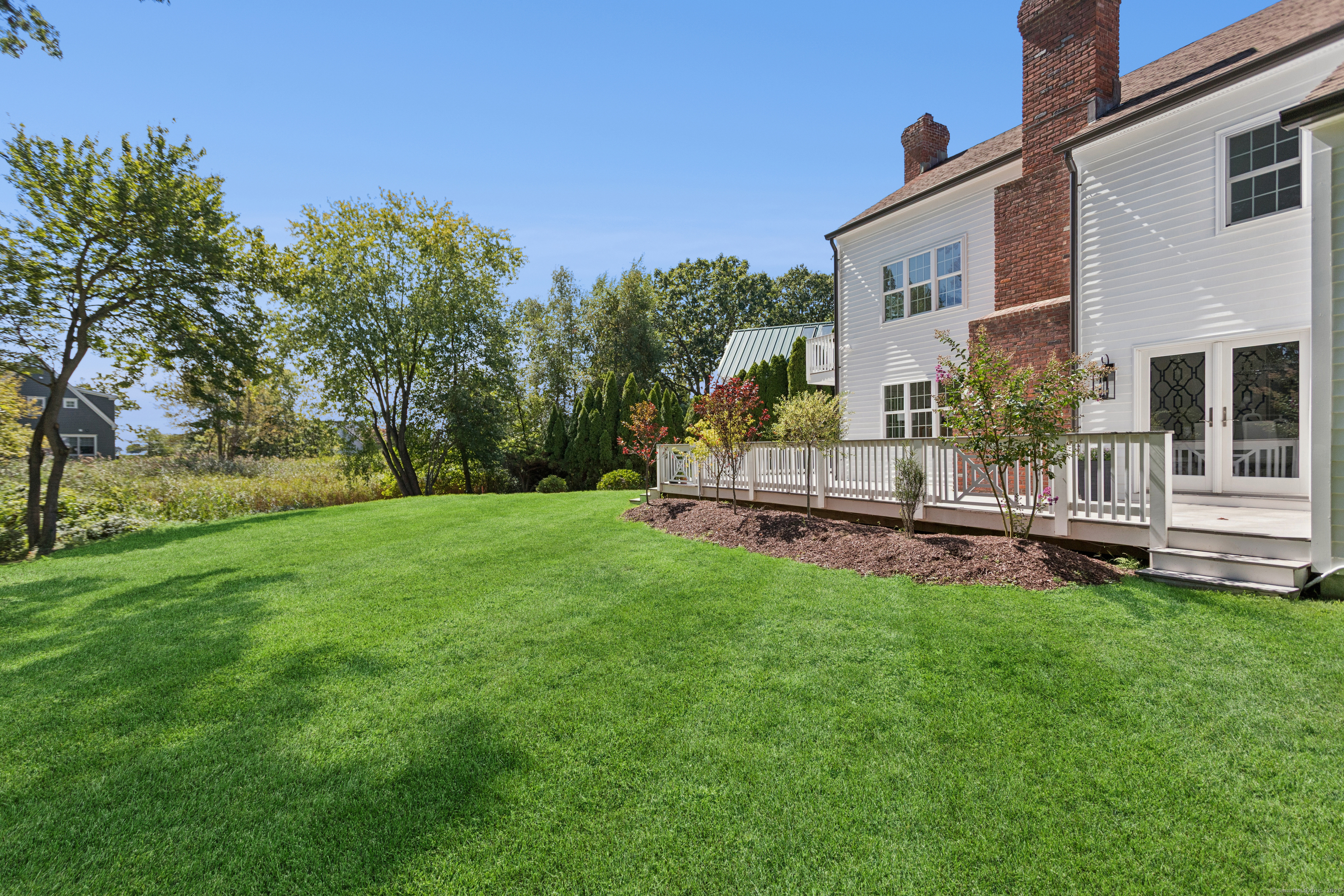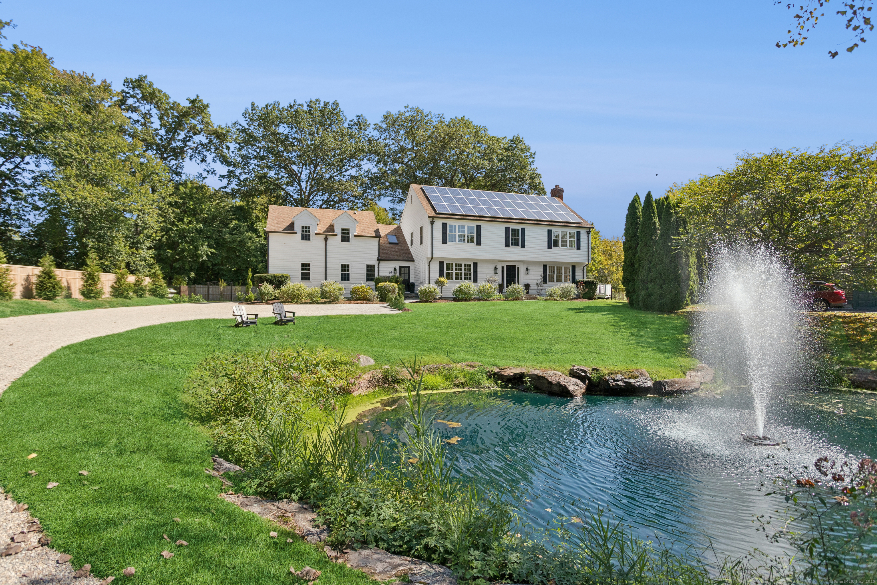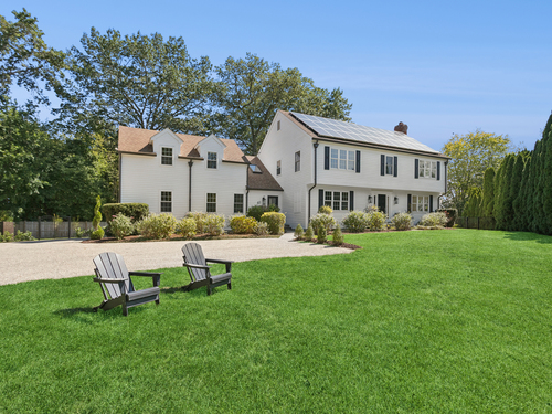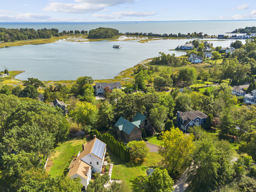WALK TO BEACH * WATER VIEWS * ROOM FOR A POOL This coastal gem sits on one of the largest lots near Compo Beach and has been thoughtfully renovated by skilled artisans and craftsmen, combining beachside charm with modern comfort. Located at the end of a quiet cul-de-sac, the property features equestrian fencing leading to an oil-and-stone driveway and a flat, partially fenced yard with a spacious deck. Inside, the home offers generous rooms with high ceilings, two fireplaces, and an additional versatile room that can function as a fourth bedroom, au pair suite, or in-law apartment. The oversized kitchen features new appliances and a walk-in pantry, while a second-floor laundry/playroom adds convenience and flexibility. The primary suite impresses with a vaulted ceiling and private balcony. Additional highlights include central heating and air conditioning, fine millwork with shiplap walls, custom built-ins, modern vertical wood accents, and a rotating bookcase entry to the playroom. Owner-owned solar panels, installed in 2013, significantly reduce utility costs. Completing this coastal retreat is an outdoor shower, perfect for rinsing off after a day at the beach. Generous parking and ample yard space make it ideal for friends and family to enjoy year-round gatherings with quick access to nearby Compo Beach. Homes of this size and quality in this area are rarely available-this one is a must-see!