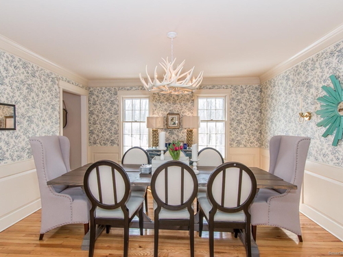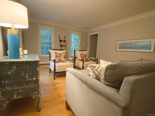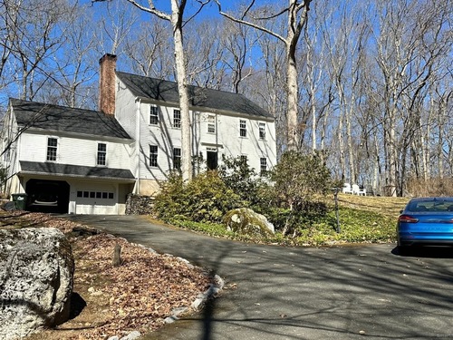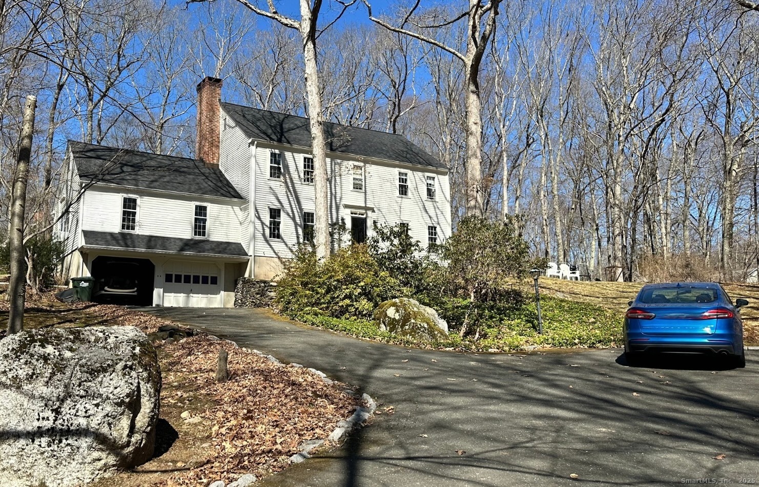Feel right at home in this beautifully crafted Williamsburg reproduction colonial, offering timeless design paired with casual elegance throughout. Set on a serene 2-acre, partially wooded lot, this home provides exceptional privacy, mature trees, and a spacious garden filled with fresh berries and roses. Step inside to an inviting expansive great room, perfect for gathering with friends and family around a crackling fireplace. On warm summer evenings, unwind on the charming screened-in porch, overlooking the peaceful backyard and blue stone patio-ideal for outdoor entertaining. The kitchen features granite countertops, a newer induction cooktop, built-in oven, microwave, dishwasher, and a stunning brick accent wall that adds warmth and character. The home's thoughtful layout includes a private office with French doors, perfect for remote work or quiet study. Upstairs, the home offers a spacious primary bedroom with a full bath and walk-in closet, along with three additional bedrooms. Convenience abounds with laundry upper level and central air for year-round comfort. The partially finished lower level spans the full footprint of the home and provides endless possibilities-playroom, media room, gym, or hobby workshop. Additional features include crown molding, Vermont slate, and charming brick and cedar accents, showcasing the home's refined style and craftsmanship. Upgrades add even more peace of mind: the roof was replaced in August 2020, and the entire home