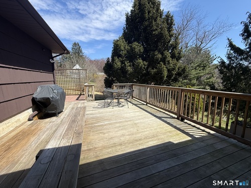 Great possibilities await in this solidly built ranch offering a versatile layout and wonderful indoor-outdoor flow. The kitchen features laminate flooring and opens to a sunroom that leads to a spacious deck overlooking a gorgeous rear yard & 2 car garage. A comfortable den with three closets provides flexible living space, while the light-filled living and dining room combination showcases hardwood floors, a fireplace, and large windows framing the serene backyard. Three bedrooms with hardwood floors and a remodeled full bath with a large walk-in shower complete the main level. The lower level offers excellent in-law or extended living potential with a kitchenette area, full bath & three additional rooms ideal for a recreation room, craft space, or office, plus a dedicated laundry area. With direct access to a side patio, workshop, and rear yard, this home presents endless opportunities to customize and make it your own. Other features include new front patio, new septic system and leeching fields (2008).