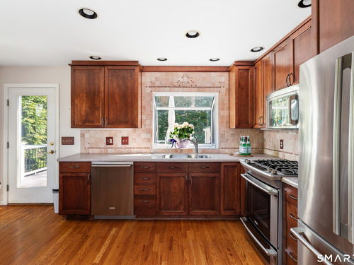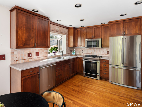 Sophisticated Style and Unbeatable Location - Newfield/Pepper Ridge. Some homes just have *it* - that rare blend of style, space, and location that makes you stop and pick up the phone. This is that home. Nestled in one of Stamford's most sought-after neighborhoods, this beautifully maintained 3-4 bedroom, 1.5 bath residence has been thoughtfully updated for the way people live today. From the striking new front door to the showpiece custom eat-in kitchen - featuring stainless appliances, custom cabinetry, and direct access to a brand-new private deck - every detail has been considered. The sun-drenched living room impresses with vaulted ceilings and a cozy fireplace, while gleaming hardwood floors flow throughout. Need flexibility? The lower level delivers - a spacious family room plus a fourth bedroom or home office, perfect for guests or remote work. Upstairs offers three spacious bedrooms and a newer bath. Best of all? **Everything has already been done.** New roof, new deck, new front door, repointed chimney, and newer driveway mean zero headaches from day one. Gas heat, central air, city water, and sewer complete the package. And the location? Walk to everything that makes Stamford living so desirable - shops, parks, and top-rated schools, all steps away. Move-in ready. Meticulously updated. Perfectly positioned. *This is the one you've been waiting for.*