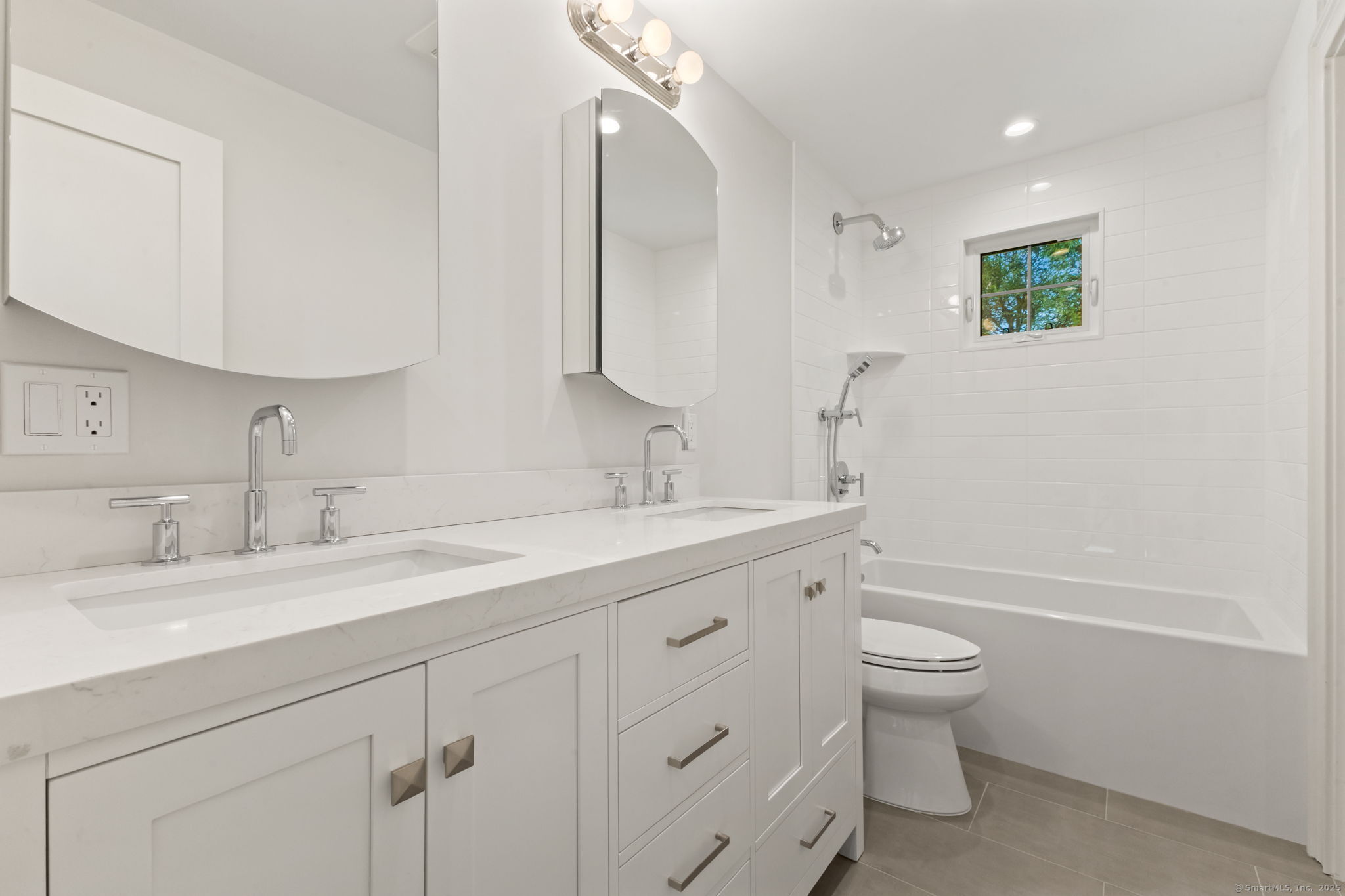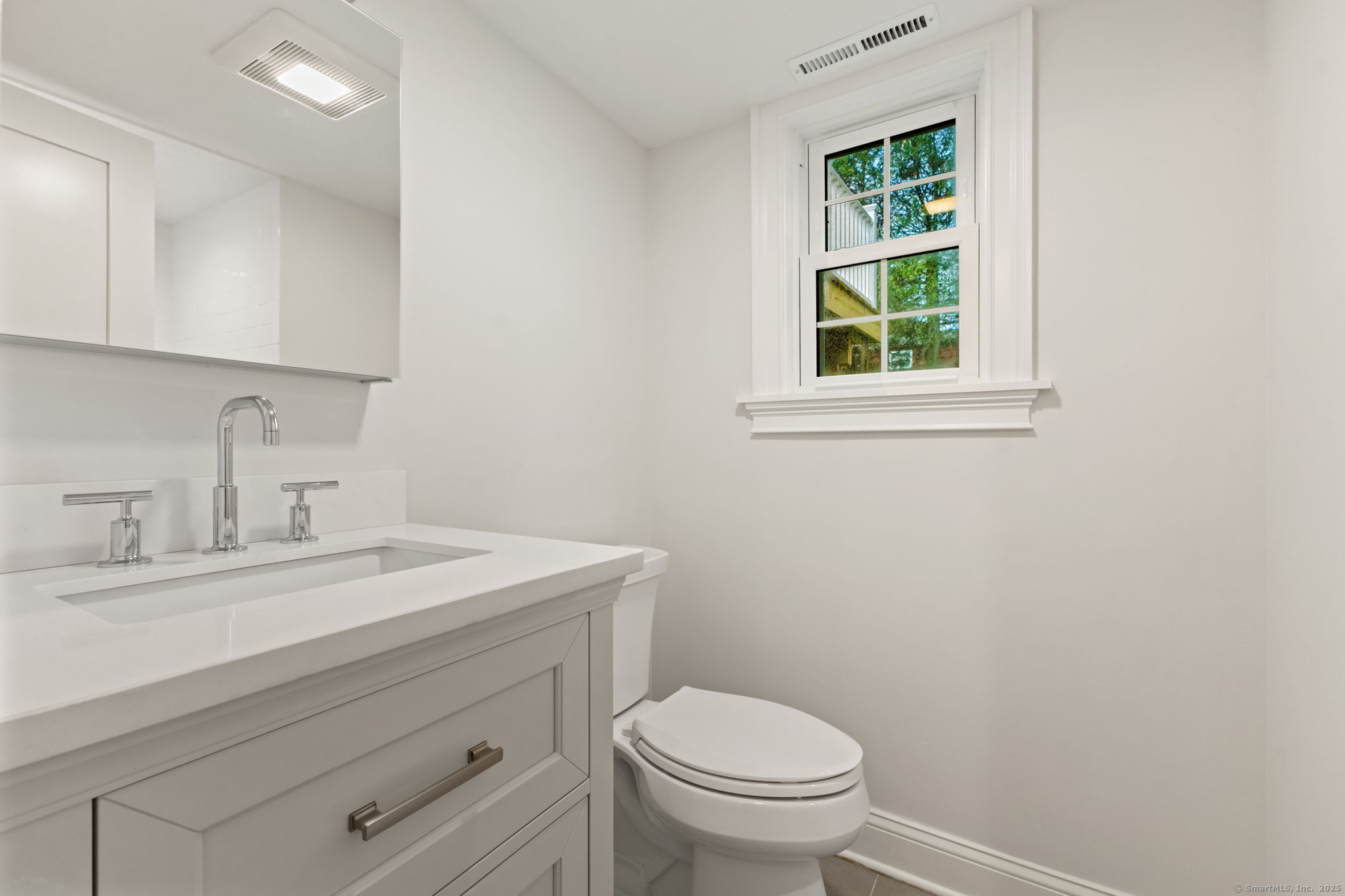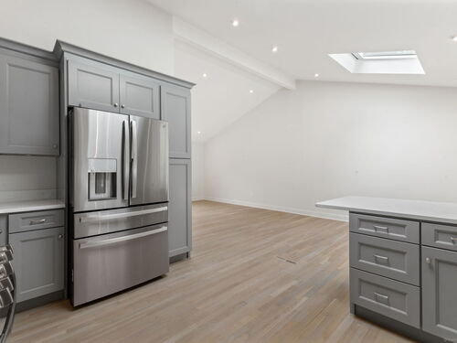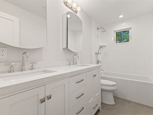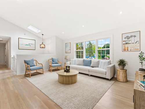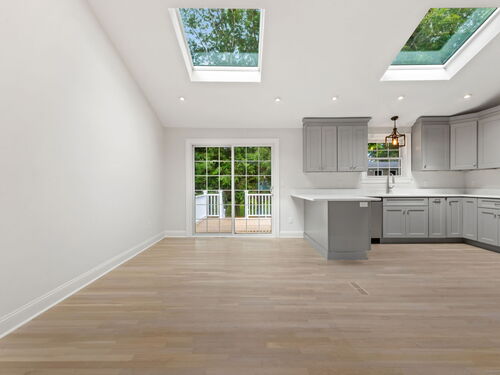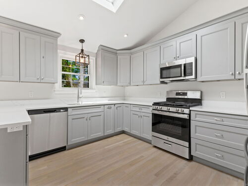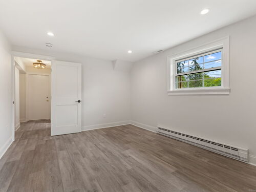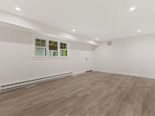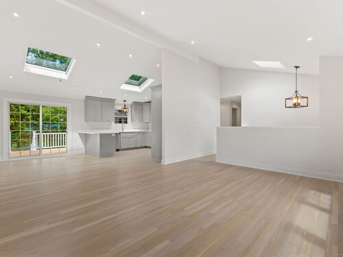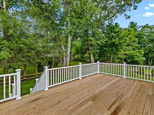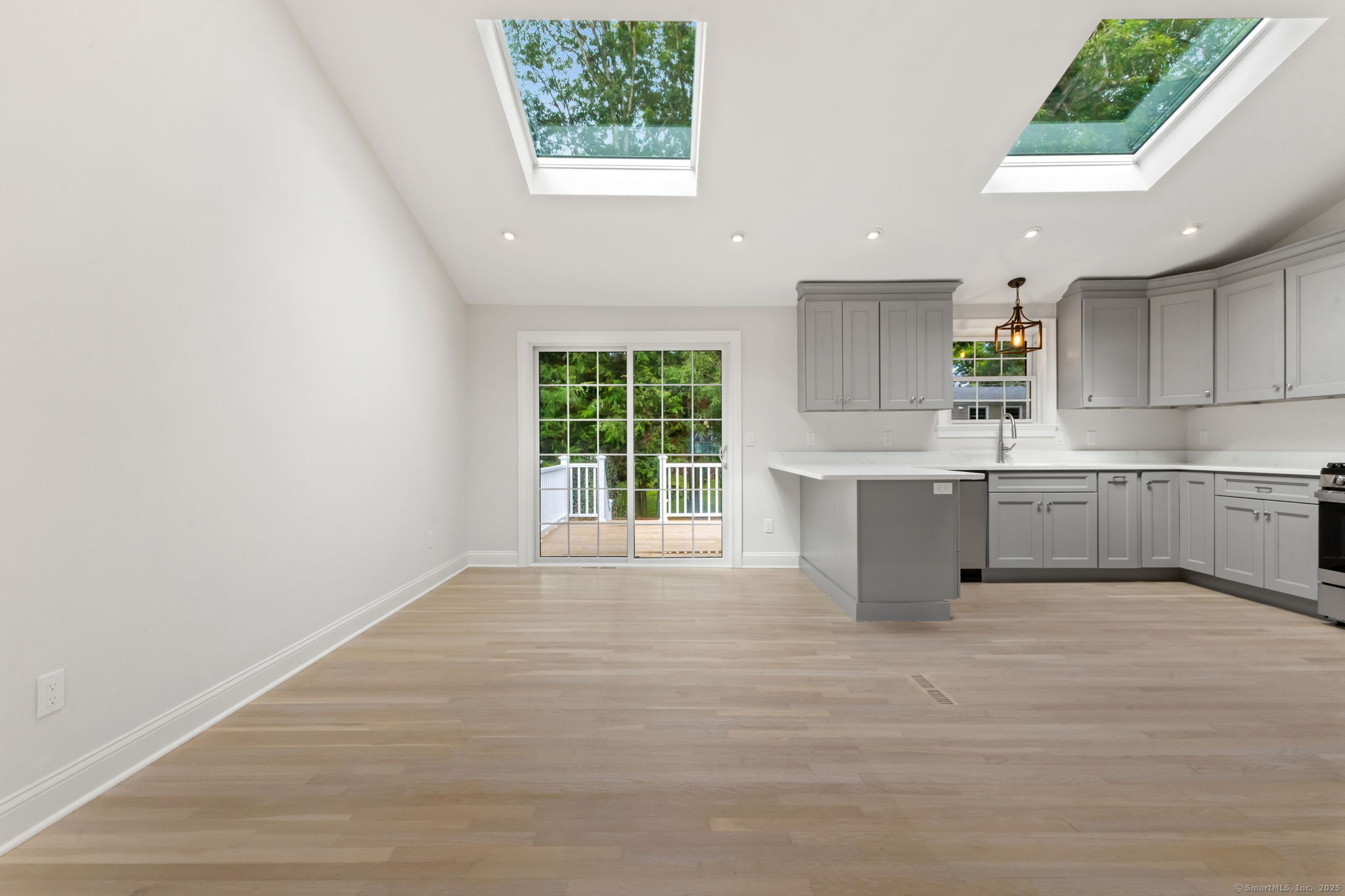 Beautifully renovated in 2025, this raised ranch is set on a quiet cul-de-sac in Stamford's desirable Mid Ridges neighborhood. The main level includes an open and bright living room and dining room, with hardwood floors throughout. Sliders in the dining room allow for easy access to a spacious deck perfect for outdoor living and grilling. The kitchen features sleek stainless steel appliances and quartz countertops with a breakfast bar. The primary bedroom, with dual closets, two bedrooms, and a full bath complete the main level. The lower level features a family room with fireplace as well as an additional bedroom and full bath. Laundry room on lower level. Walk-out to the two car garage and patio. The level yard offers ample room for gardening and recreation. Minutes from the Merritt Parkway and downtown Stamford.