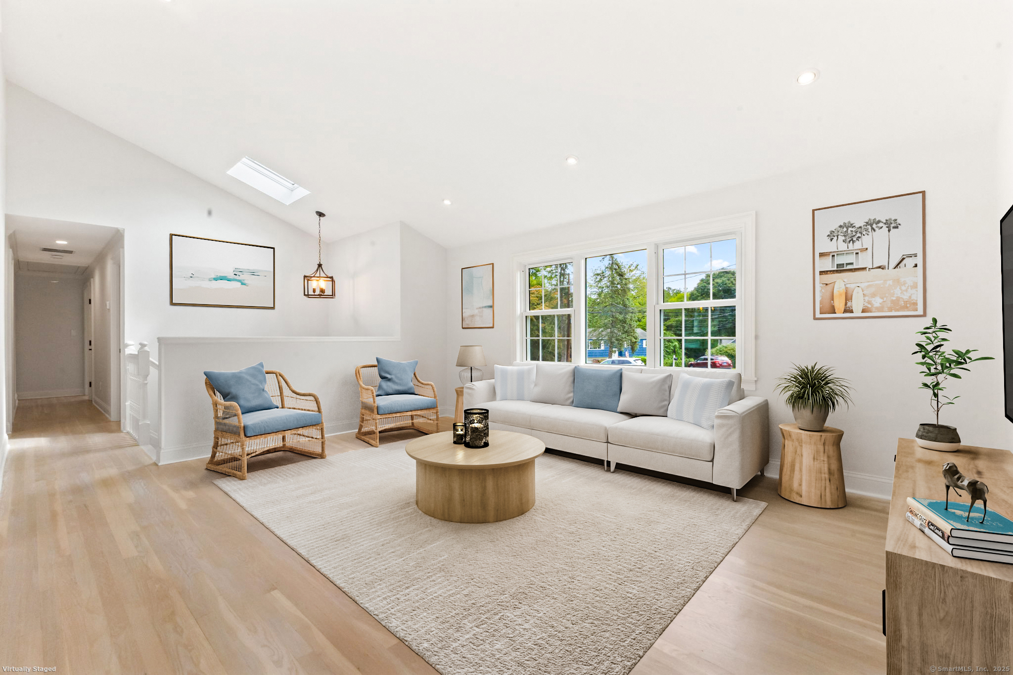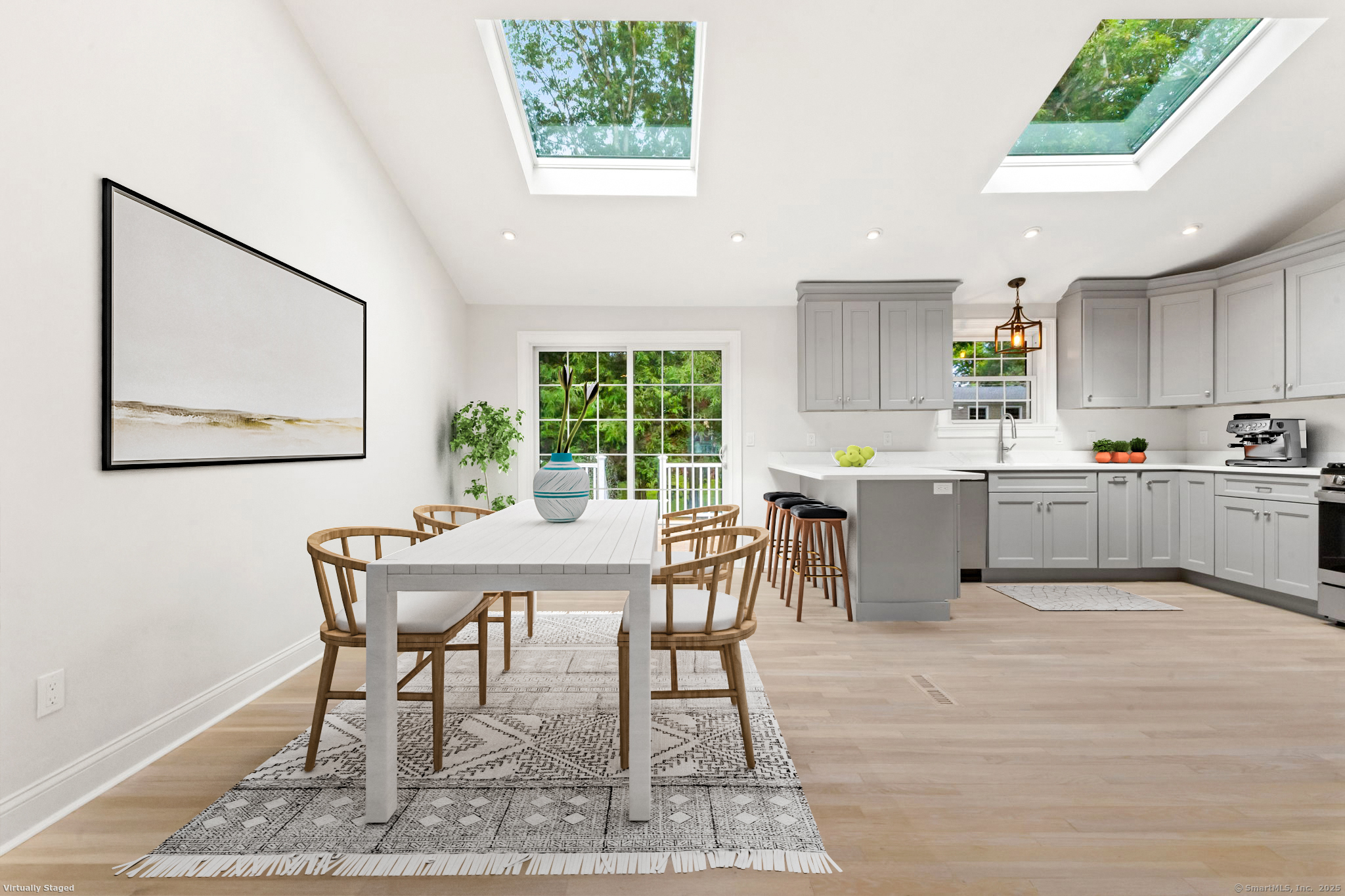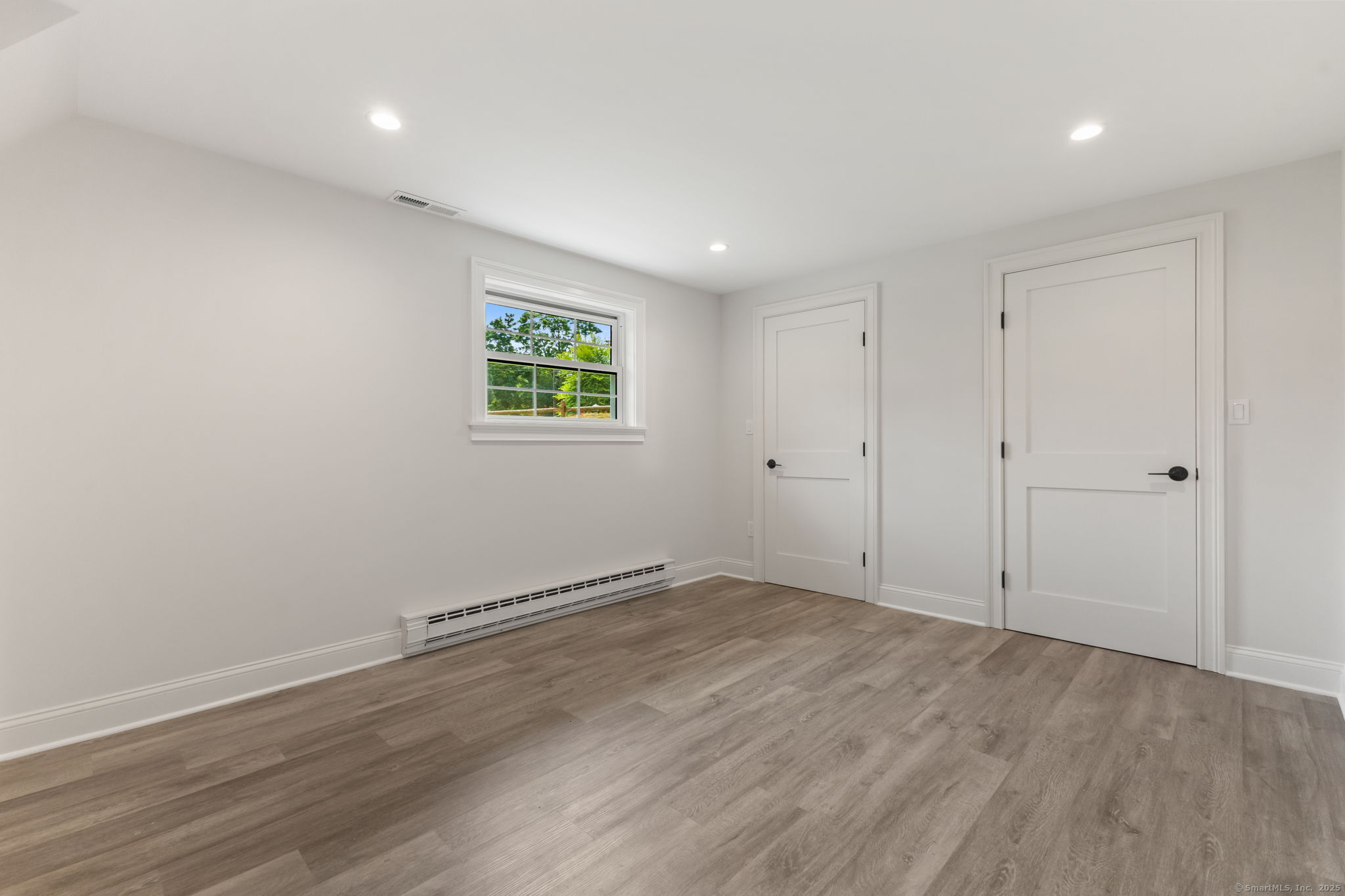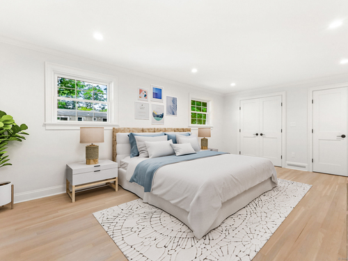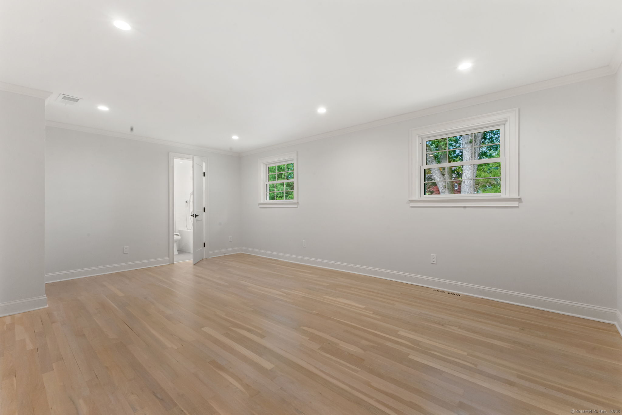 Beautifully renovated in 2025, this raised ranch is set on a quiet cul-de-sac in Stamford's desirable Mid Ridges neighborhood. The main level includes an open and bright living room and dining room, with hardwood floors throughout. Sliders in the dining room allow for easy access to a spacious deck perfect for outdoor living and grilling. The kitchen features sleek stainless steel appliances and quartz countertops with a breakfast bar. The primary bedroom, with dual closets, two bedrooms, and a full bath complete the main level. The lower level features a family room with fireplace as well as an additional bedroom and full bath. Laundry room on lower level. Walk-out to the two car garage and patio. The level yard offers ample room for gardening and recreation. Minutes from the Merritt Parkway and downtown Stamford.