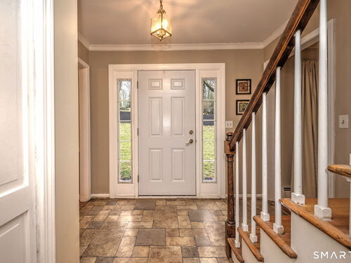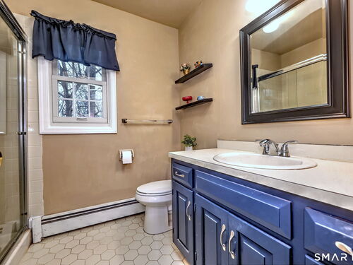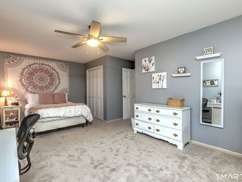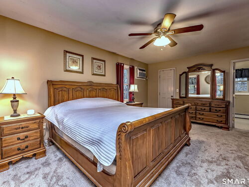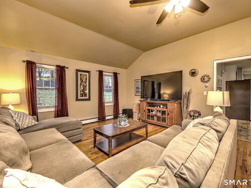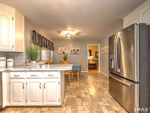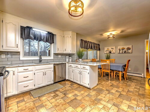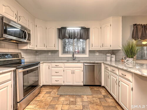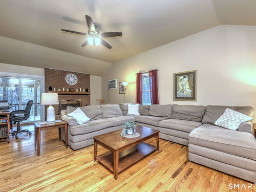 Set on the 5th fairway of the Whitney Farms Golf Course is where you will find this 3 bedroom, 3 1/2 bath colonial. A sunny front entry welcomes you into the home, where the formal living room and dining room are positioned at the front, offering classic entertaining spaces. The eat-in kitchen is located at the back of the home and features white cabinetry, granite countertops, and stainless steel appliances. Just off the kitchen on one side are the laundry area and a convenient guest half bath. On the opposite side, the spacious family room includes a fireplace and provides direct access to the back deck-perfect for relaxing or entertaining while enjoying golf course views. Hardwood floors run throughout the first floor, with the exception of the kitchen. Upstairs, you'll find the primary suite complete with a full bath and walk-in closet, along with two additional bedrooms. Brand new carpeting has been installed throughout the entire second level, and the main hall bathroom has been beautifully renovated. The lower level offers incredible flexibility and is ideal for a guest suite, in-law setup, or home office. This space includes a living area, bedroom or office, and a newly renovated full bathroom. Sliders lead directly to the backyard, and this level also provides interior access to the two car garage. All of this is located in a highly rated school district and close tennis, basketball, hiking and swimming at Wolfe Park and to Webb Mountain Park. Welcome Home!