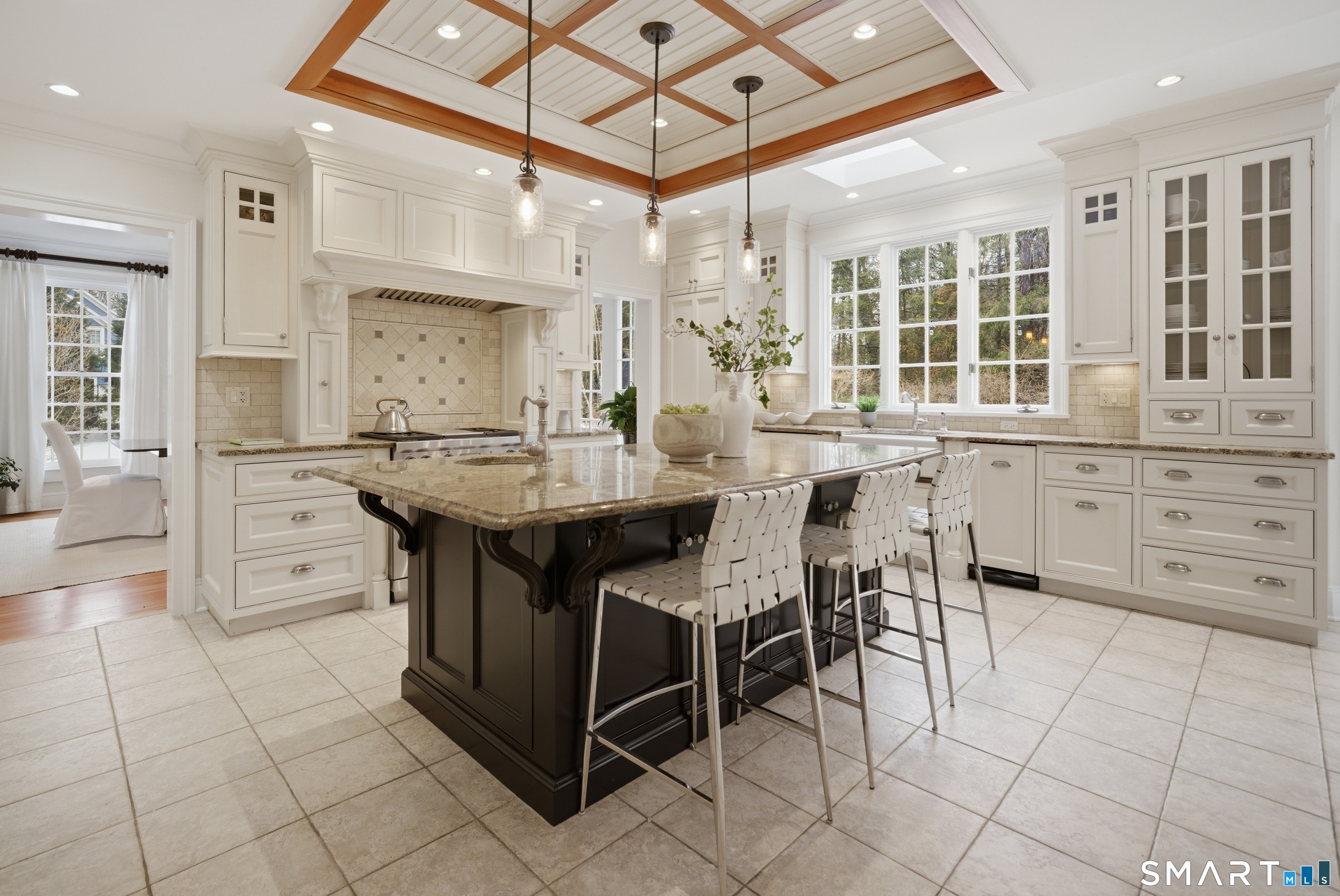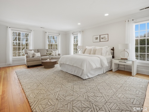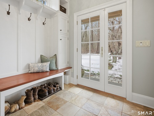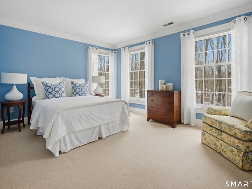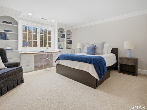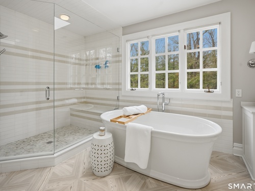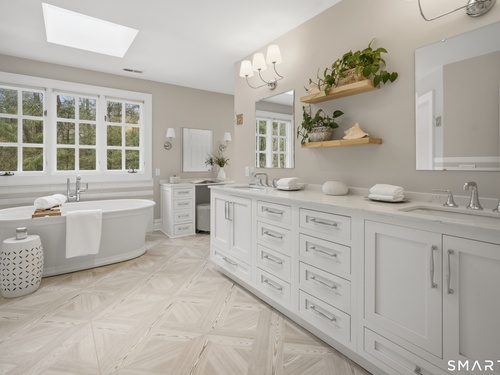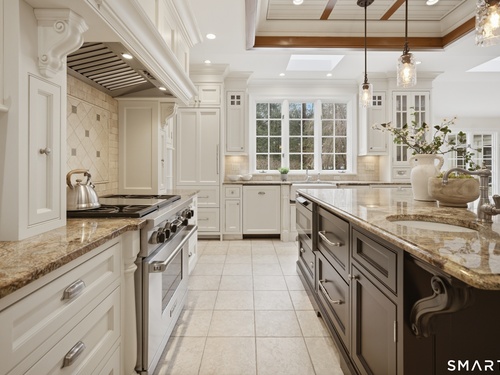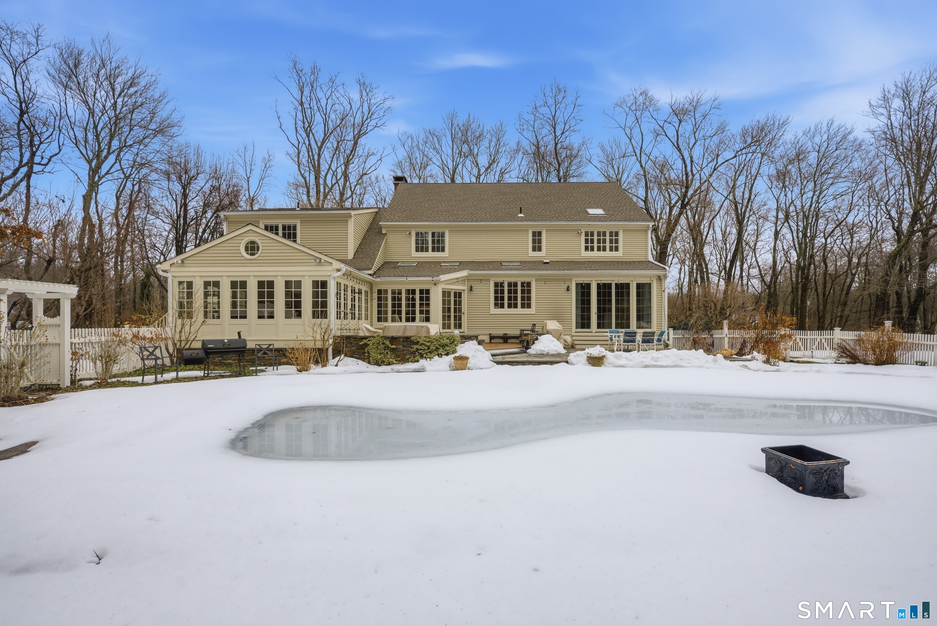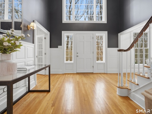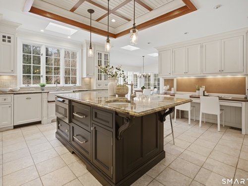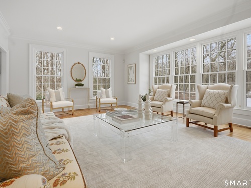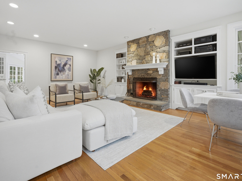 Set on two private, park-like acres in one of Fairfield's most sought after neighborhoods, this beautifully updated home offers over 4,000 square feet of thoughtfully designed living space with 5 bedrooms and 4.5 baths, including a dedicated home office for today's flexible lifestyle and gunite pool. The heart of the home is a chef's kitchen featuring custom inset cabinetry, an oversized center island with prep sink and Sub-Zero refrigerator drawers, a Wolf range, and generous space for cooking and gathering. Just beyond, a sun-filled dining room opens through patio doors to a bluestone terrace and pool, creating a seamless indoor-outdoor setting for entertaining. A dramatic two-story foyer is flanked by both a formal living room and a spacious family room with wood-burning fireplace, offering multiple spaces for everyday living. The main level also includes a fully equipped laundry room, a bright three-season sunroom, and a mudroom off the three-car garage. Conveniently located just off the mudroom is a full bath-perfect for rinsing off after an afternoon by the pool. Upstairs, the primary suite offers a true retreat with a brand-new spa-inspired bath and dual walk-in closets. This floor features four additional bedrooms. An unfinished walk-up third floor and massive lower level provides excellent potential for additional living space. Recent upgrades include a NEW roof, NEW Marvin wood windows throughout, NEW dual-zone HVAC, recently refinished pool, and many more updates