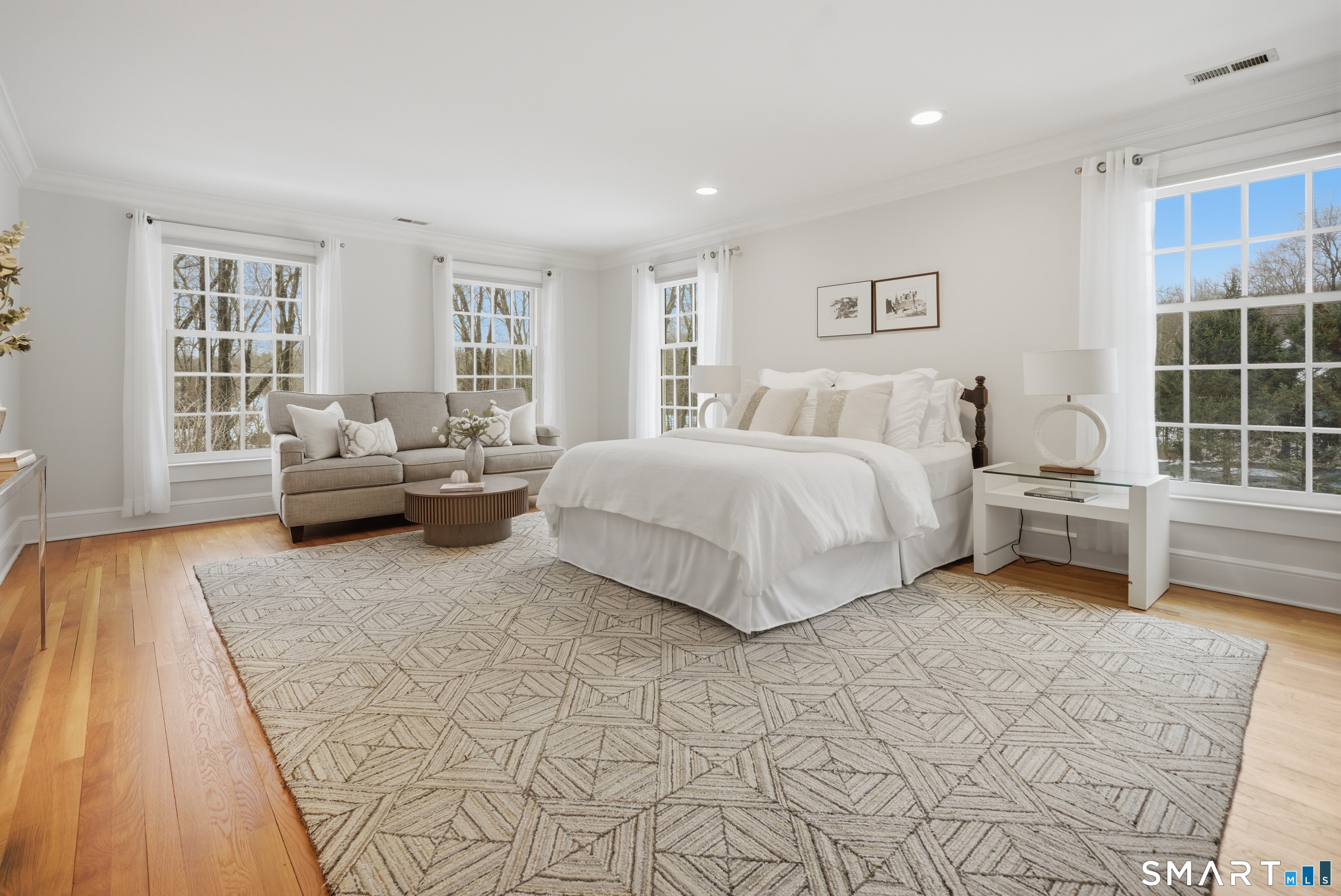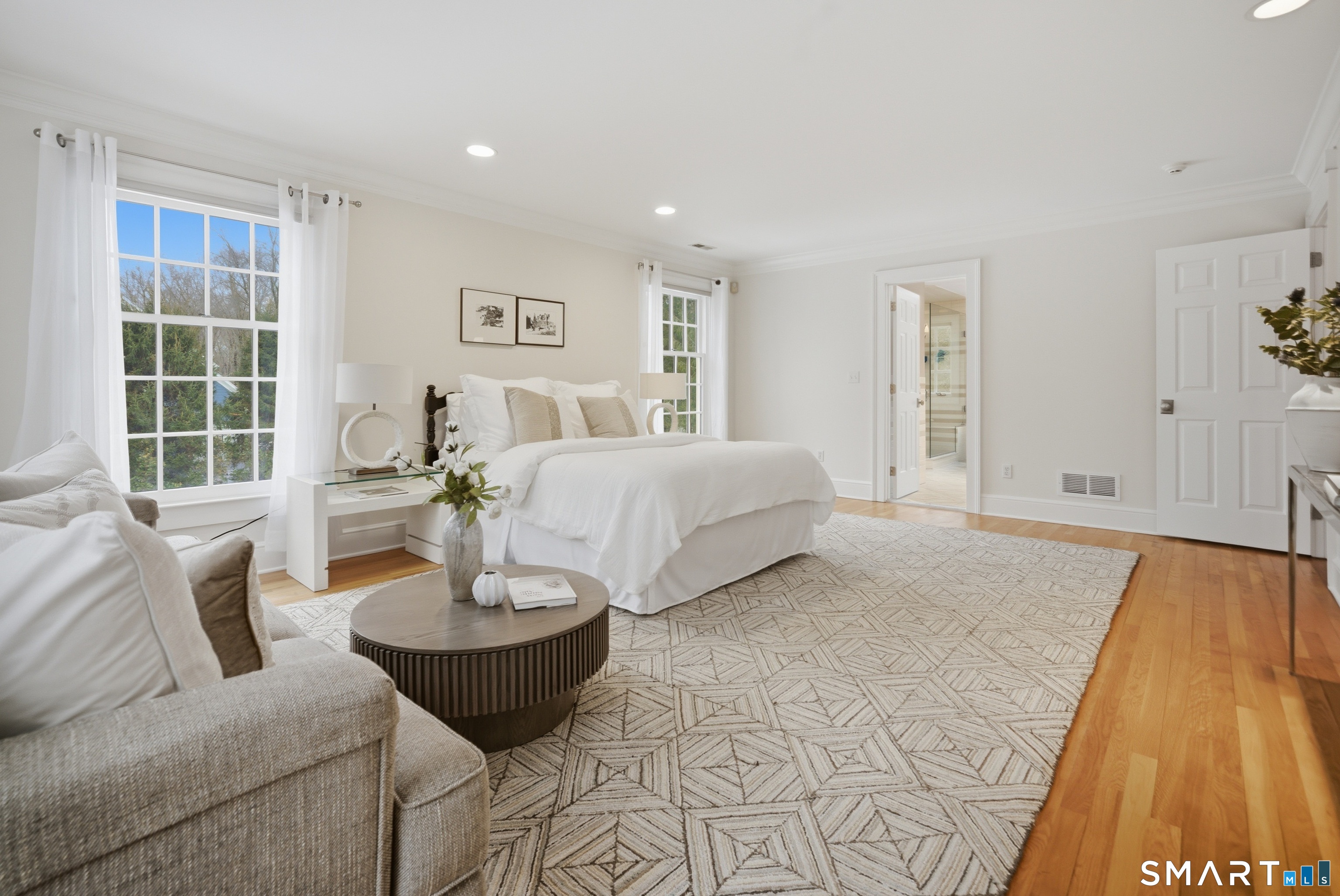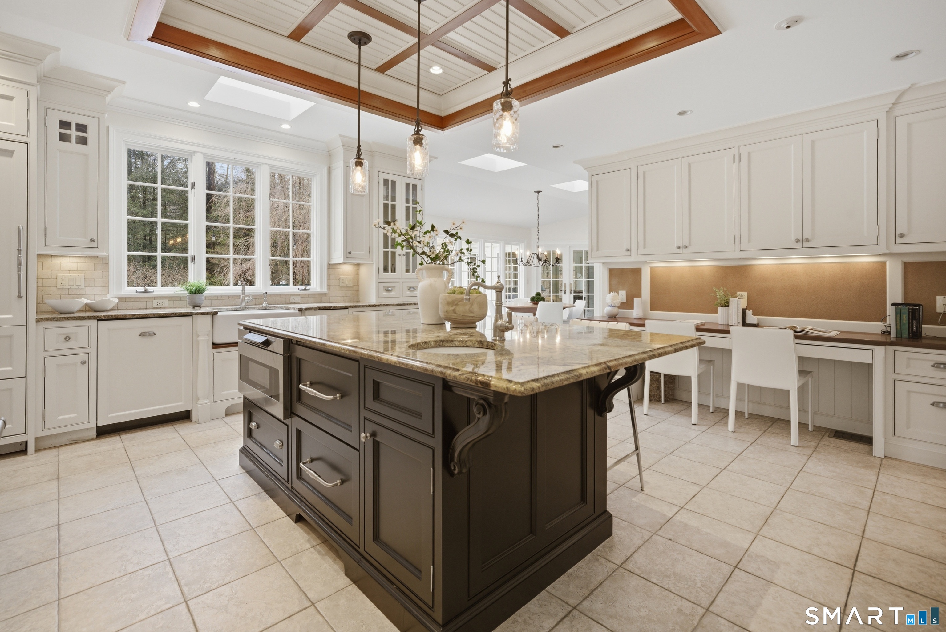 Set on two private, park-like acres in one of Fairfield's most sought after neighborhoods, this beautifully updated home offers over 4,000 square feet of thoughtfully designed living space with 5 bedrooms and 4.5 baths, including a dedicated home office for today's flexible lifestyle and gunite pool. The heart of the home is a chef's kitchen featuring custom inset cabinetry, an oversized center island with prep sink and Sub-Zero refrigerator drawers, a Wolf range, and generous space for cooking and gathering. Just beyond, a sun-filled dining room opens through patio doors to a bluestone terrace and pool, creating a seamless indoor-outdoor setting for entertaining. A dramatic two-story foyer is flanked by both a formal living room and a spacious family room with wood-burning fireplace, offering multiple spaces for everyday living. The main level also includes a fully equipped laundry room, a bright three-season sunroom, and a mudroom off the three-car garage. Conveniently located just off the mudroom is a full bath-perfect for rinsing off after an afternoon by the pool. Upstairs, the primary suite offers a true retreat with a brand-new spa-inspired bath and dual walk-in closets. This floor features four additional bedrooms. An unfinished walk-up third floor and massive lower level provides excellent potential for additional living space. Recent upgrades include a NEW roof, NEW Marvin wood windows throughout, NEW dual-zone HVAC, recently refinished pool, and many more updates