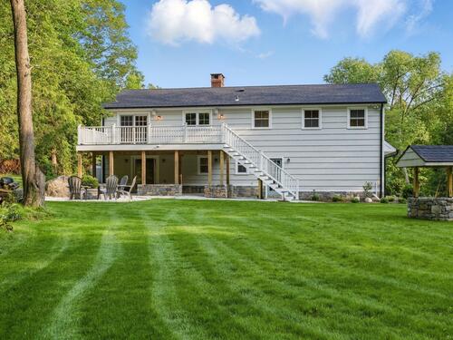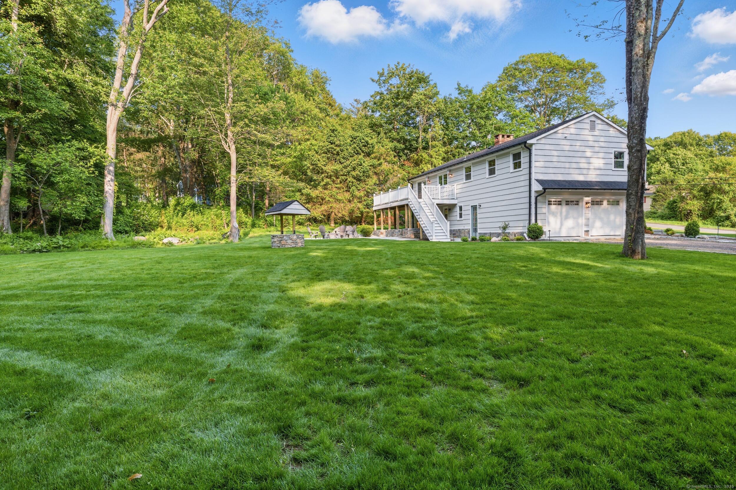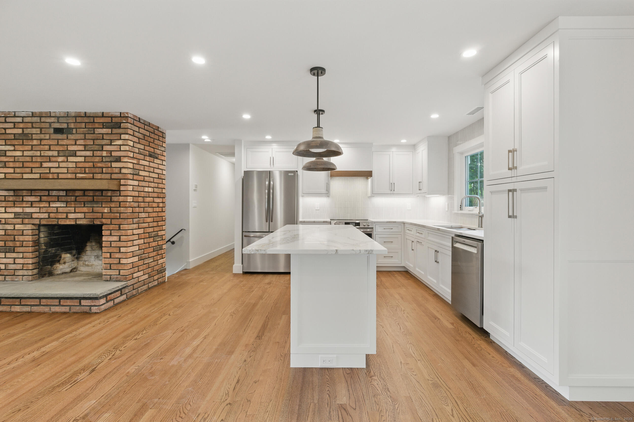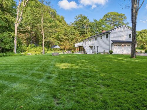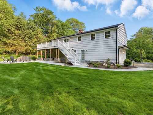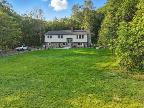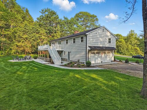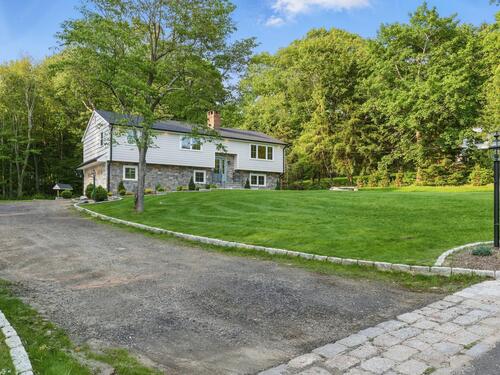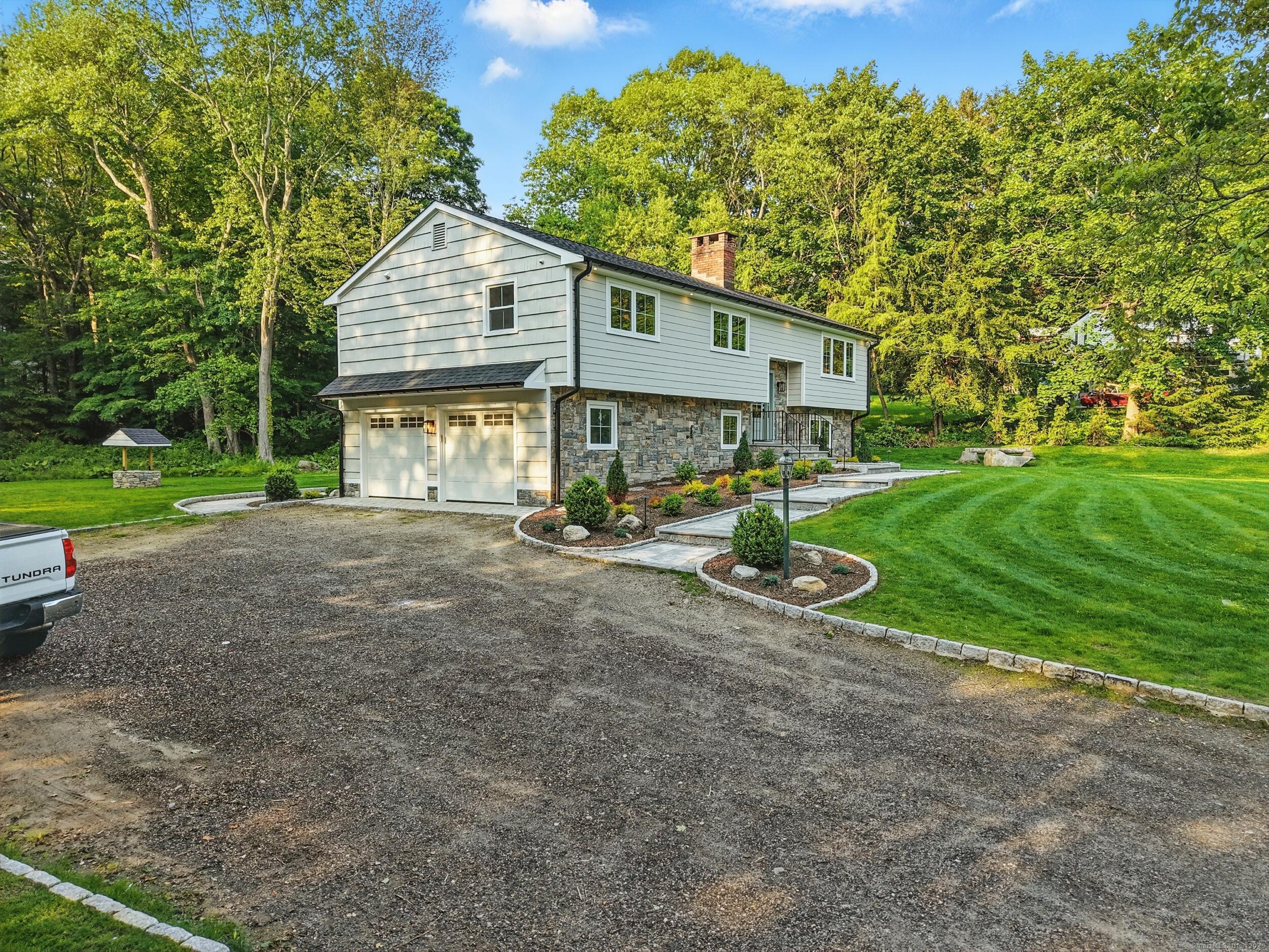 Welcome to your new home in Newtown, CT! This fully renovated 3-bedroom, 2-bath raised ranch offers a spacious open-concept layout with refinished hardwood floors and custom stonework. Nearly new construction, the home has been redone top to bottom with 2 brand-new kitchens, updated bathrooms, central air (up and down), spray foam insulation, new roof and gutters, new windows, new appliances (including washer/dryer and water softener), epoxy garage floors, and a Trex deck. Modern upgrades include security cameras, a Sonos music system, LED and landscape lighting, and a whole-house generator. The main level features a living room with a brick wood-burning fireplace, dining area, and custom kitchen. The primary suite includes a full bath, with two additional bedrooms nearby. The finished lower level is ideal for multi-generational living or flexible use, complete with a second kitchen, family room, full bathroom, laundry area, playroom, and a second fireplace. Set on 1 acre, the landscaped property includes a spacious deck, patio, built-in fire pit, and a 2-car garage. Conveniently located within walking distance of Rock Ridge Country Club and Ferris Acres Creamery, with top-rated schools and easy access to the Bethel train station for commuting.