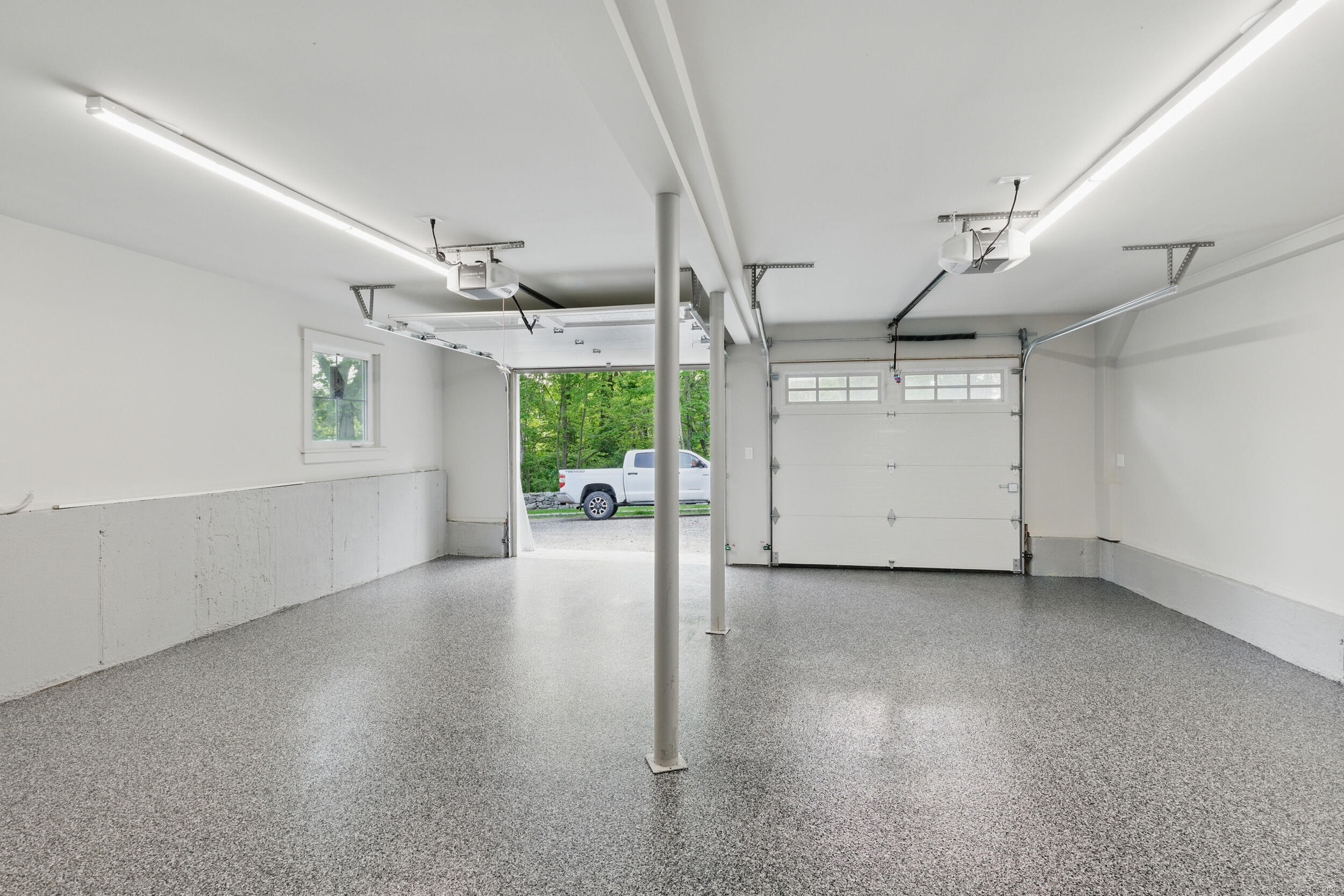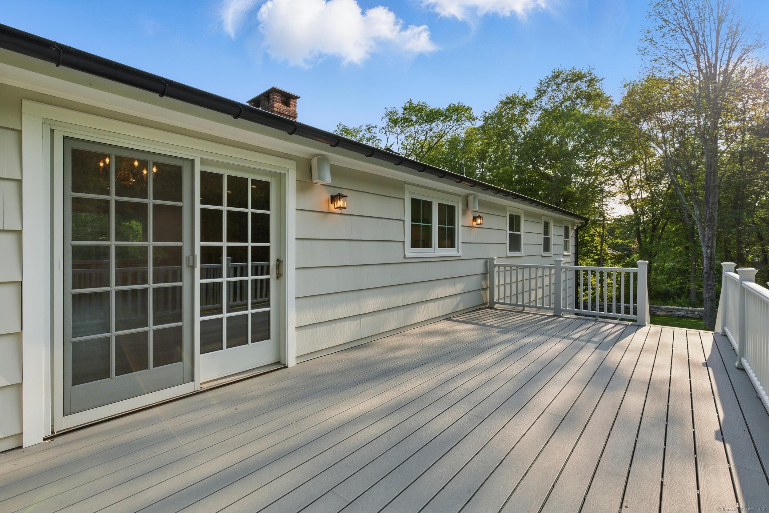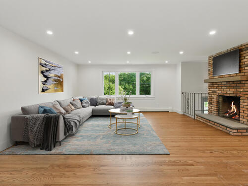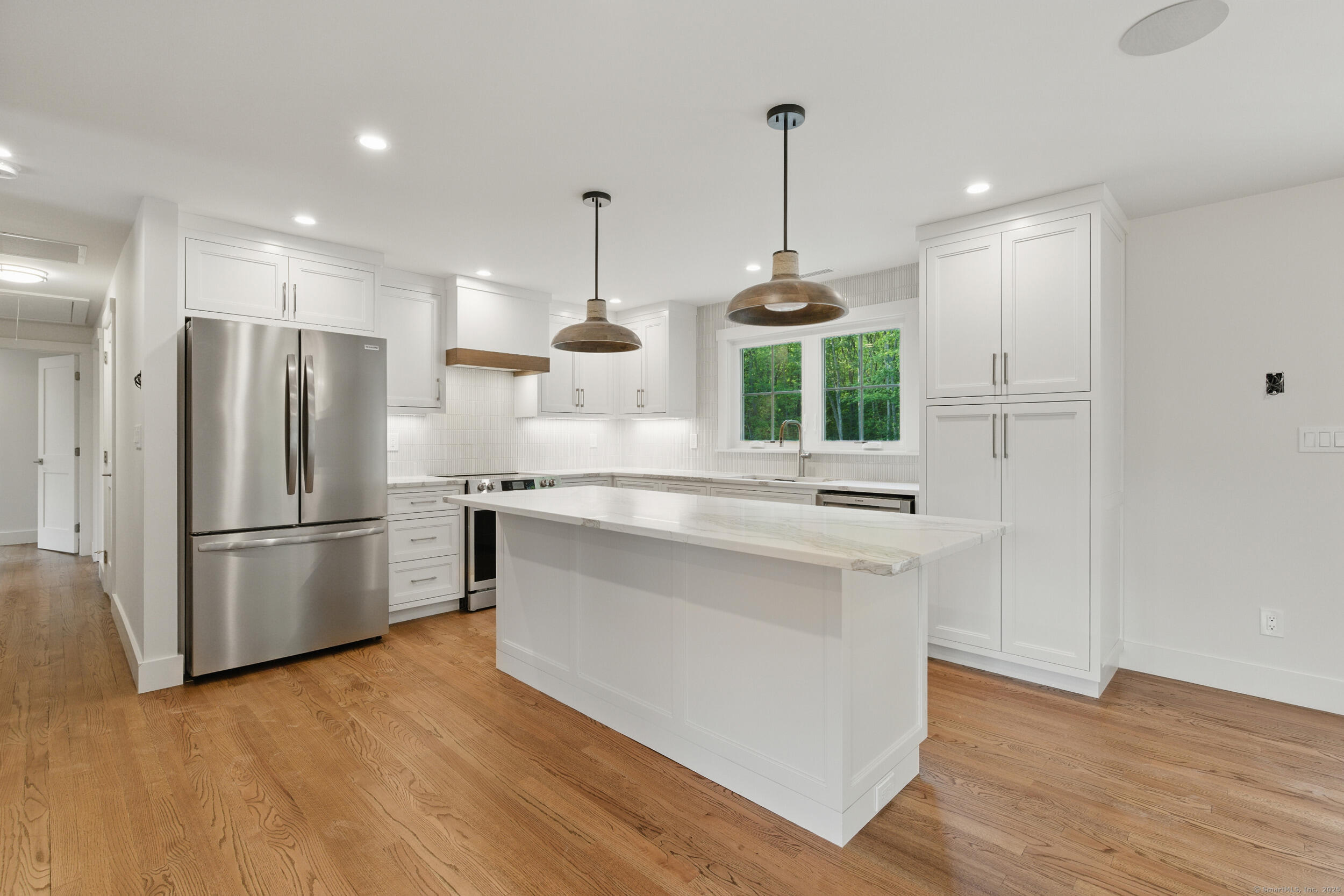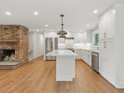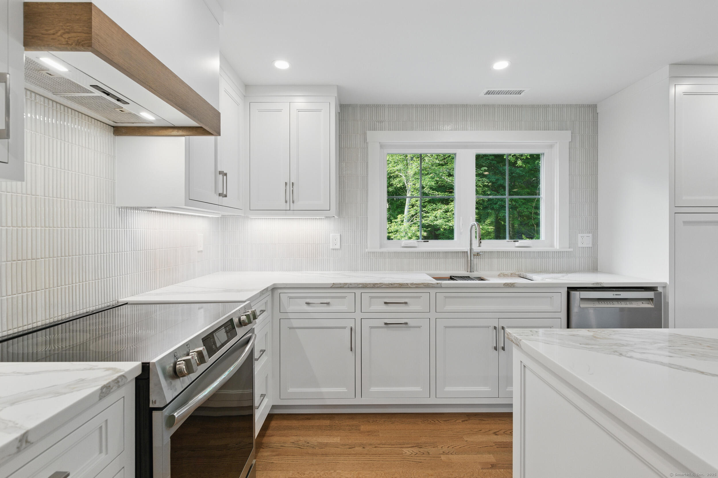 Welcome to your new home in Newtown, CT! This fully renovated 3-bedroom, 2-bath raised ranch offers a spacious open-concept layout with refinished hardwood floors and custom stonework. Nearly new construction, the home has been redone top to bottom with 2 brand-new kitchens, updated bathrooms, central air (up and down), spray foam insulation, new roof and gutters, new windows, new appliances (including washer/dryer and water softener), epoxy garage floors, and a Trex deck. Modern upgrades include security cameras, a Sonos music system, LED and landscape lighting, and a whole-house generator. The main level features a living room with a brick wood-burning fireplace, dining area, and custom kitchen. The primary suite includes a full bath, with two additional bedrooms nearby. The finished lower level is ideal for multi-generational living or flexible use, complete with a second kitchen, family room, full bathroom, laundry area, playroom, and a second fireplace. Set on 1 acre, the landscaped property includes a spacious deck, patio, built-in fire pit, and a 2-car garage. Conveniently located within walking distance of Rock Ridge Country Club and Ferris Acres Creamery, with top-rated schools and easy access to the Bethel train station for commuting.