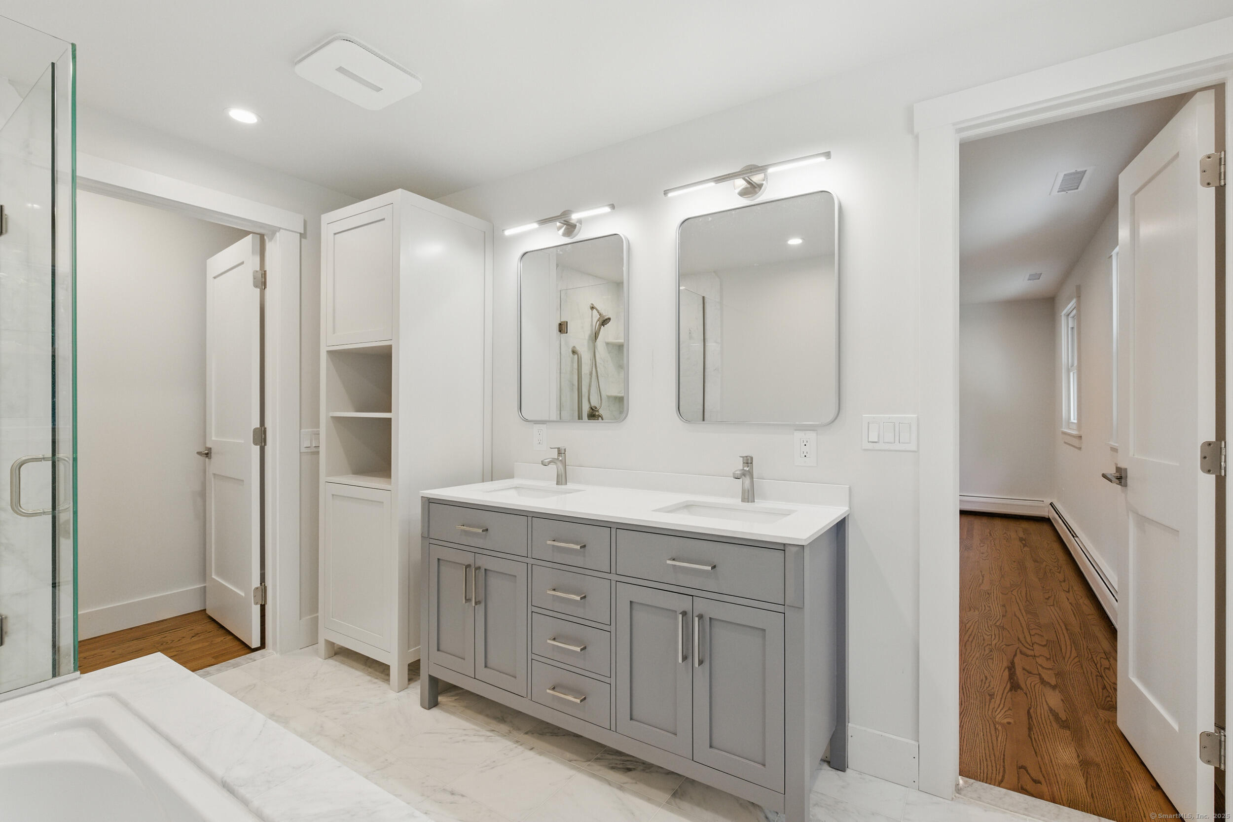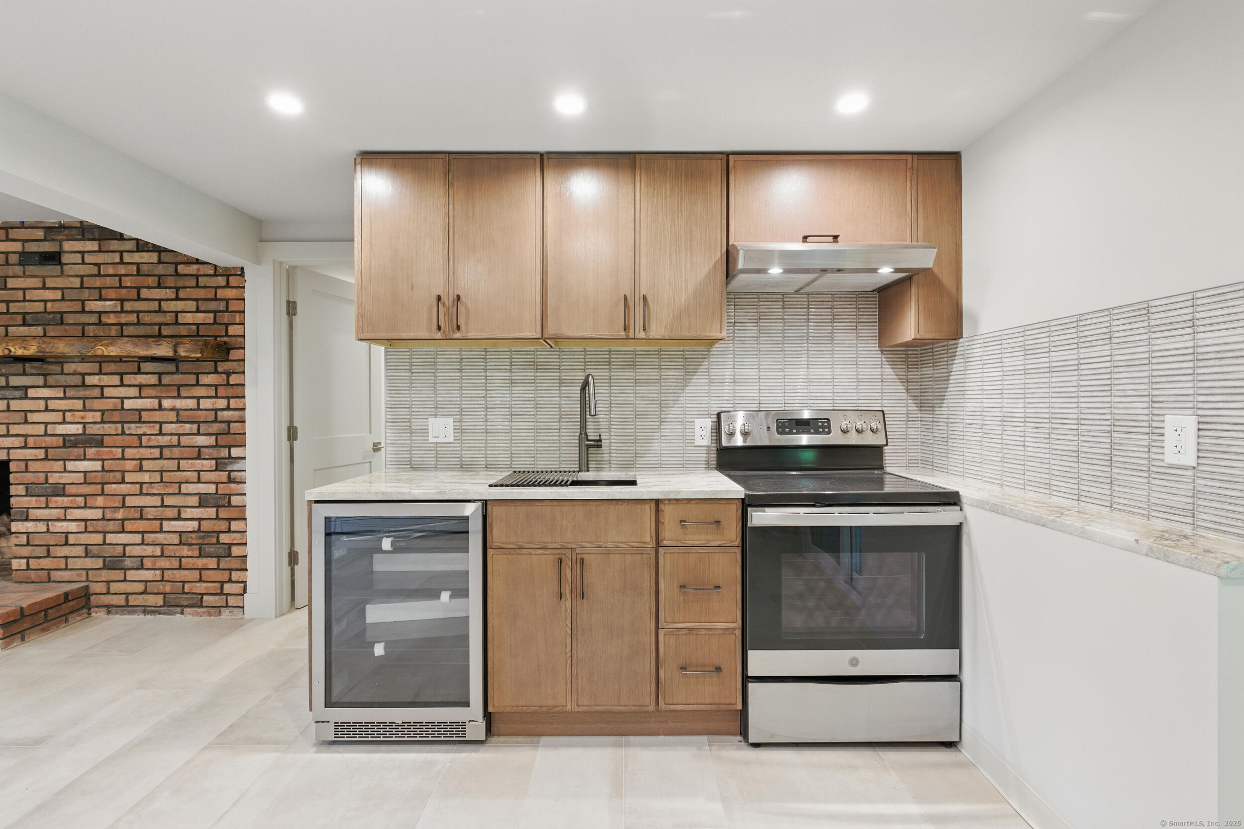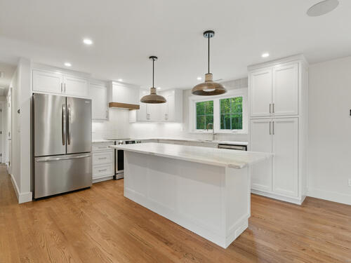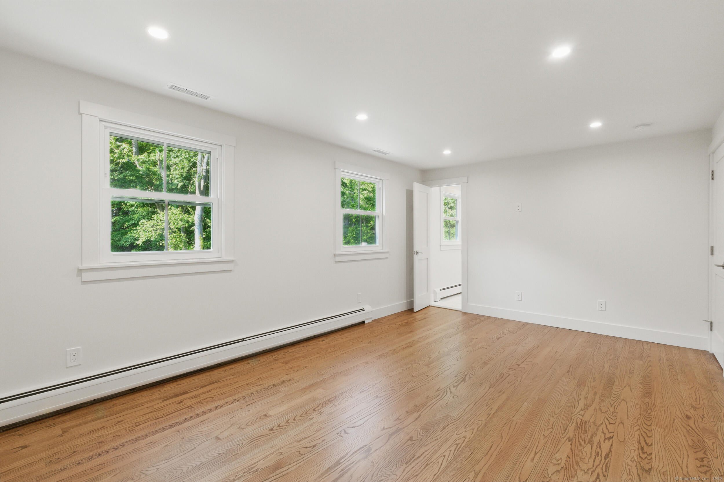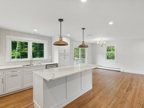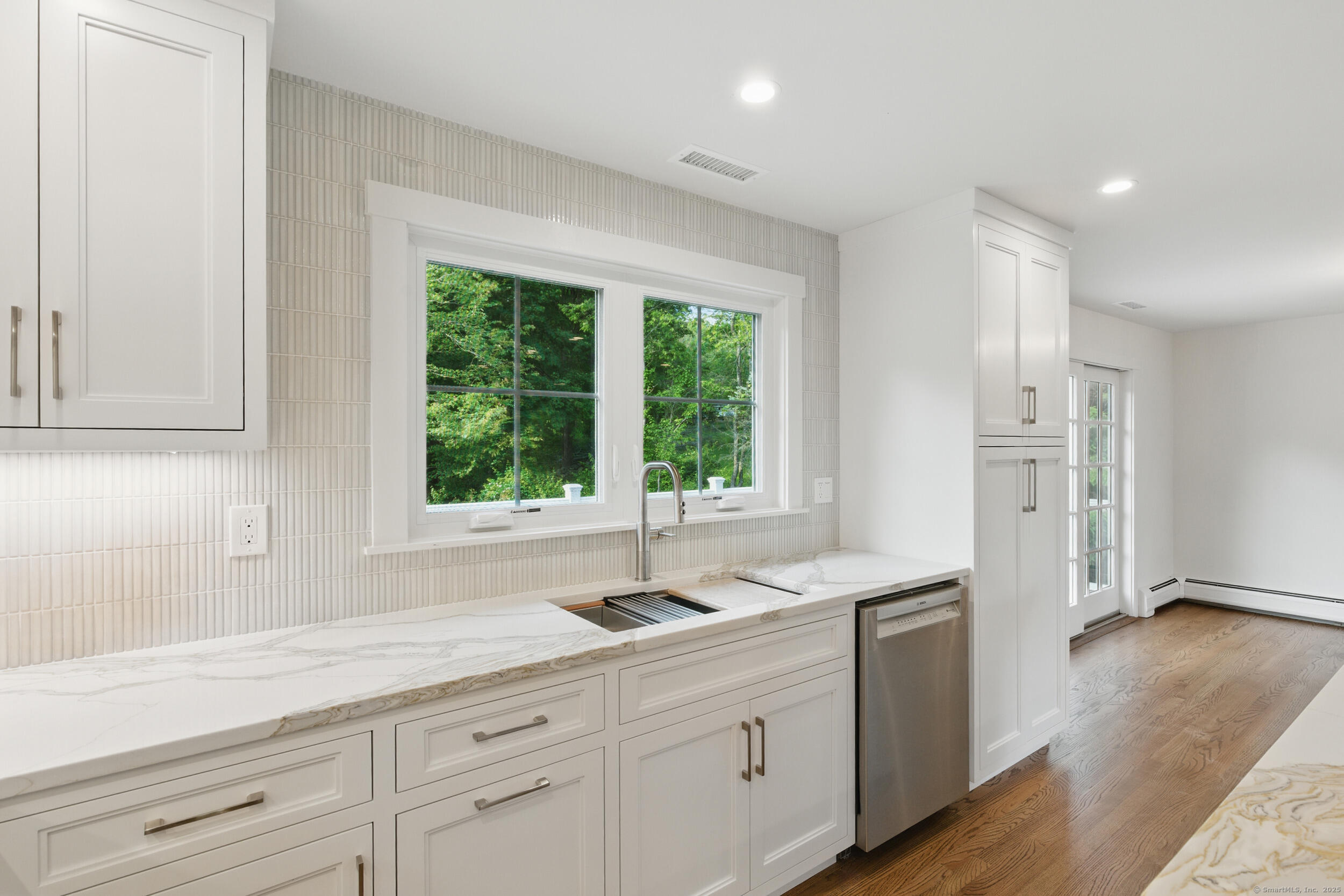 Welcome to your new home in Newtown, CT! This fully renovated 3-bedroom, 2-bath raised ranch offers a spacious open-concept layout with refinished hardwood floors and custom stonework. Nearly new construction, the home has been redone top to bottom with 2 brand-new kitchens, updated bathrooms, central air (up and down), spray foam insulation, new roof and gutters, new windows, new appliances (including washer/dryer and water softener), epoxy garage floors, and a Trex deck. Modern upgrades include security cameras, a Sonos music system, LED and landscape lighting, and a whole-house generator. The main level features a living room with a brick wood-burning fireplace, dining area, and custom kitchen. The primary suite includes a full bath, with two additional bedrooms nearby. The finished lower level is ideal for multi-generational living or flexible use, complete with a second kitchen, family room, full bathroom, laundry area, playroom, and a second fireplace. Set on 1 acre, the landscaped property includes a spacious deck, patio, built-in fire pit, and a 2-car garage. Conveniently located within walking distance of Rock Ridge Country Club and Ferris Acres Creamery, with top-rated schools and easy access to the Bethel train station for commuting.