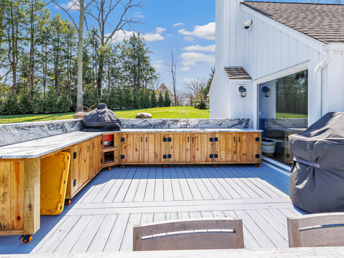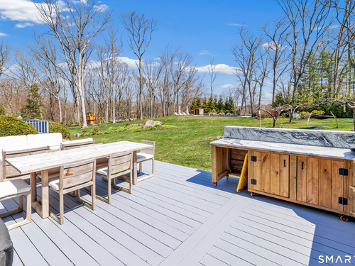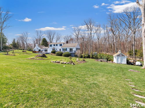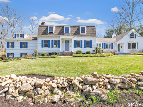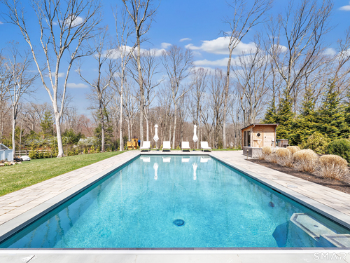 Welcome to this recently updated New England retreat with stone walls, a circular gravel driveway, and manicured grounds. Fenced and setback charming 5-bed and 2 full + 2 half baths colonial with sun-filled galleries and rooms. 2 fireplaces, 2-story cathedral ceilings. The modern open-floor kitchen (2025) opens to the dining room, family room, and a large deck. Luxurious MAIN FLOOR primary bedroom with separate walk-in closets, private deck, and updated bathroom with heated tiles. The upper floor has 4 bedrooms and 1.5 baths. Finished 432 sqft lower-level family room. 2-car large updated garage. Ample parking. 7 Birch Hill is a true summertime paradise with a top-of-the-line saltwater heated in-ground gunite pool built in 2020 with PebbleFina finish in sapphire galaxy color, auto-everything, and wi-fi link for remote control. Evergreen screening for privacy and gorgeous landscaping full of hydrangeas, ornamental grasses, Dogwood, Japanese maple, evergreen, maple, and oak trees, and dappled sunlight throughout. Walk along the footstones to the shed, pool, and private outdoor shower with a changing room to rinse off after laps in the pool. The organic garden was created by Homefront Farm in Redding and improved with irrigation. Many recent upgrades, 2022-2026, used only the best materials and workmanship. Close to Weston town center, stores, restaurants, walk to schools, and minutes away from train, highways, downtown Westport, and beautiful beaches.