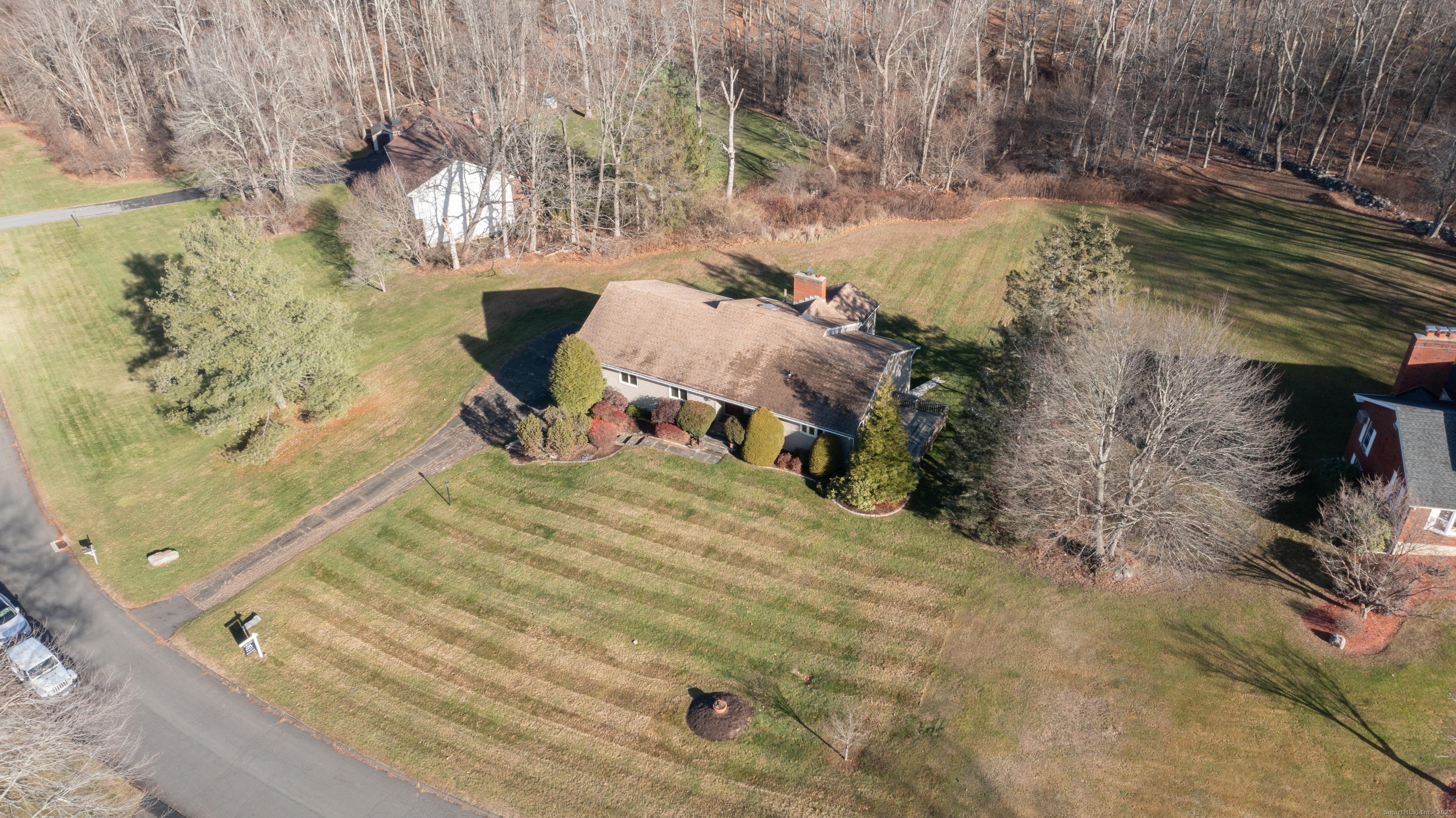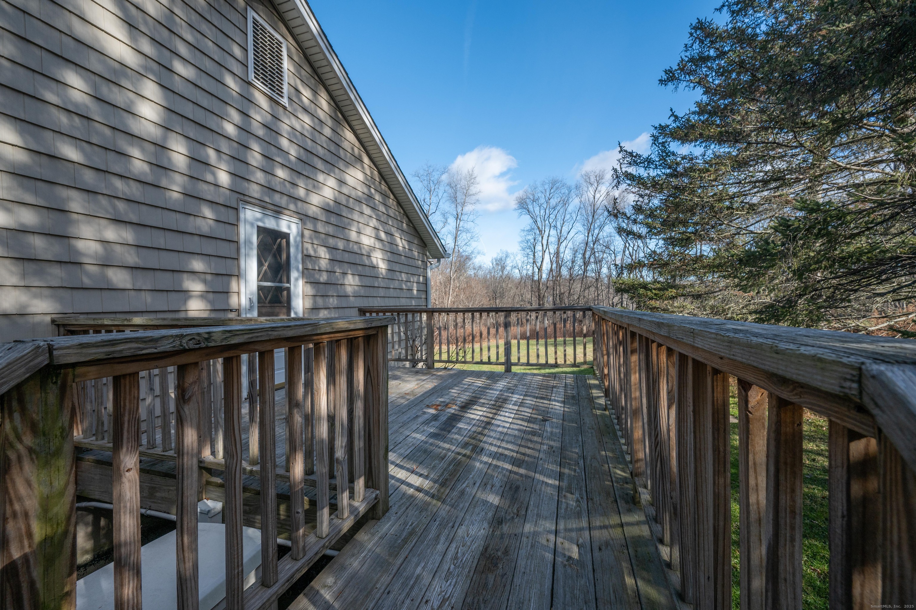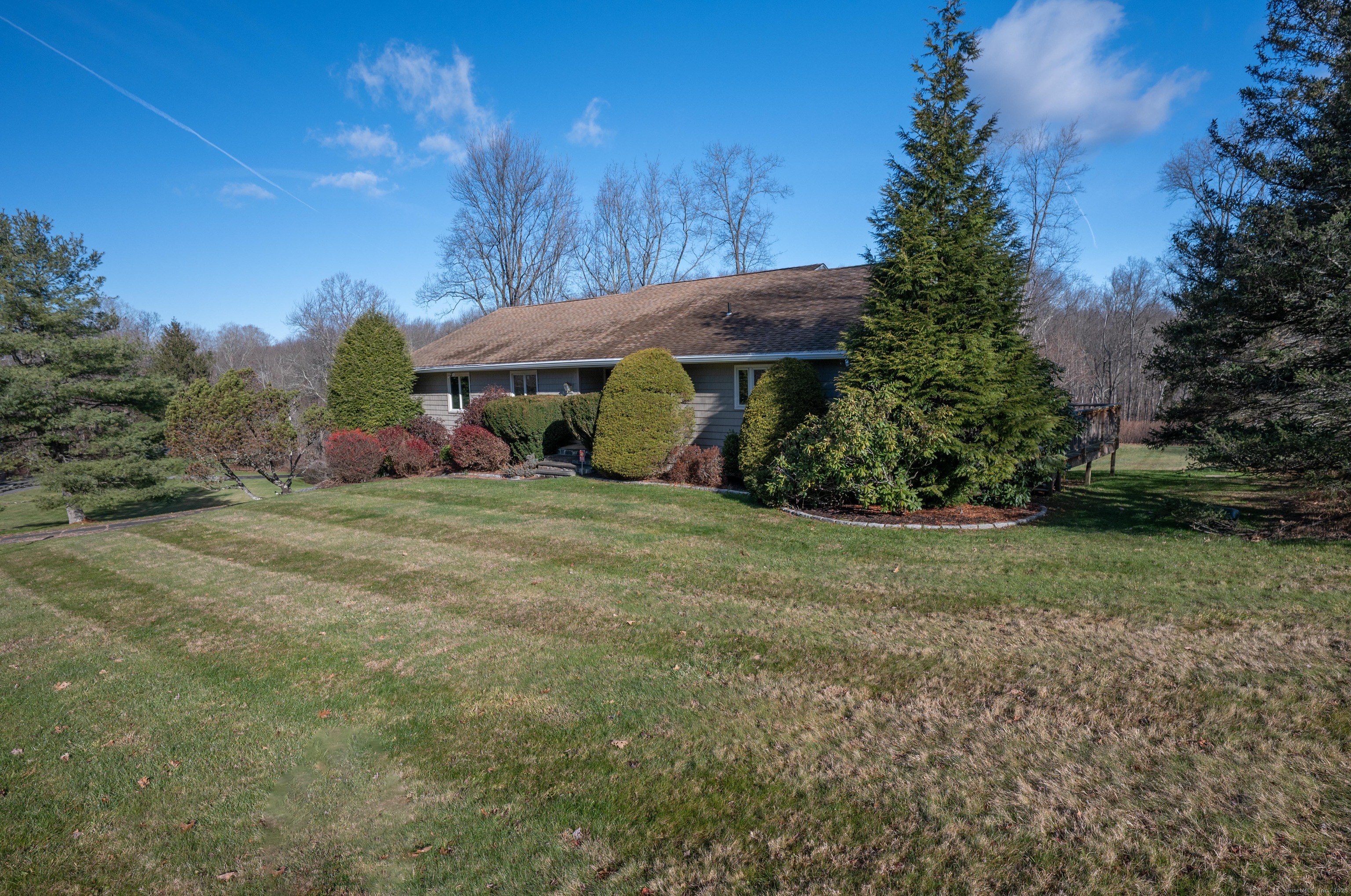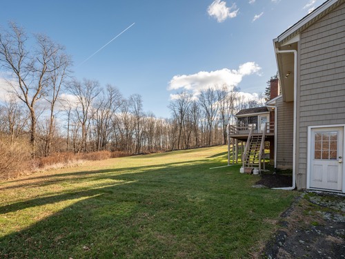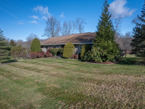 Discover 7 Carriage Lane in New Fairfield, Connecticut; a peaceful retreat set back from the road on a quiet cul-de-sac. Surrounded by beautifully kept neighboring homes, this property offers a wonderful sense of peace & calm. Enter into a two-story foyer that opens to a sun-filled living room with vaulted ceilings, 2 skylights & a wood-burning Fireplace. Step into the Sunroom overlooking the backyard or out onto 1 of 2 decks. The large Kitchen offers abundant cabinets, counters, a pantry, writing desk & direct access to the 2nd deck or Dining Room. The formal Dining Room features new hardwood-laminate flooring, detailed trim & serene backyard views. A bright Sunroom with cathedral ceiling & walls of windows provides the perfect spot to relax. The Primary Bedroom includes a walk-in closet with built-ins & a private Full Bath with double sink, shower stall, heat lamp, shelving & new toilet. Two additional Bedrooms offer ample closet space. The hall Bath has a tub, shelving, linen closet & heat lamp. Main floor Laundry Room includes Washer, Dryer, sink & cabinets. The fully finished lower level- ideal for a potential in-law setup- offers a private walk-out entrance, 2 large living areas, a Den, Full Bath & extensive built-ins- plus new vinyl windows & sliders. Central Air, whole-house attic fan & an automatic Generac generator provide comfort & peace of mind. A perfect blend of privacy & convenience, this inviting home is ready to welcome you.