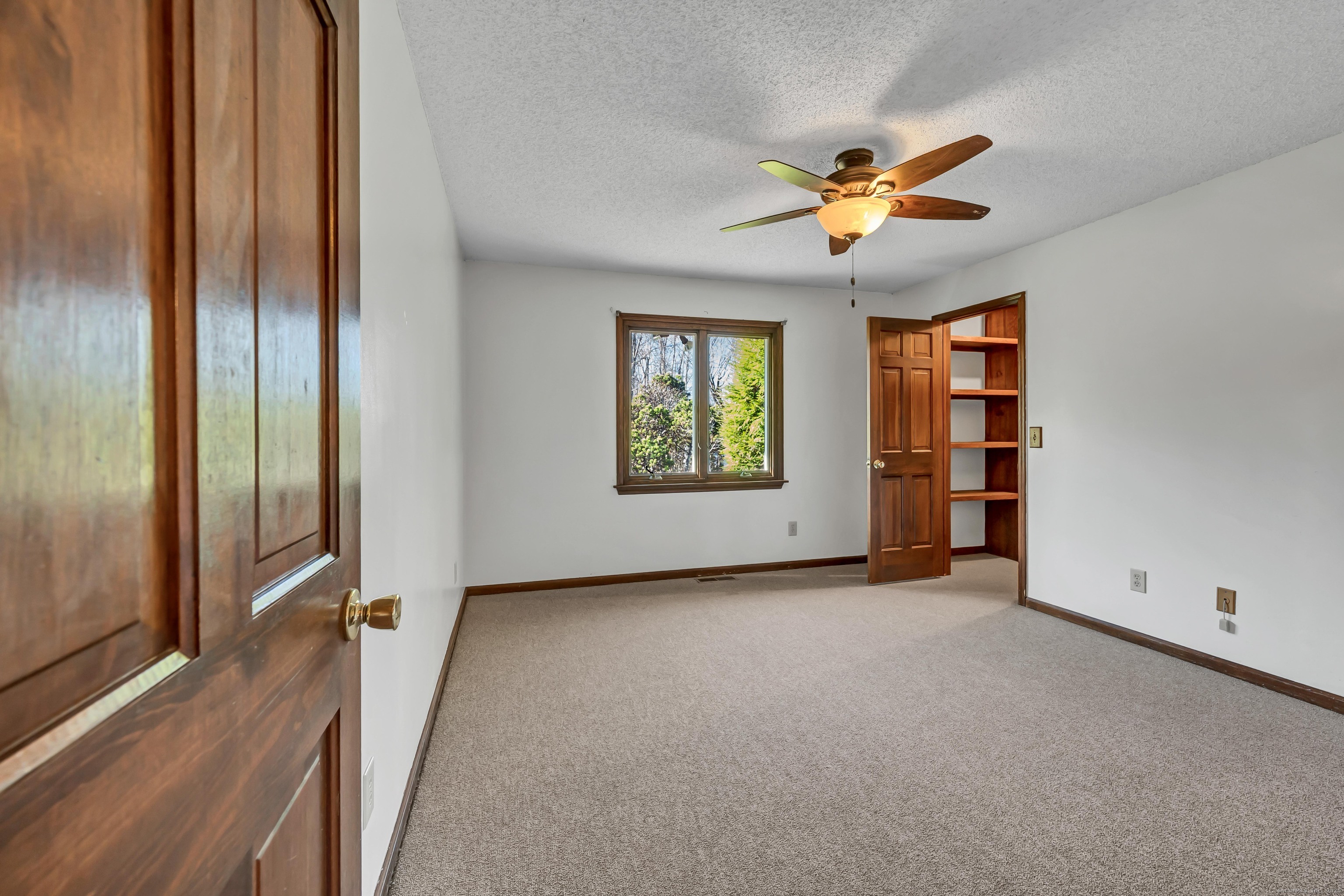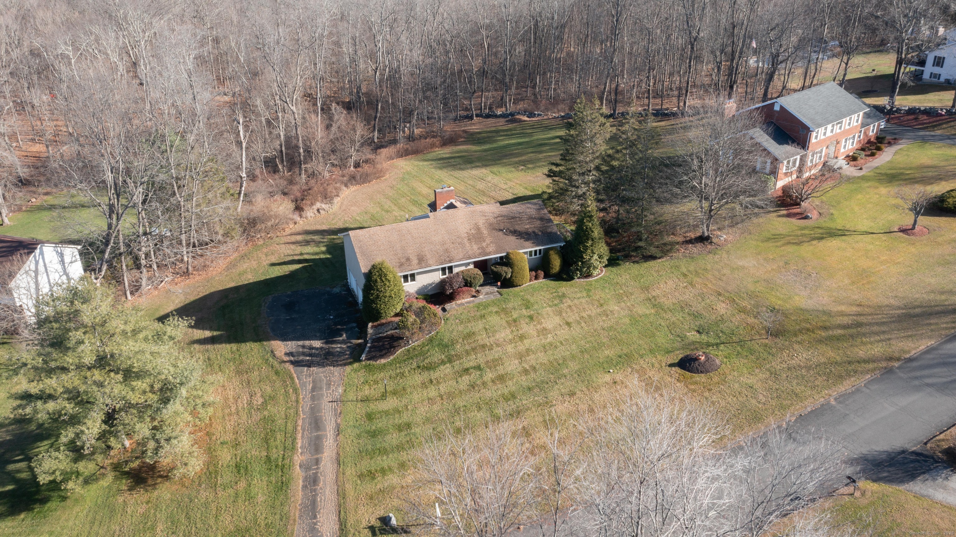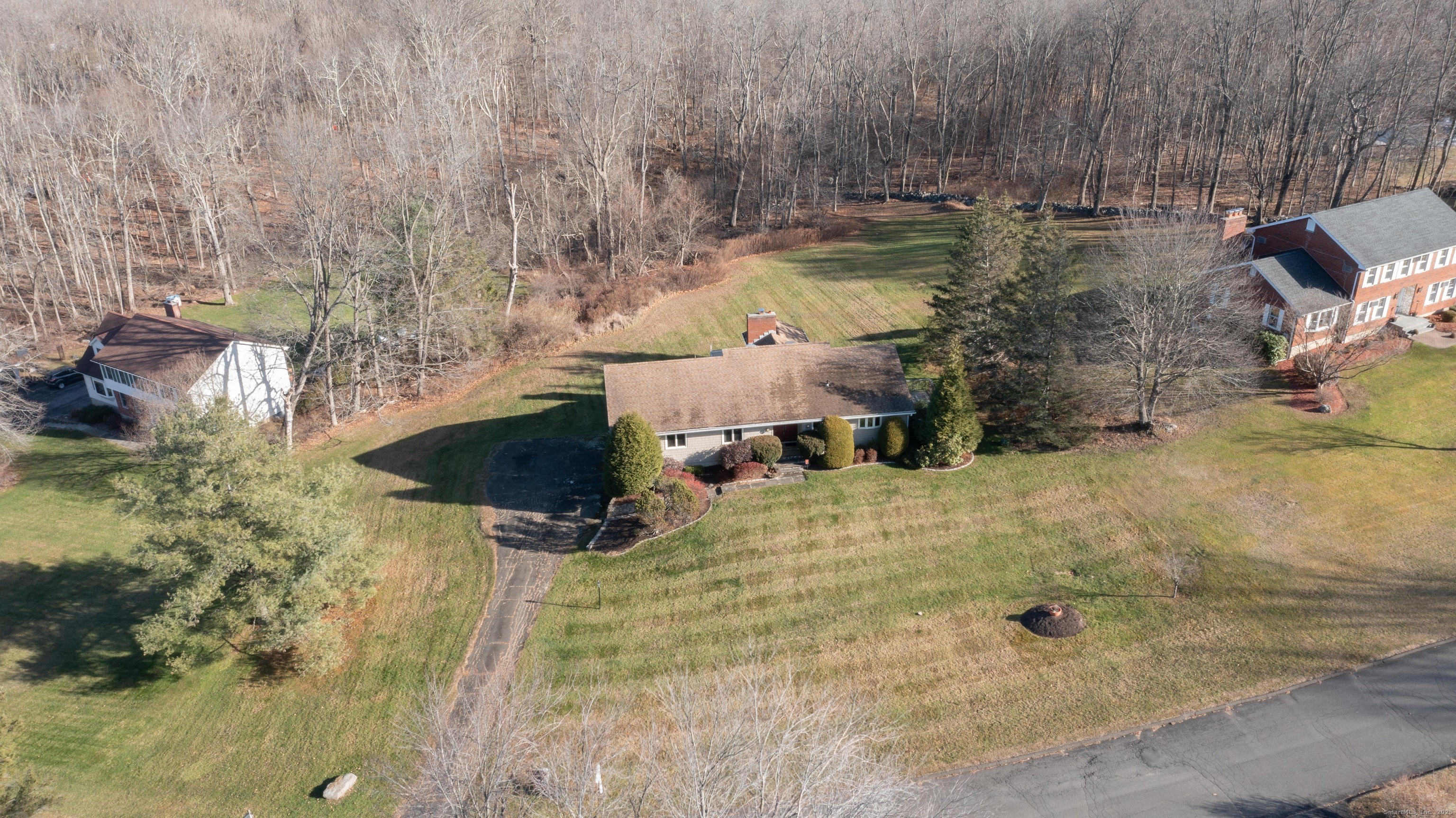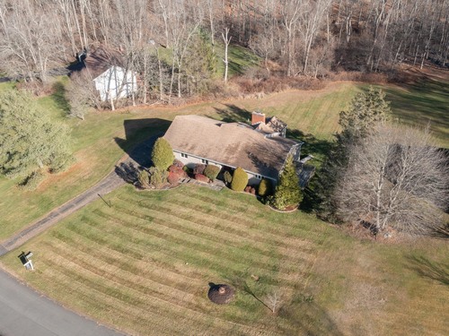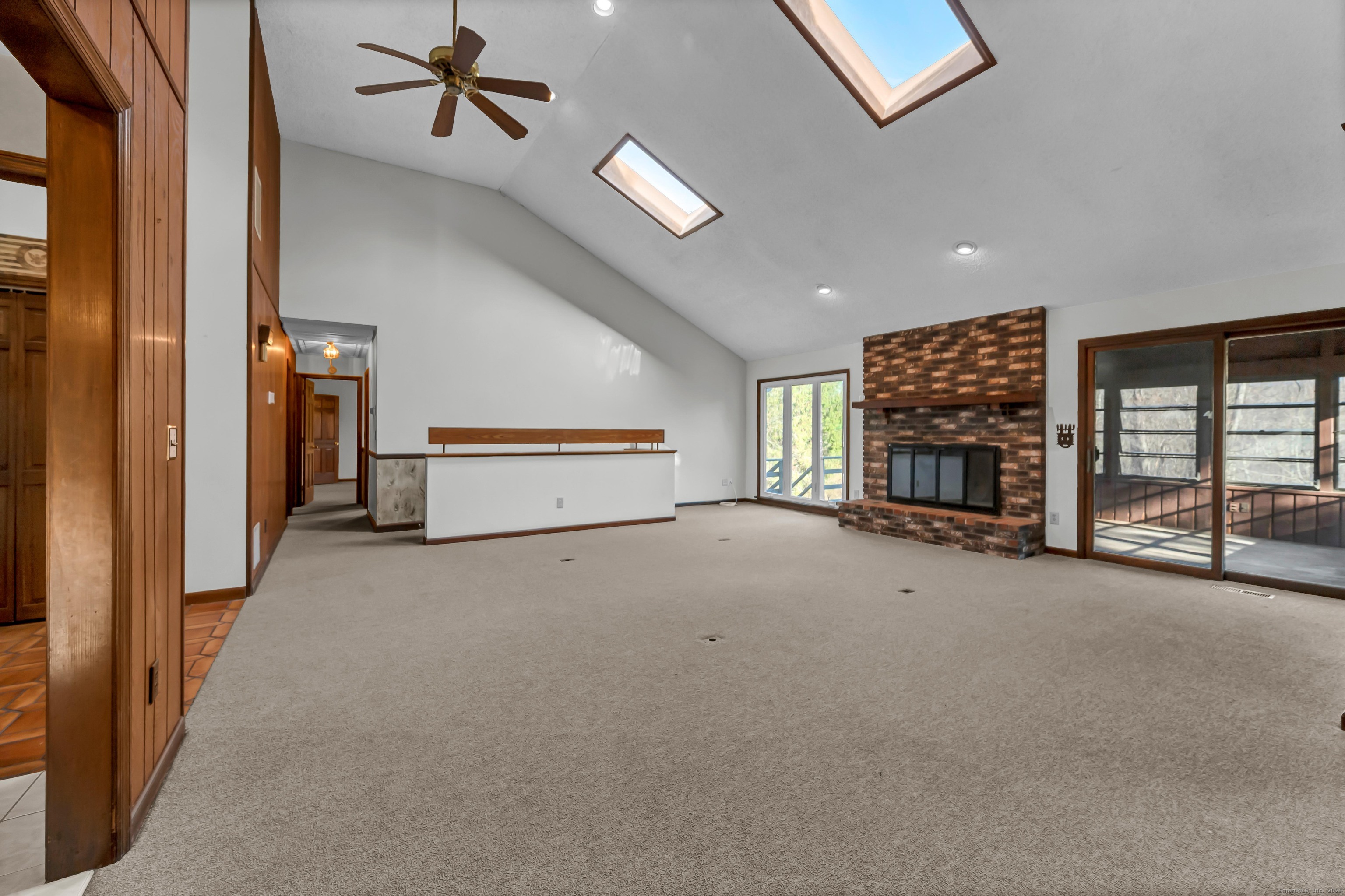Discover 7 Carriage Lane in New Fairfield, Connecticut; a peaceful retreat set back from the road on a quiet cul-de-sac. Surrounded by beautifully kept neighboring homes, this property offers a wonderful sense of peace & calm. Enter into a two-story foyer that opens to a sun-filled living room with vaulted ceilings, 2 skylights & a wood-burning Fireplace. Step into the Sunroom overlooking the backyard or out onto 1 of 2 decks. The large Kitchen offers abundant cabinets, counters, a pantry, writing desk & direct access to the 2nd deck or Dining Room. The formal Dining Room features new hardwood-laminate flooring, detailed trim & serene backyard views. A bright Sunroom with cathedral ceiling & walls of windows provides the perfect spot to relax. The Primary Bedroom includes a walk-in closet with built-ins & a private Full Bath with double sink, shower stall, heat lamp, shelving & new toilet. Two additional Bedrooms offer ample closet space. The hall Bath has a tub, shelving, linen closet & heat lamp. Main floor Laundry Room includes Washer, Dryer, sink & cabinets. The fully finished lower level- ideal for a potential in-law setup- offers a private walk-out entrance, 2 large living areas, a Den, Full Bath & extensive built-ins- plus new vinyl windows & sliders. Central Air, whole-house attic fan & an automatic Generac generator provide comfort & peace of mind. A perfect blend of privacy & convenience, this inviting home is ready to welcome you.