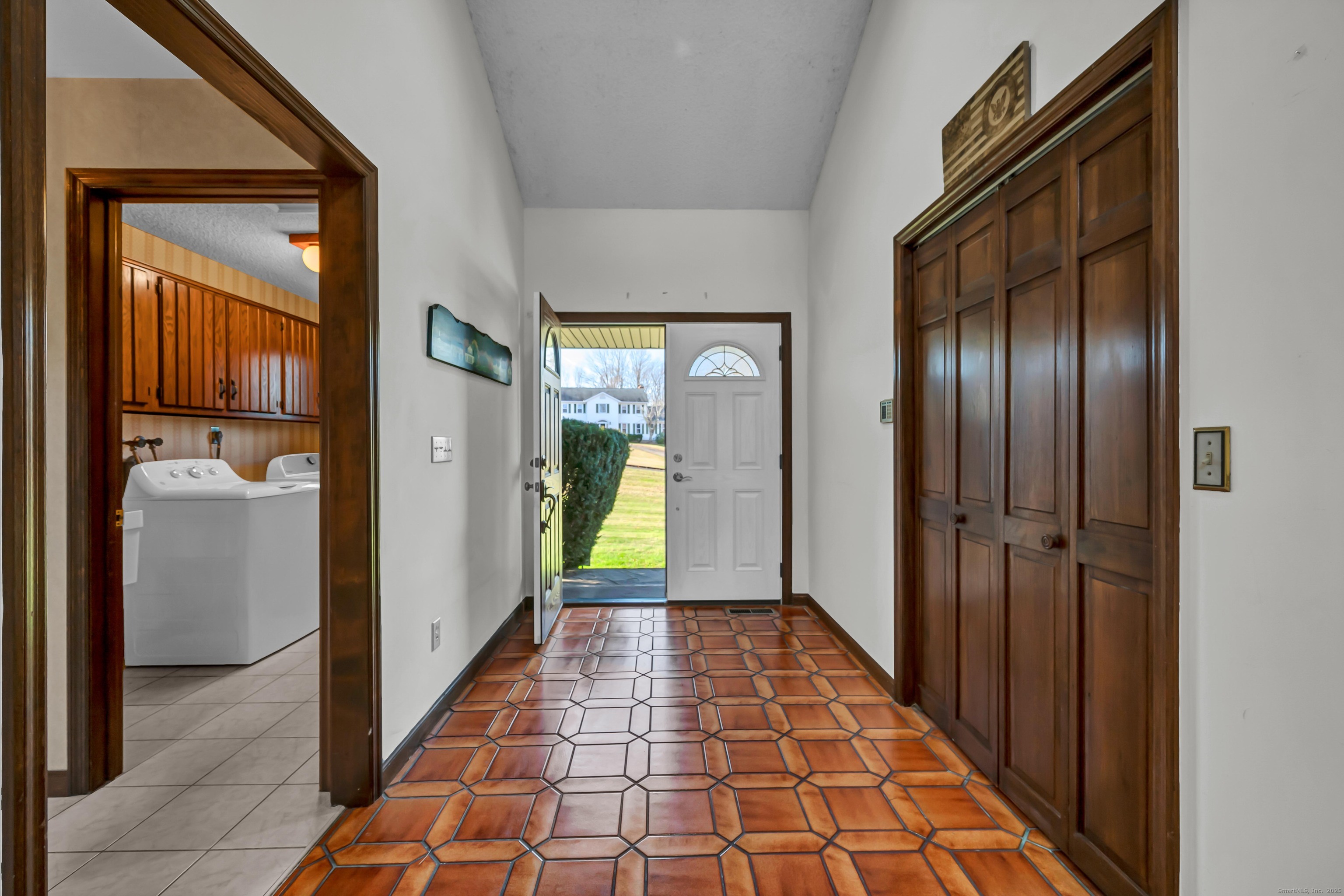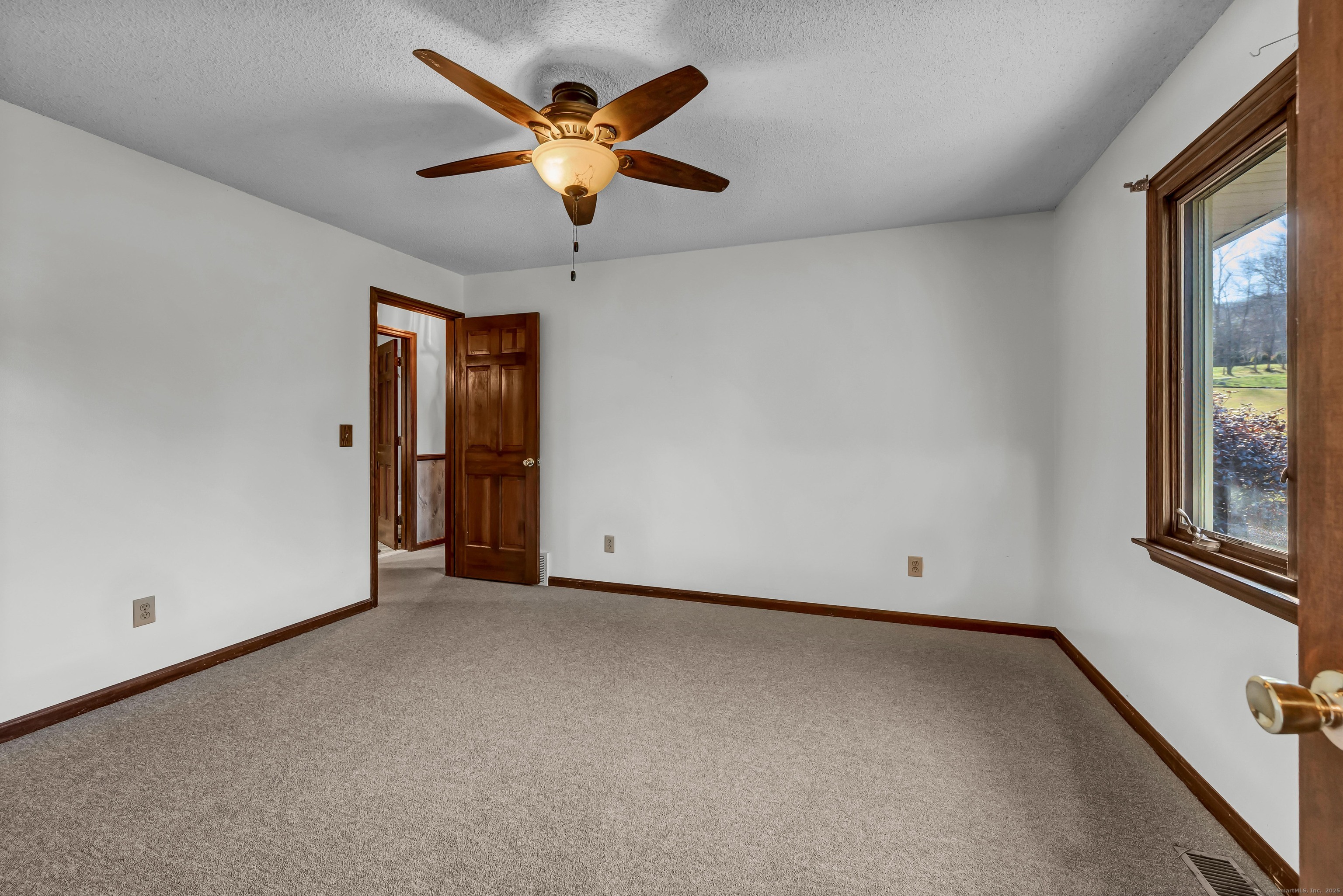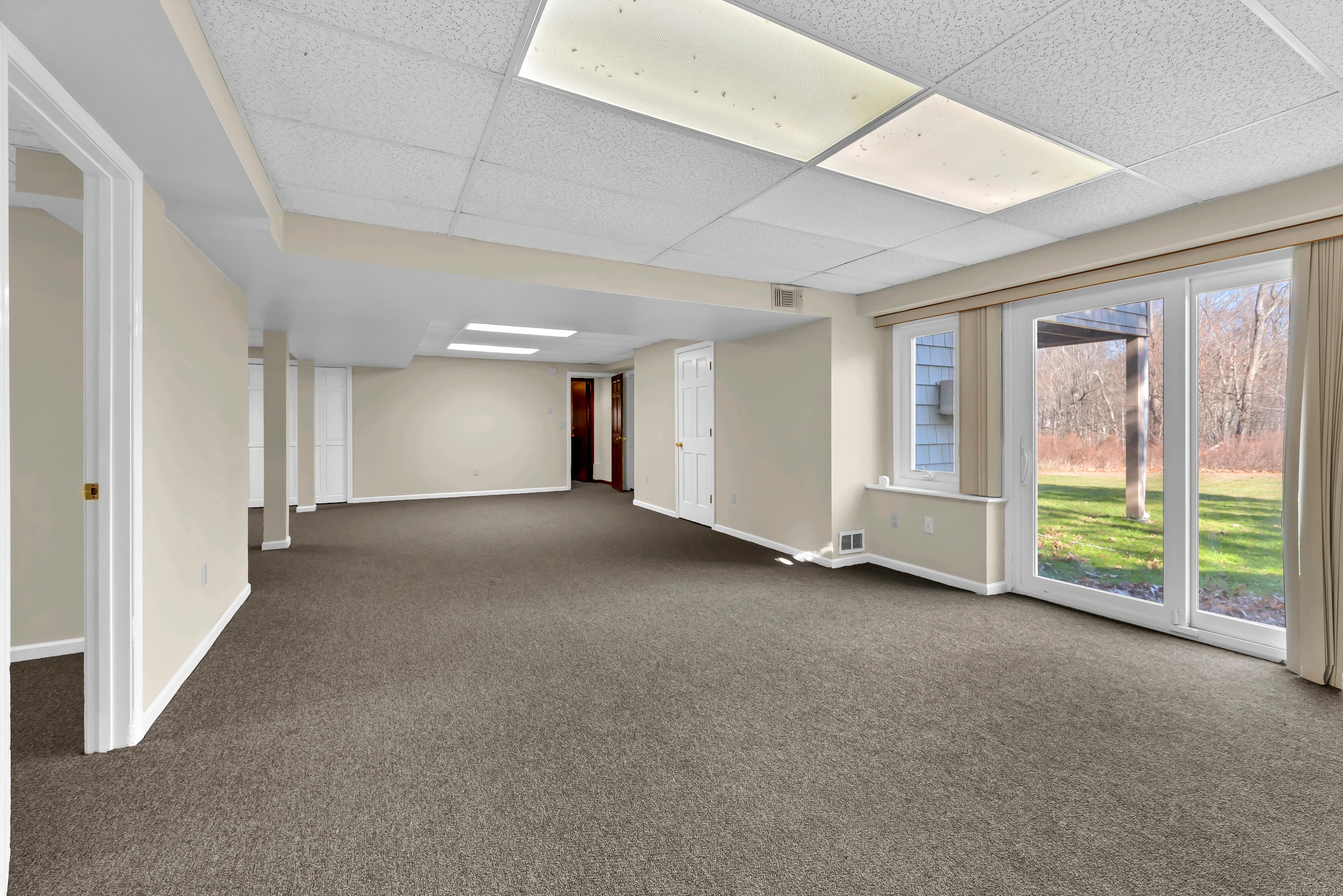 Discover 7 Carriage Lane in New Fairfield, Connecticut; a peaceful retreat set back from the road on a quiet cul-de-sac. Surrounded by beautifully kept neighboring homes, this property offers a wonderful sense of peace & calm. Enter into a two-story foyer that opens to a sun-filled living room with vaulted ceilings, 2 skylights & a wood-burning Fireplace. Step into the Sunroom overlooking the backyard or out onto 1 of 2 decks. The large Kitchen offers abundant cabinets, counters, a pantry, writing desk & direct access to the 2nd deck or Dining Room. The formal Dining Room features new hardwood-laminate flooring, detailed trim & serene backyard views. A bright Sunroom with cathedral ceiling & walls of windows provides the perfect spot to relax. The Primary Bedroom includes a walk-in closet with built-ins & a private Full Bath with double sink, shower stall, heat lamp, shelving & new toilet. Two additional Bedrooms offer ample closet space. The hall Bath has a tub, shelving, linen closet & heat lamp. Main floor Laundry Room includes Washer, Dryer, sink & cabinets. The fully finished lower level- ideal for a potential in-law setup- offers a private walk-out entrance, 2 large living areas, a Den, Full Bath & extensive built-ins- plus new vinyl windows & sliders. Central Air, whole-house attic fan & an automatic Generac generator provide comfort & peace of mind. A perfect blend of privacy & convenience, this inviting home is ready to welcome you.
