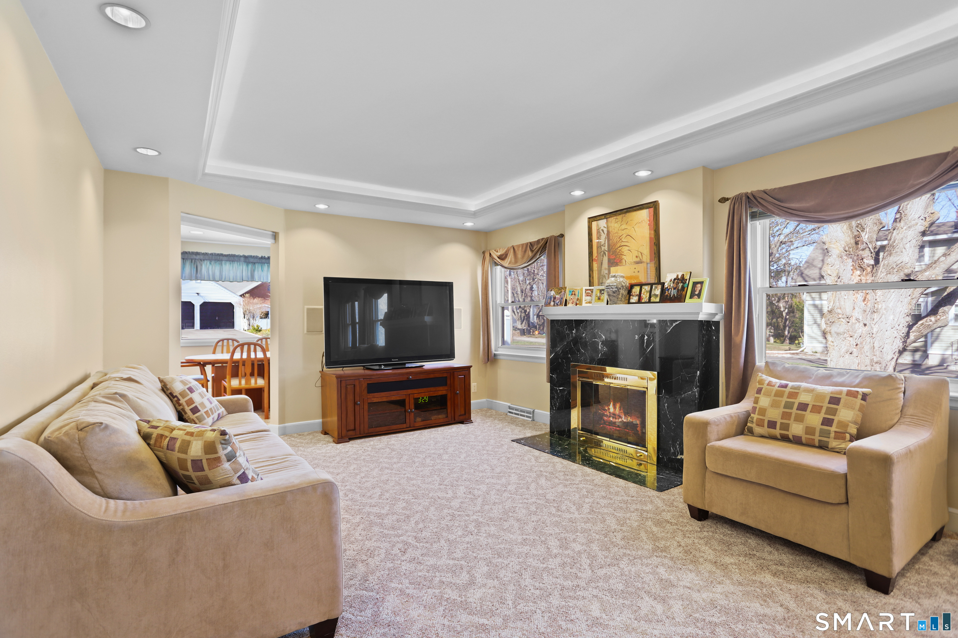 Thoughtfully appointed,this home offers a perfect blend of everyday comfort and standout features in a sought-after private cul-de-sac location.Main Level is enhanced by stylish pod lighting creating warm & inviting atmosphere throughout.Oversized LR s features cozy fireplace & illuminated tray ceiling that adds architectural interest. The Formal DR is highlighted by a large picture window that fills the space with natural light.The expansive kitchen offers abundant cabinetry & workspace,along with dedicated dining area and convenient slider access to the private Trex deck-perfect for seamless indoor/outdoor living. A closeted washer/dryer and additional coat closet add to the home's everyday functionality.The Primary Bedroom Suite is a true retreat,complete with comfortable sitting area,generous walk-in closets,sliders leading to a private Trex deck.The en-suite bath features a shower w/skylight, bringing in beautiful natural light.The upper level offers 2 BR, including one with an ante room ideal for hobbies, office space, or a sitting area, plus a smaller third with the potential to be finished into a full bath-offering excellent expansion opportunities.Additional highlights include 3-zone heating for efficiency and comfort and rare Oversized Heated Garage with space for four cars-incredible feature for car enthusiasts,hobbyists or tradespeople seeking a functional workspace.Large level private yard for outdoor entertaining or peaceful relaxation!